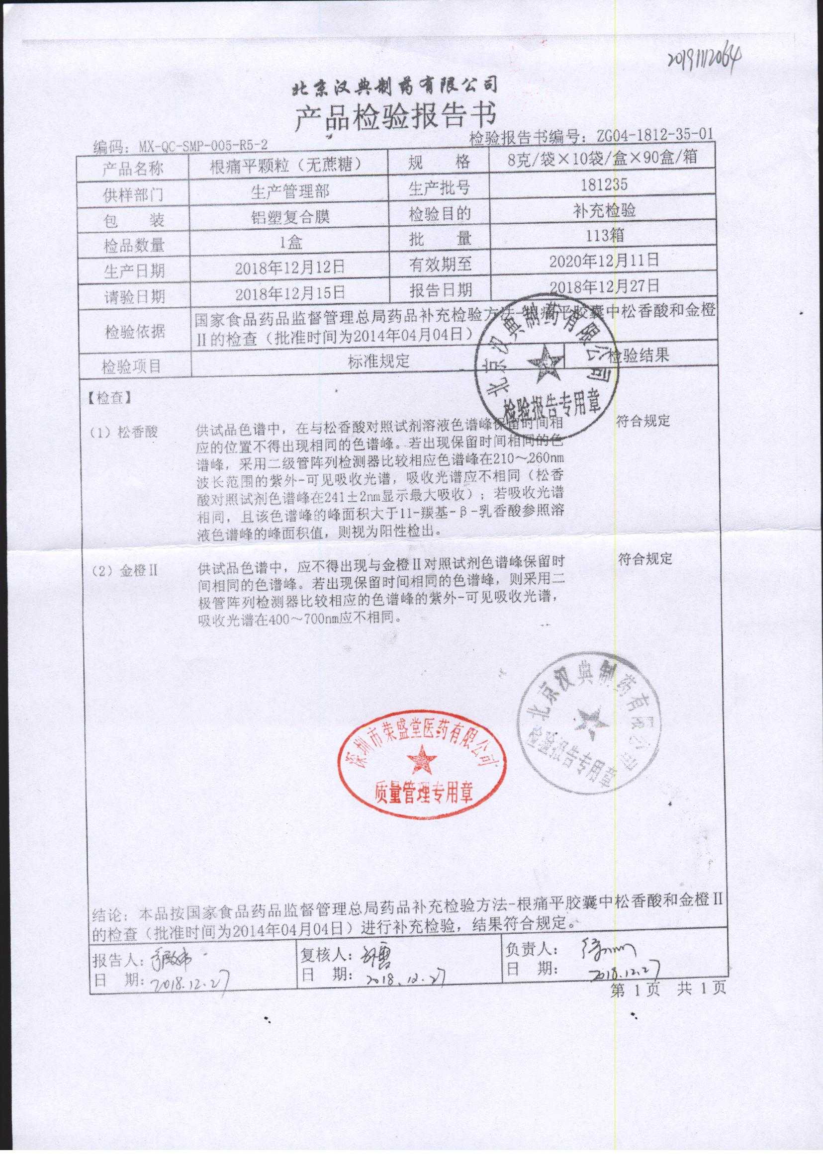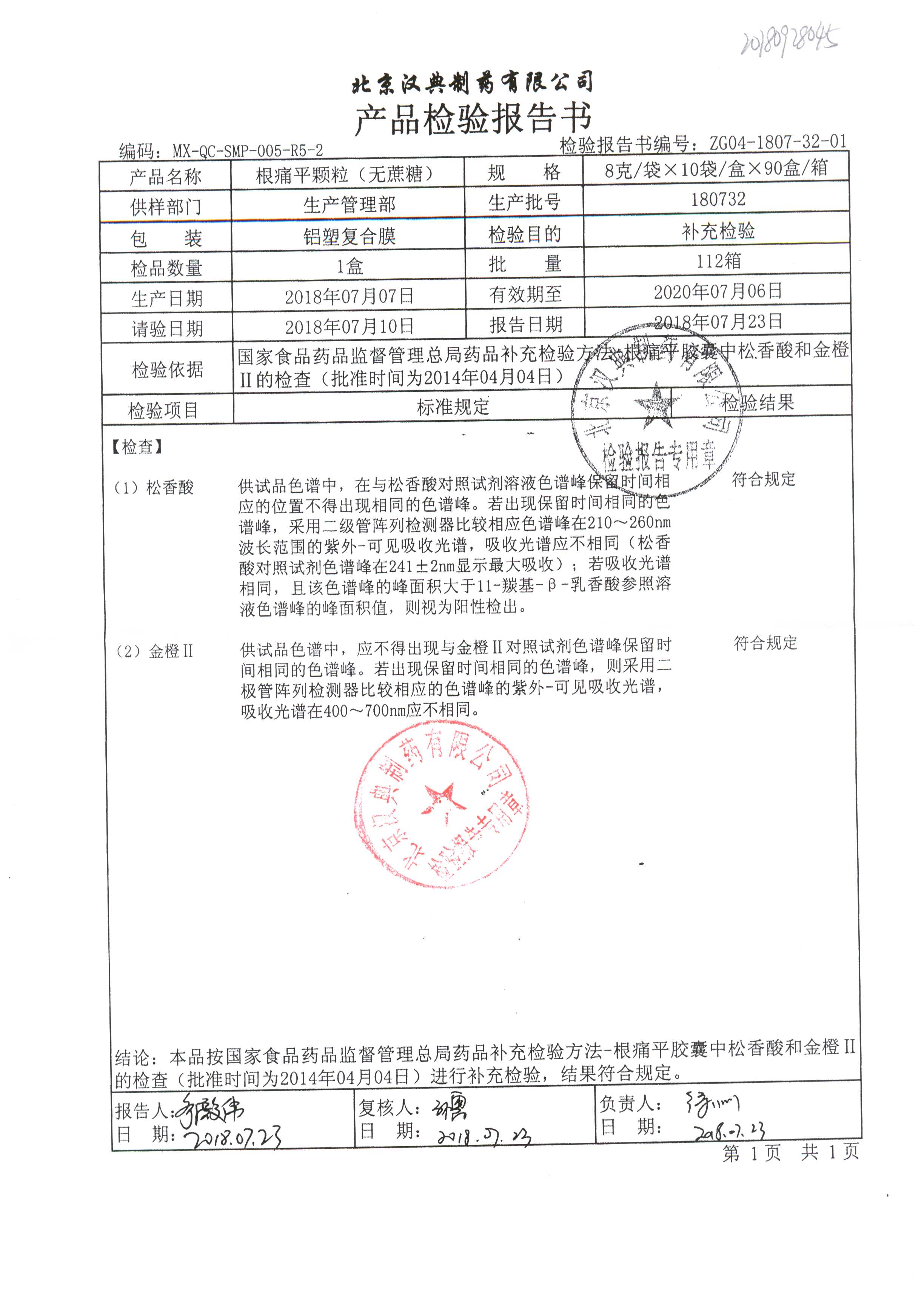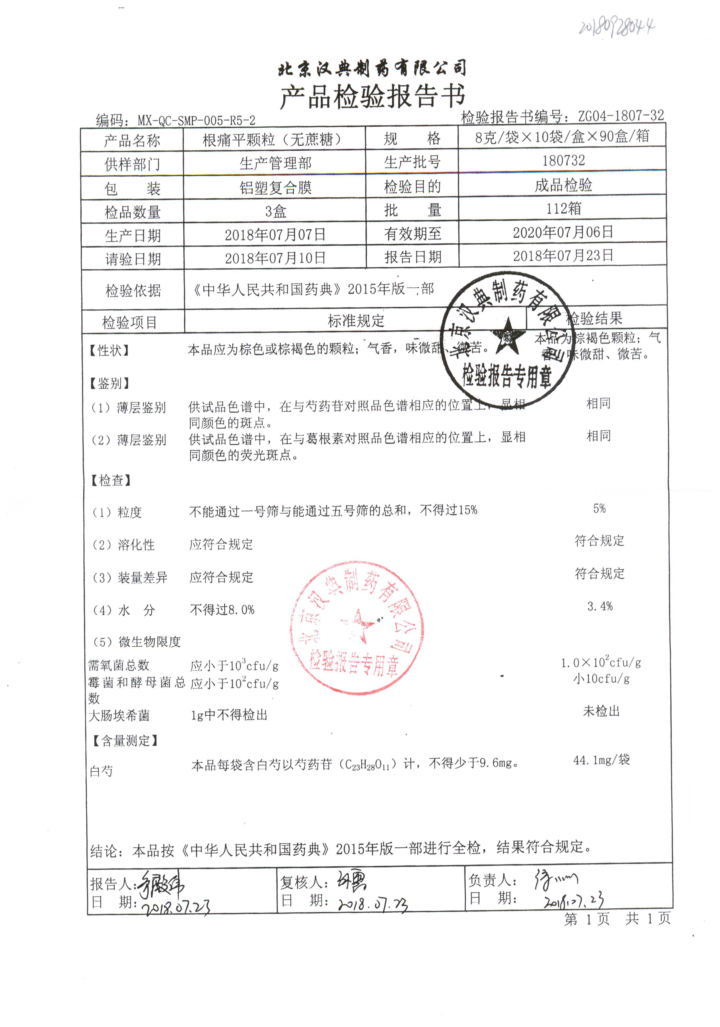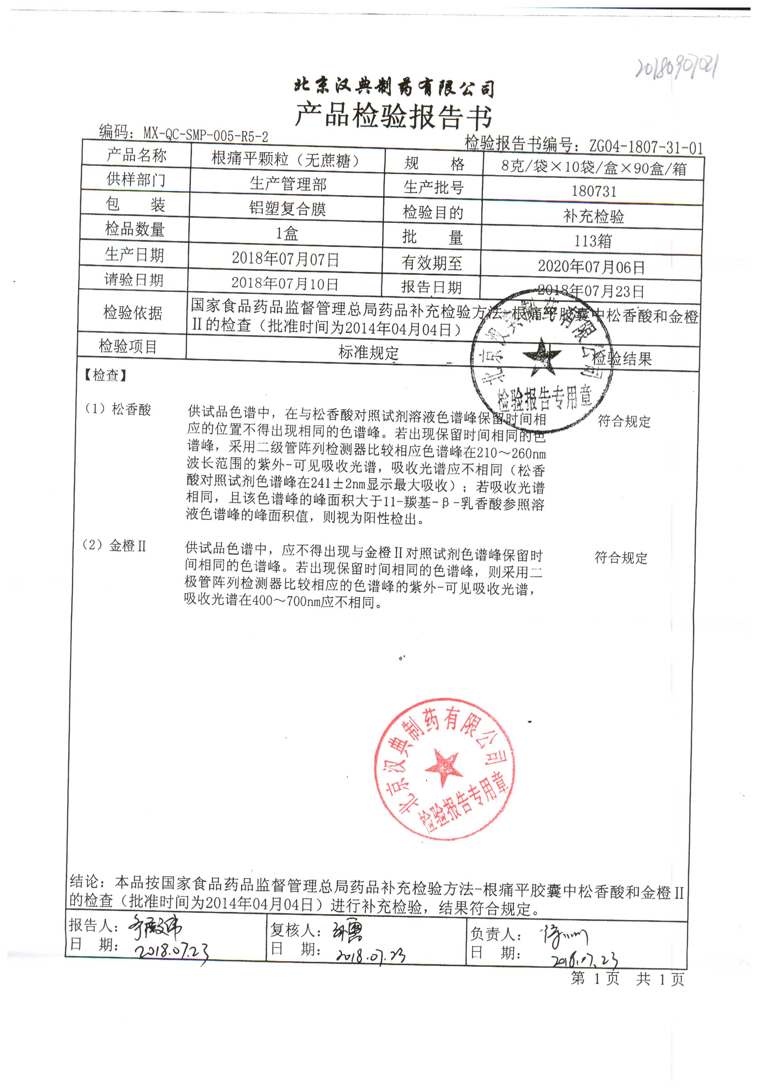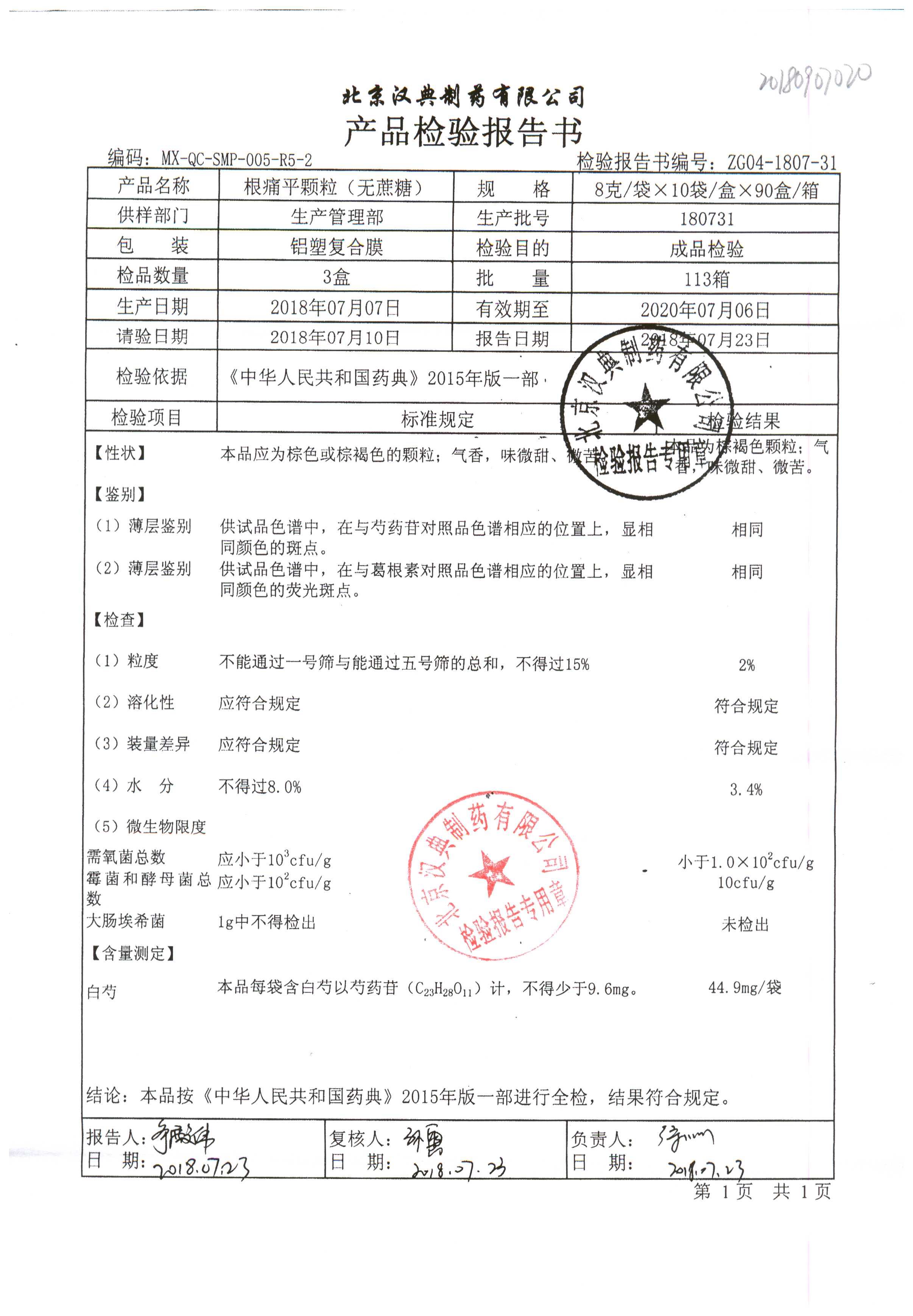 根痛平颗粒(无蔗糖) | 8g*10袋 | 180731(1/2) | 查看详情 |