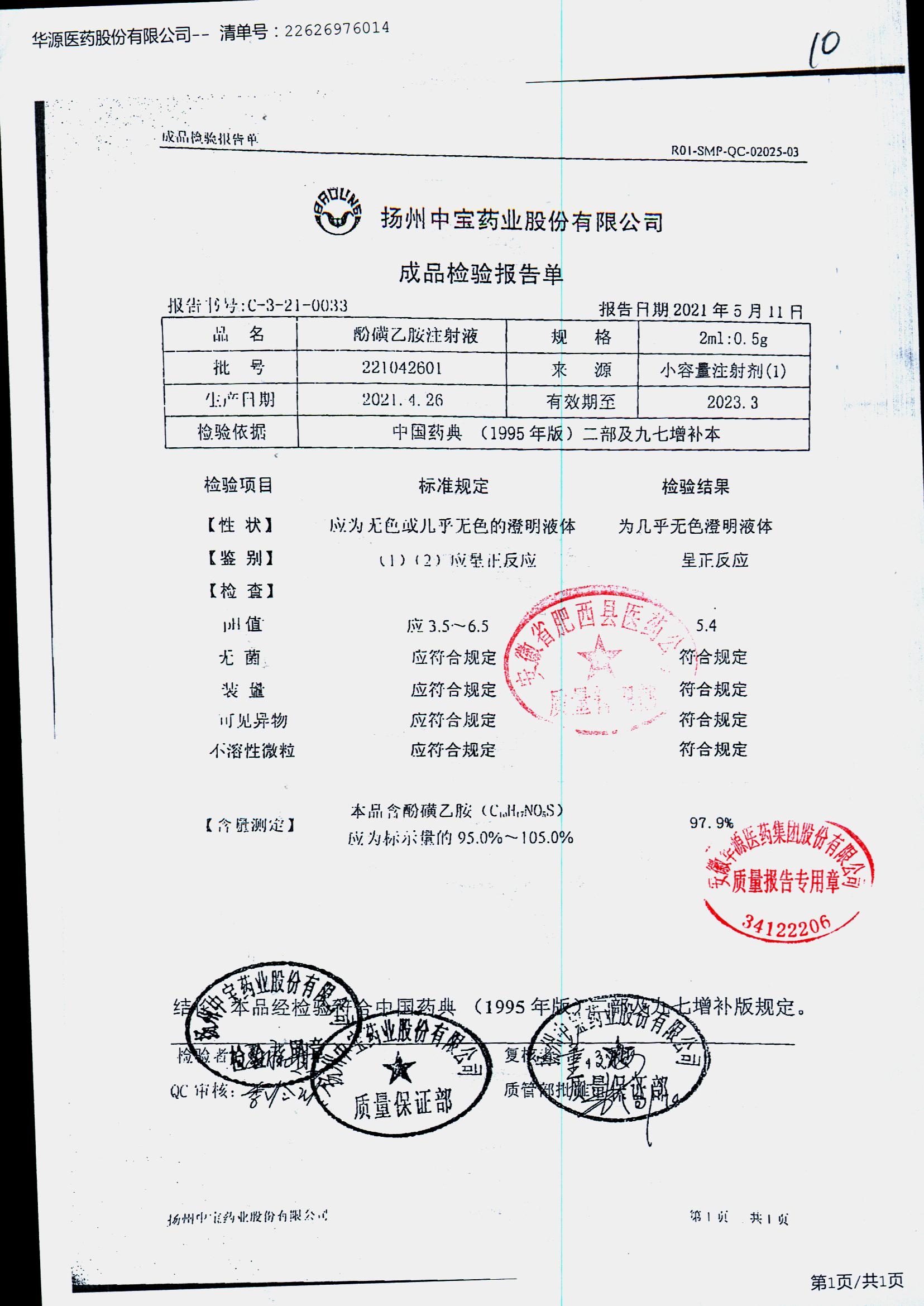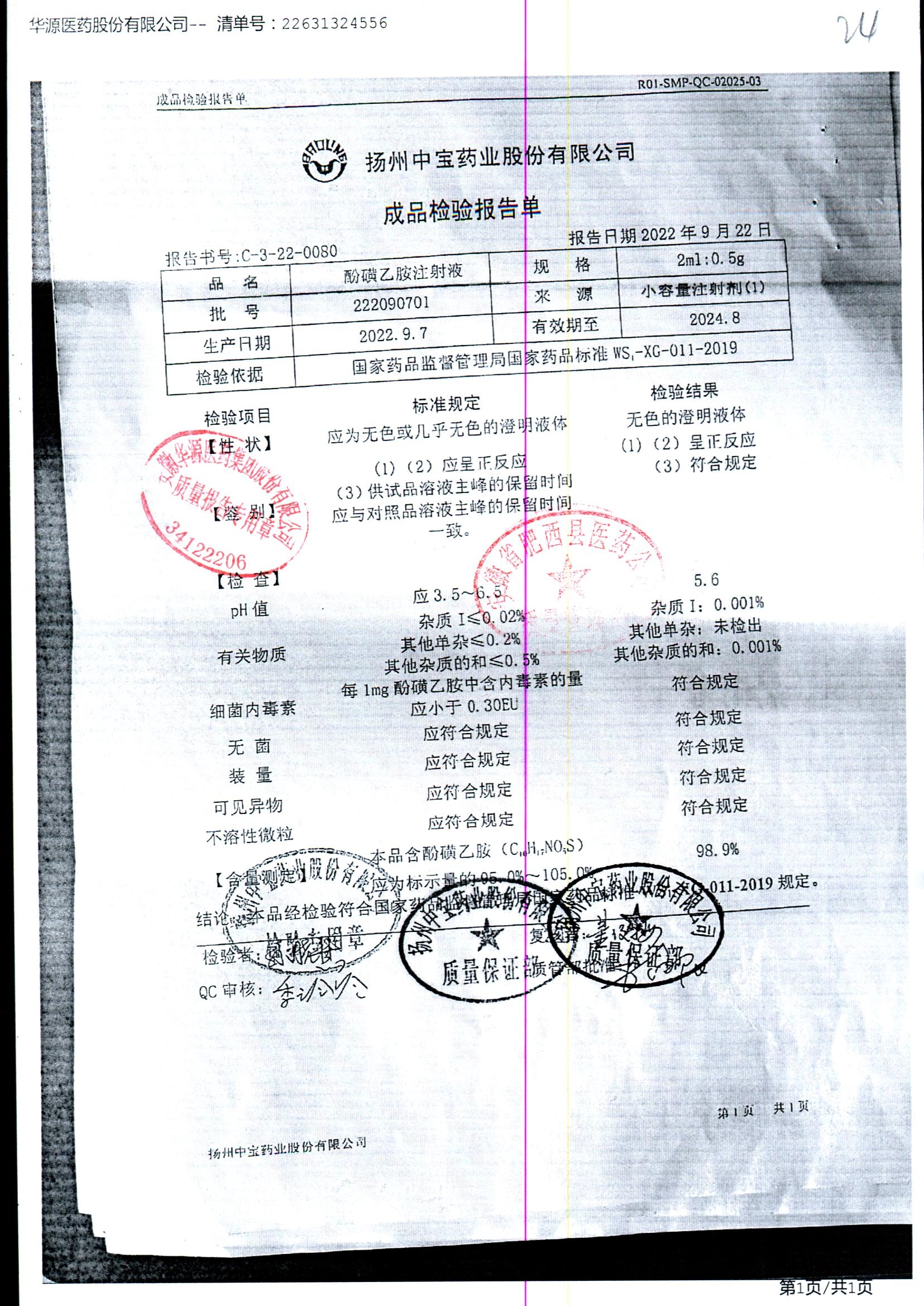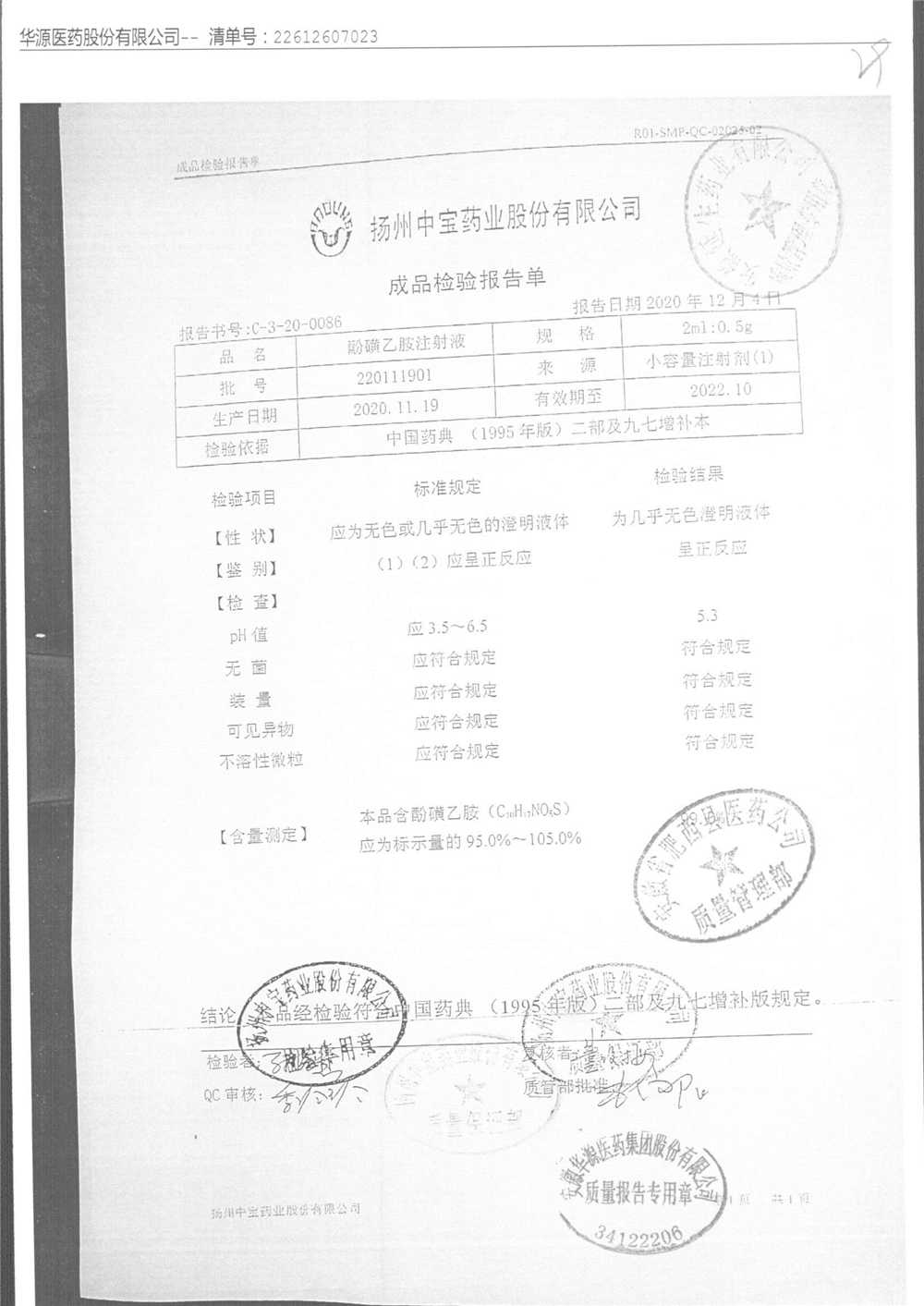 酚磺乙胺注射液 | 2ml:0.5g | 222090701 | 查看详情 |