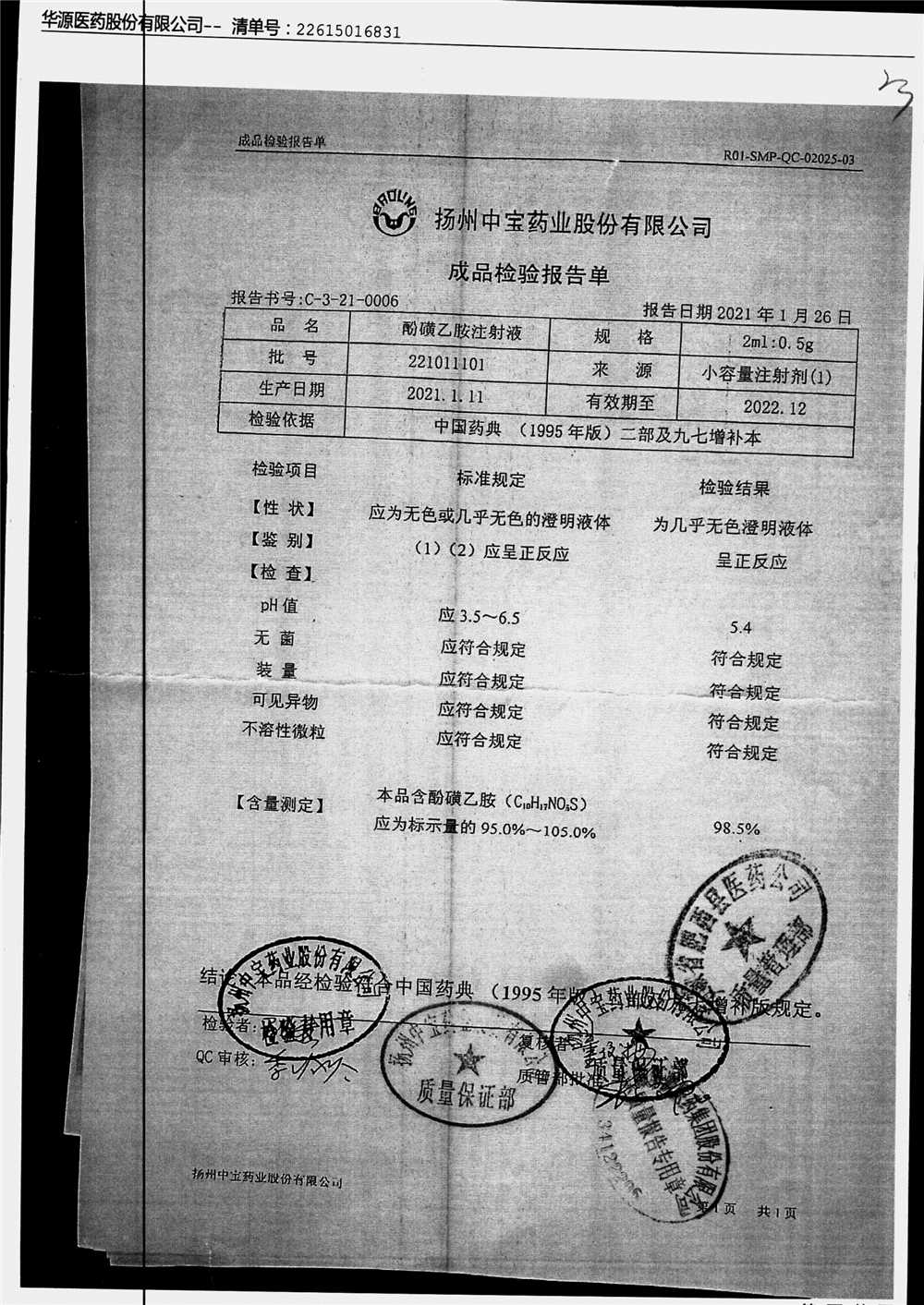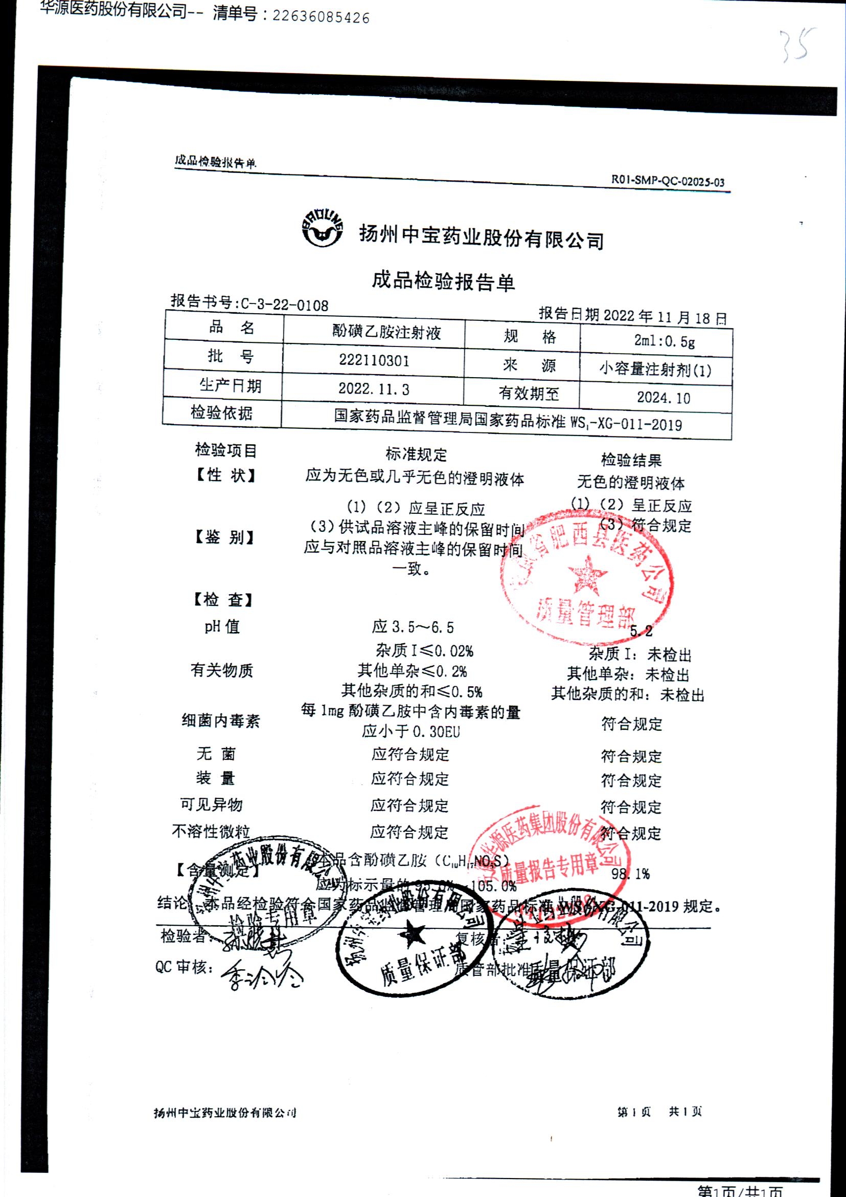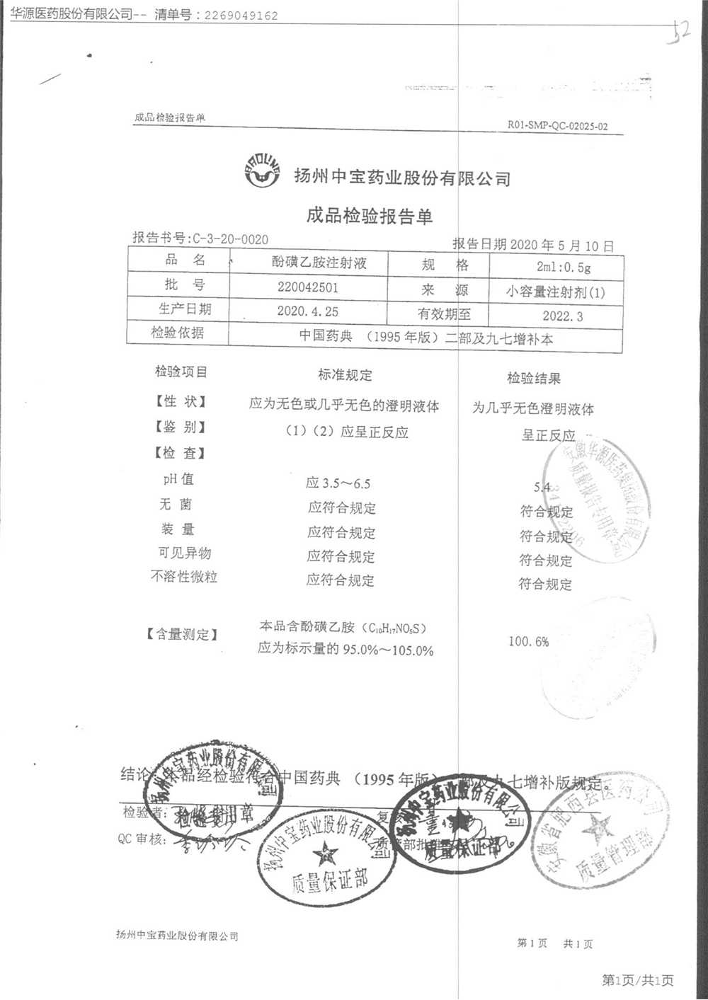 酚磺乙胺注射液 | 2ml:0.5g | 222090701 | 查看详情 |
