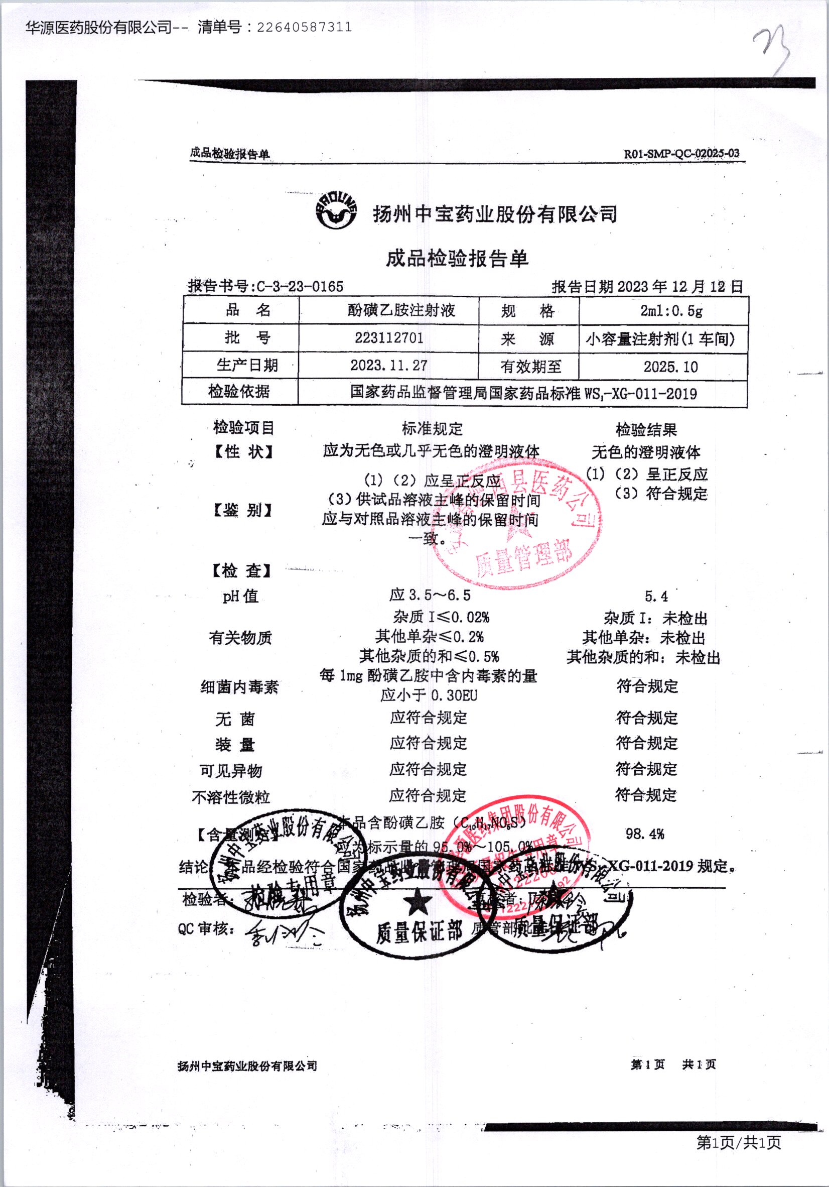 酚磺乙胺注射液 | 2ml:0.5g | 221041501 | 查看详情 |