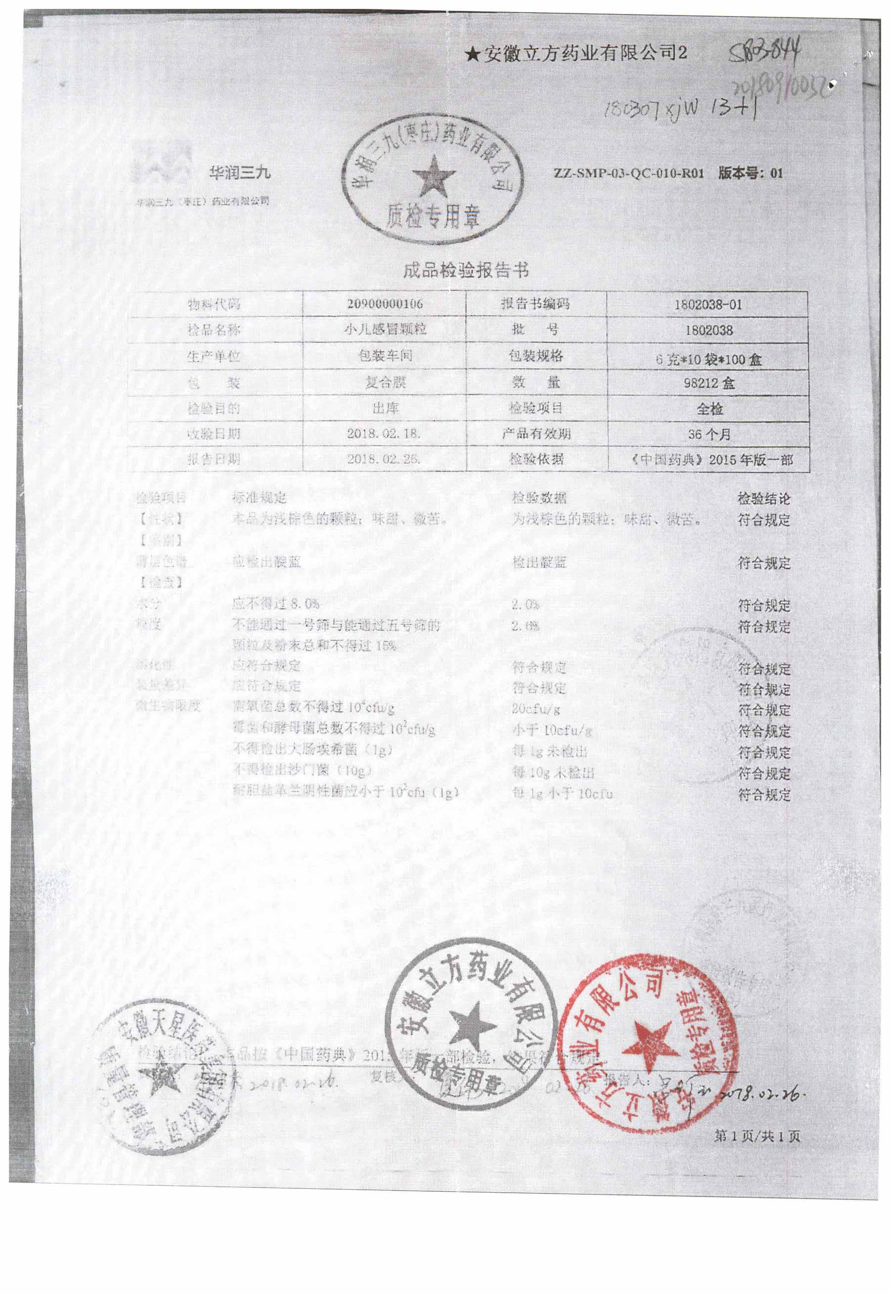 小儿感冒颗粒 | 6g*10袋 | 1802038 | 查看详情 |