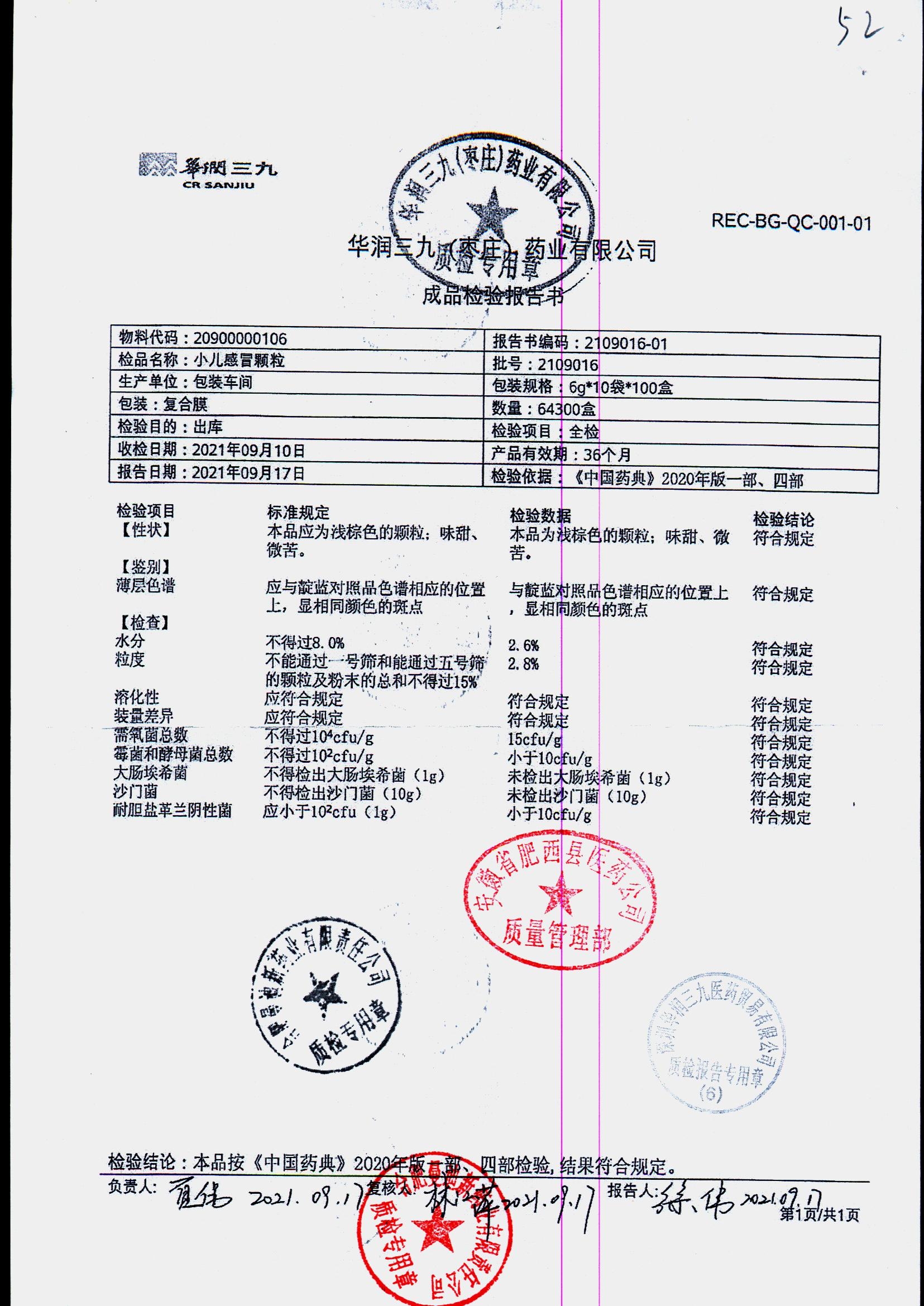 小儿感冒颗粒 | 6g*10袋 | 2112050/1 | 查看详情 |