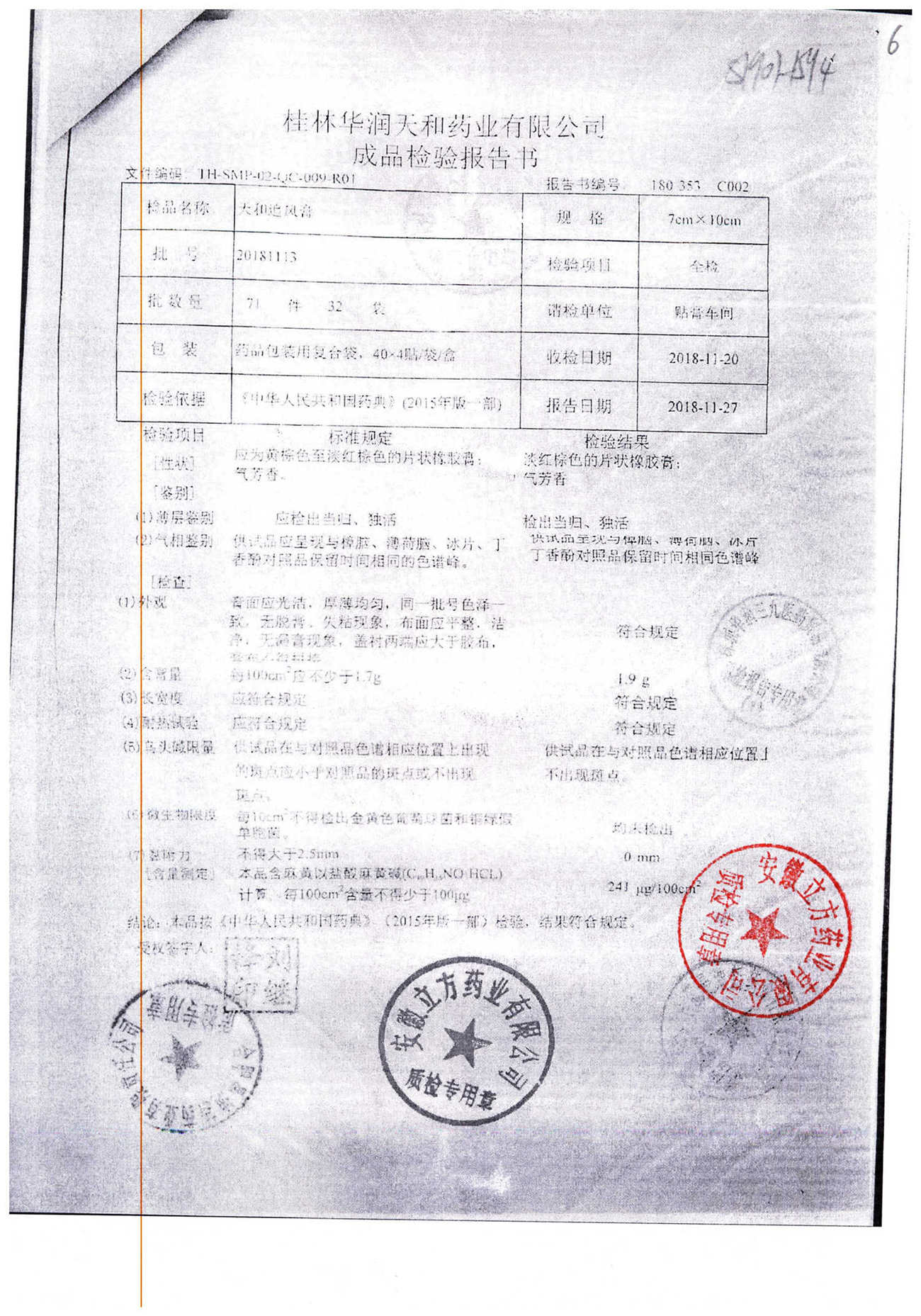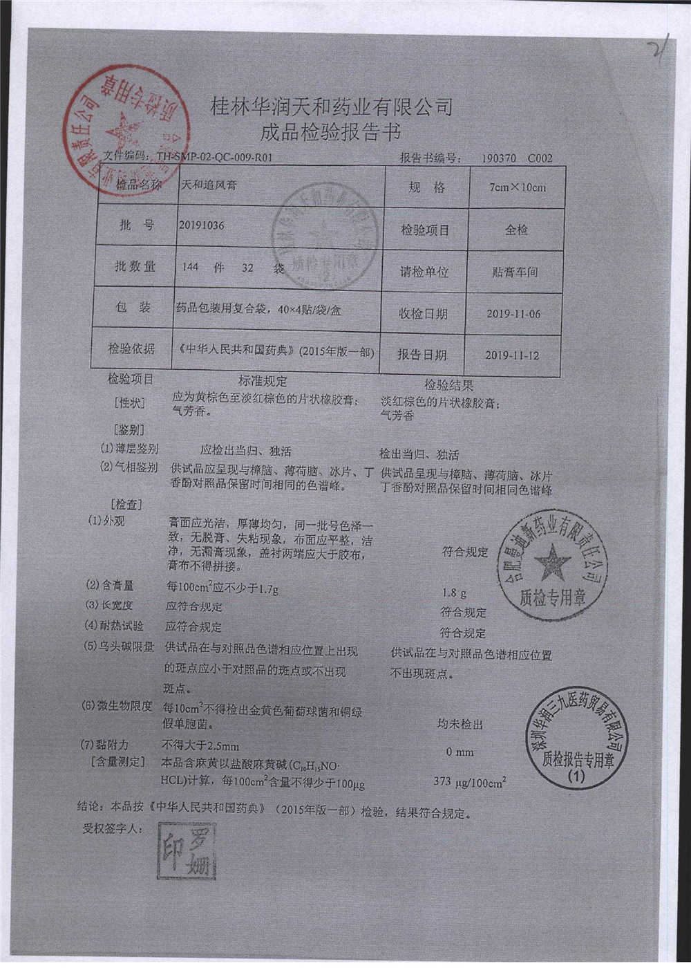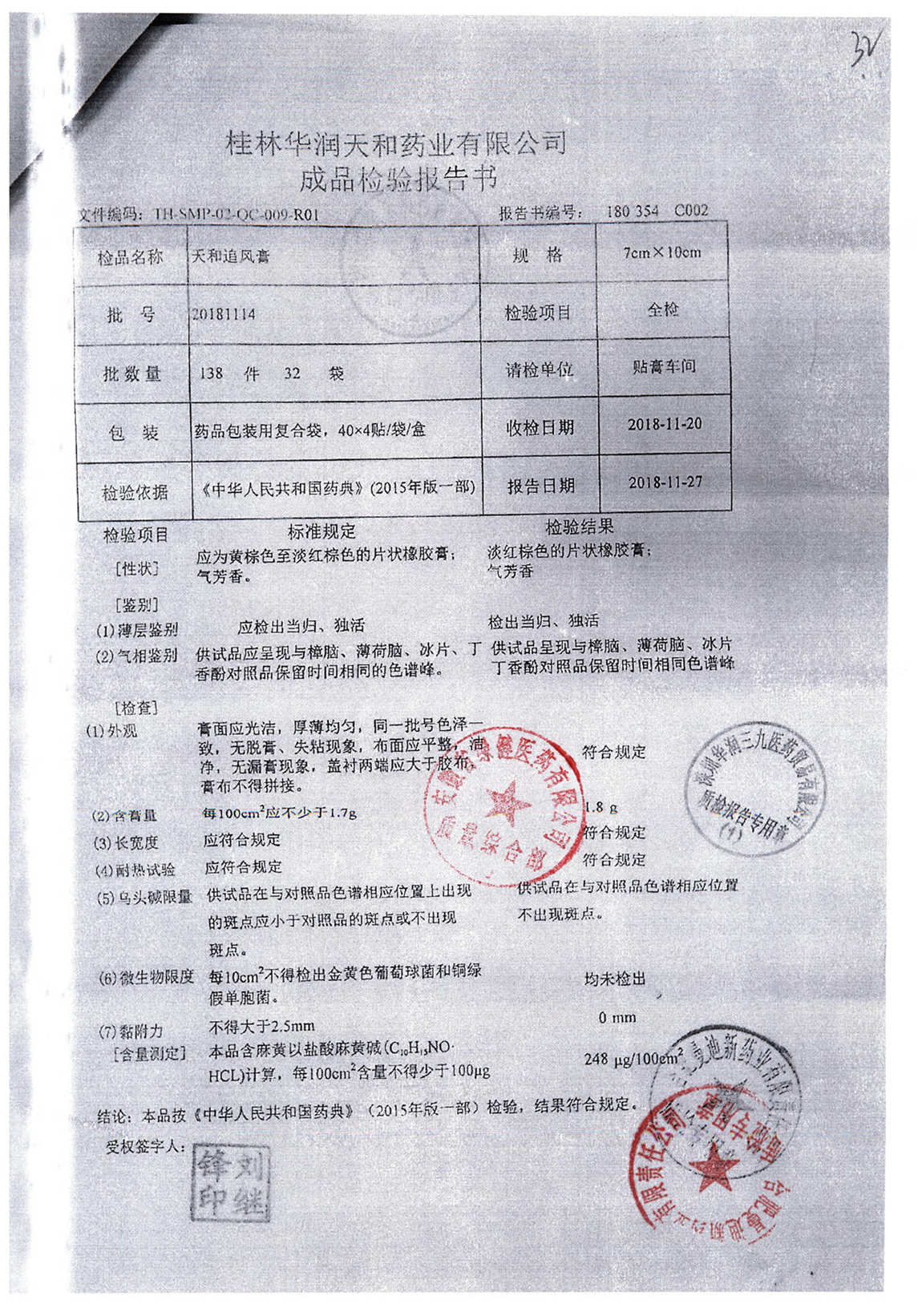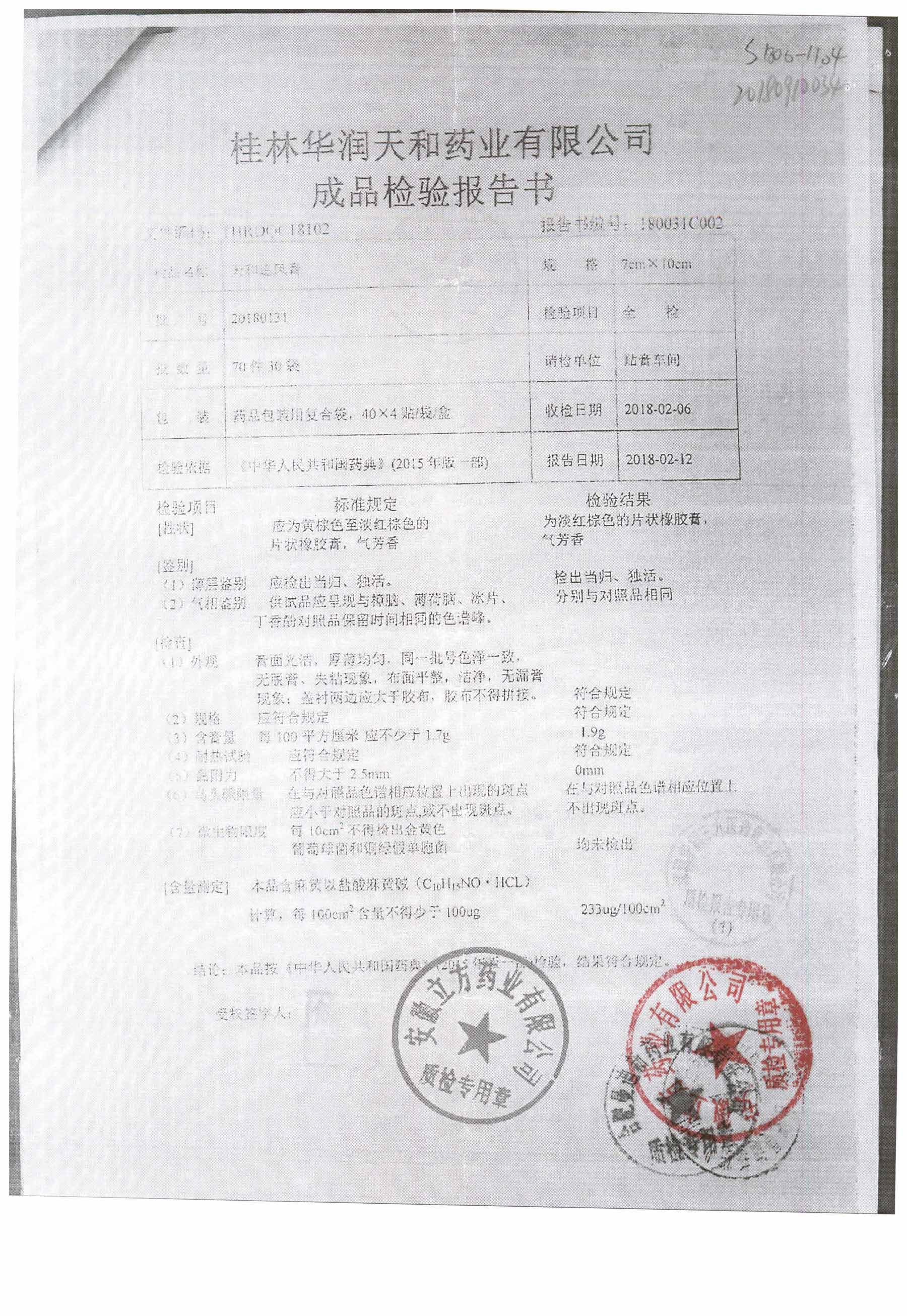 天和追风膏 | 7cm*10cm*4贴 | 20181114 | 查看详情 |