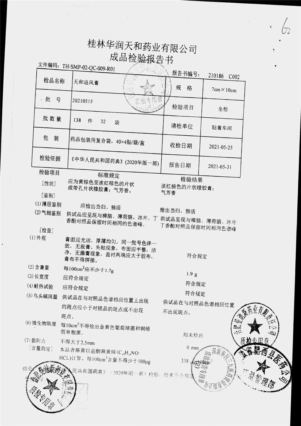 天和追风膏 | 7cm*10cm*4贴 | 20210515 | 查看详情 |