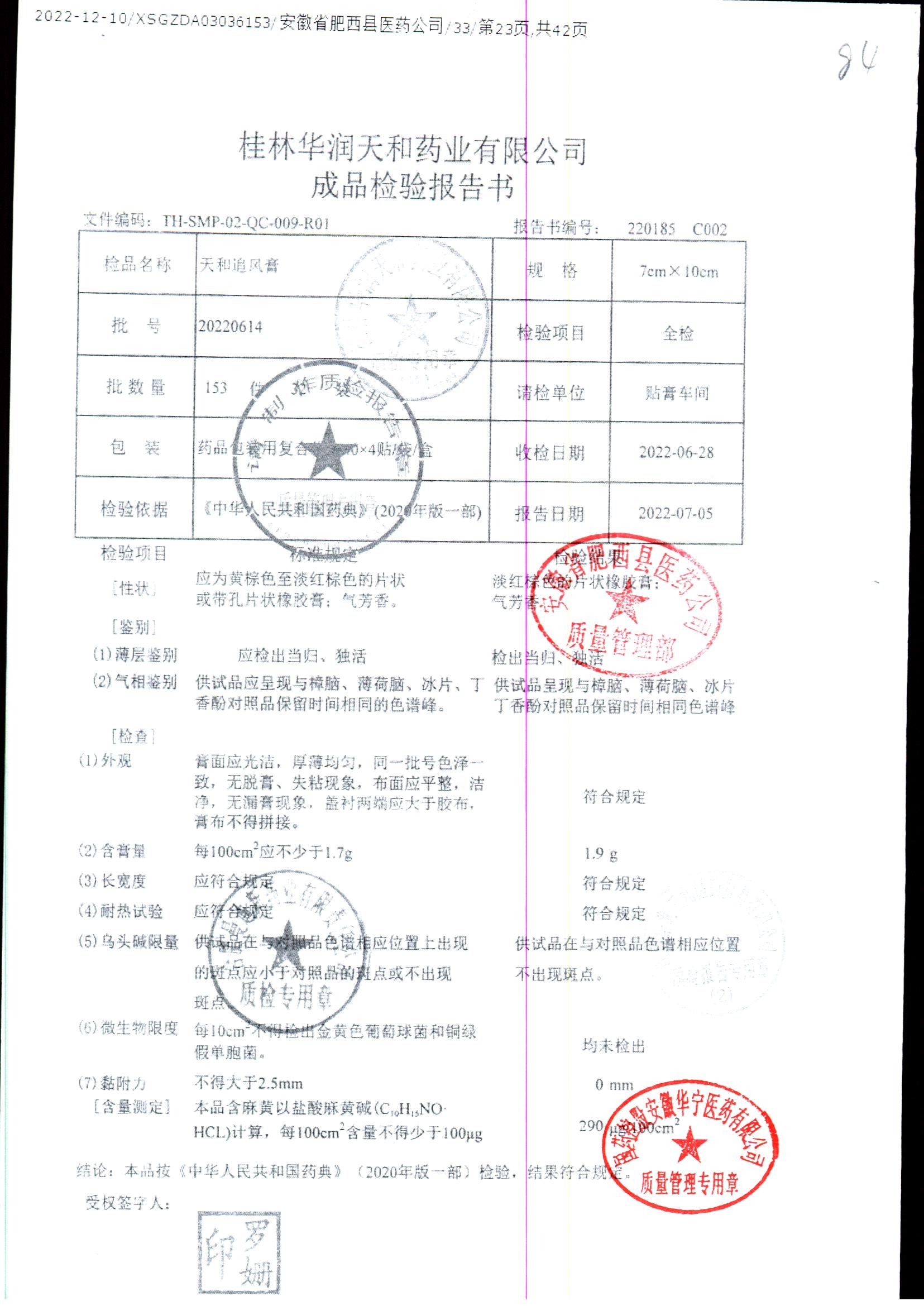 天和追风膏 | 7cm*10cm*4贴 | 20220614 | 查看详情 |