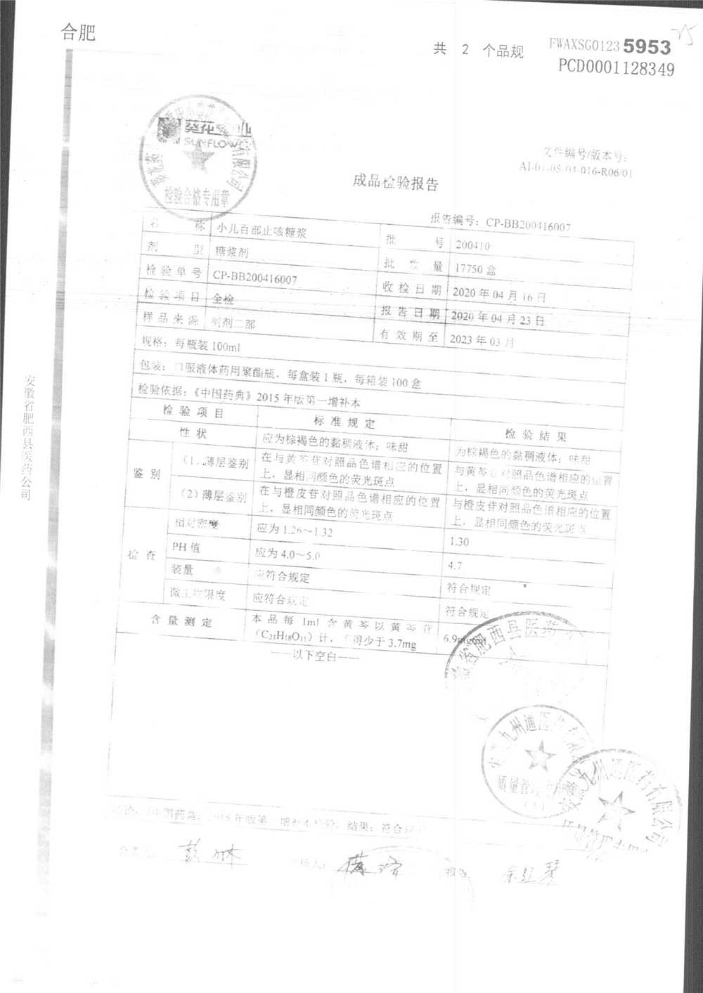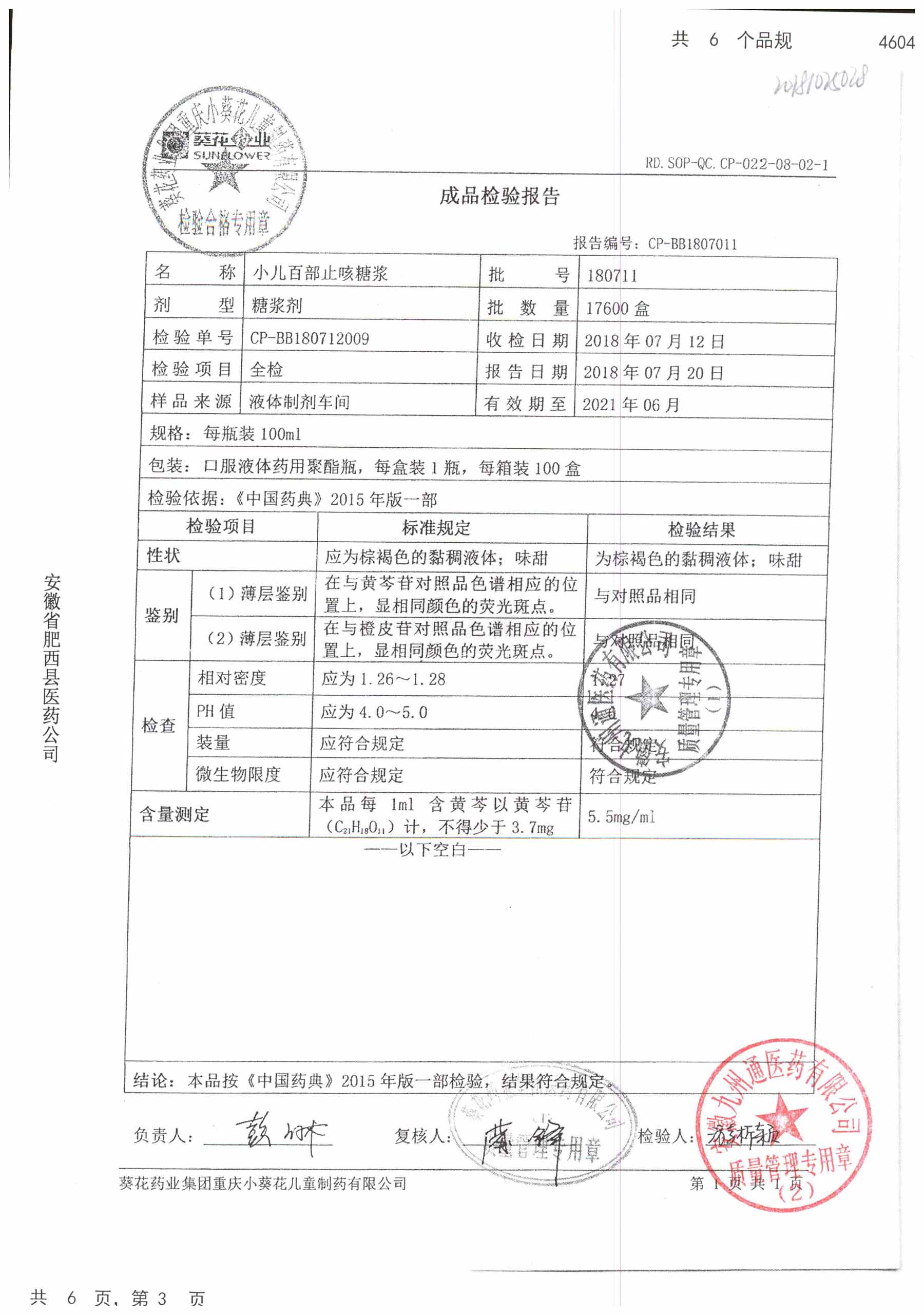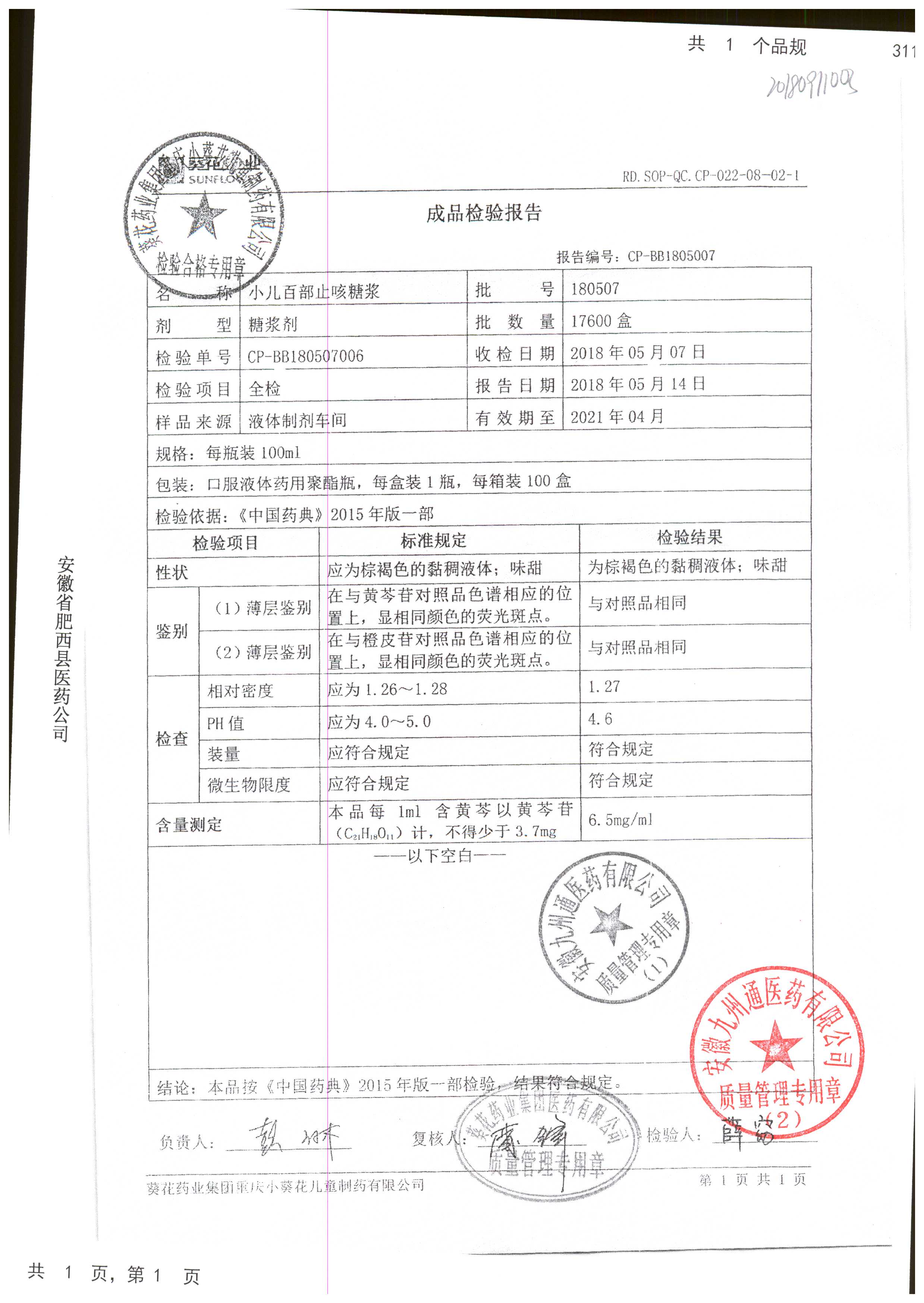 小儿百部止咳糖浆 | 100ml | 180507 | 查看详情 |
