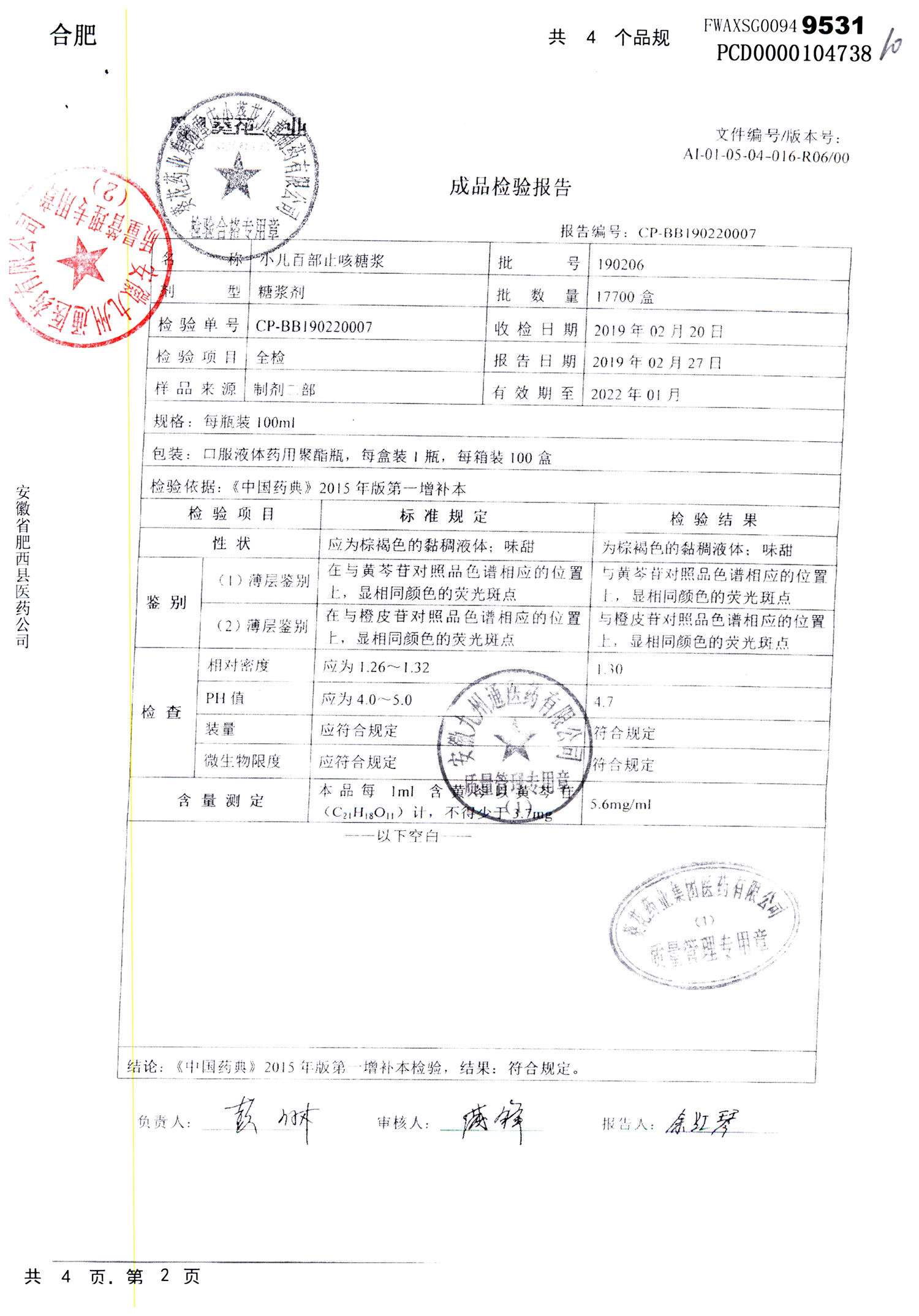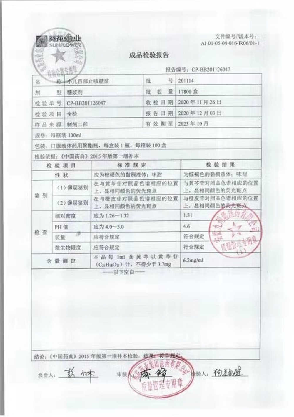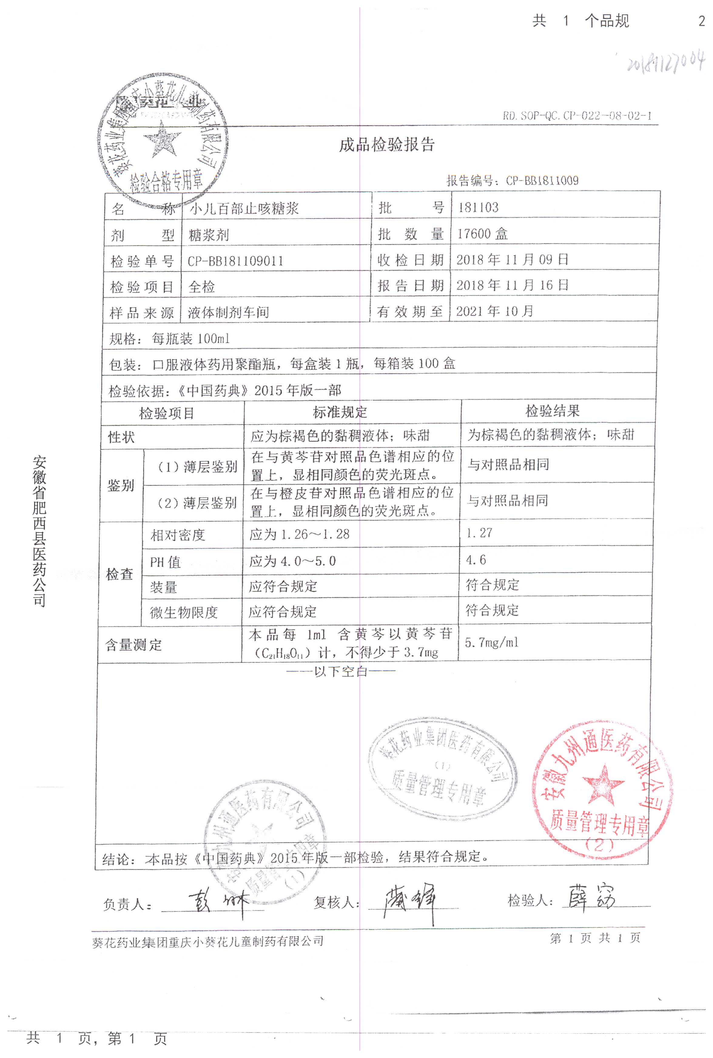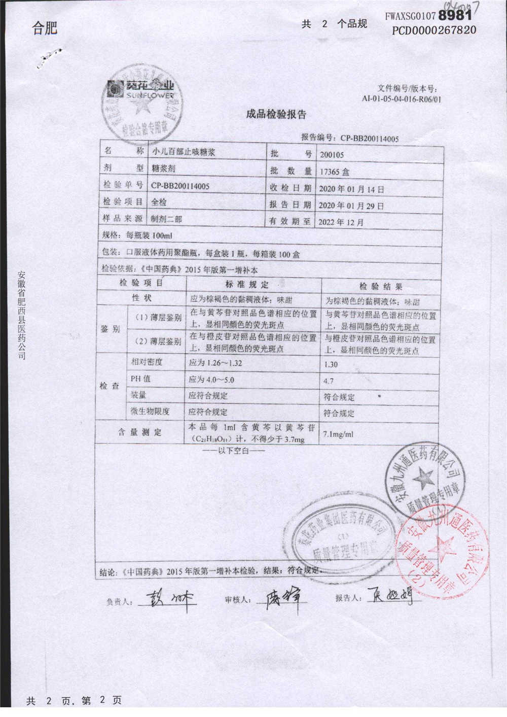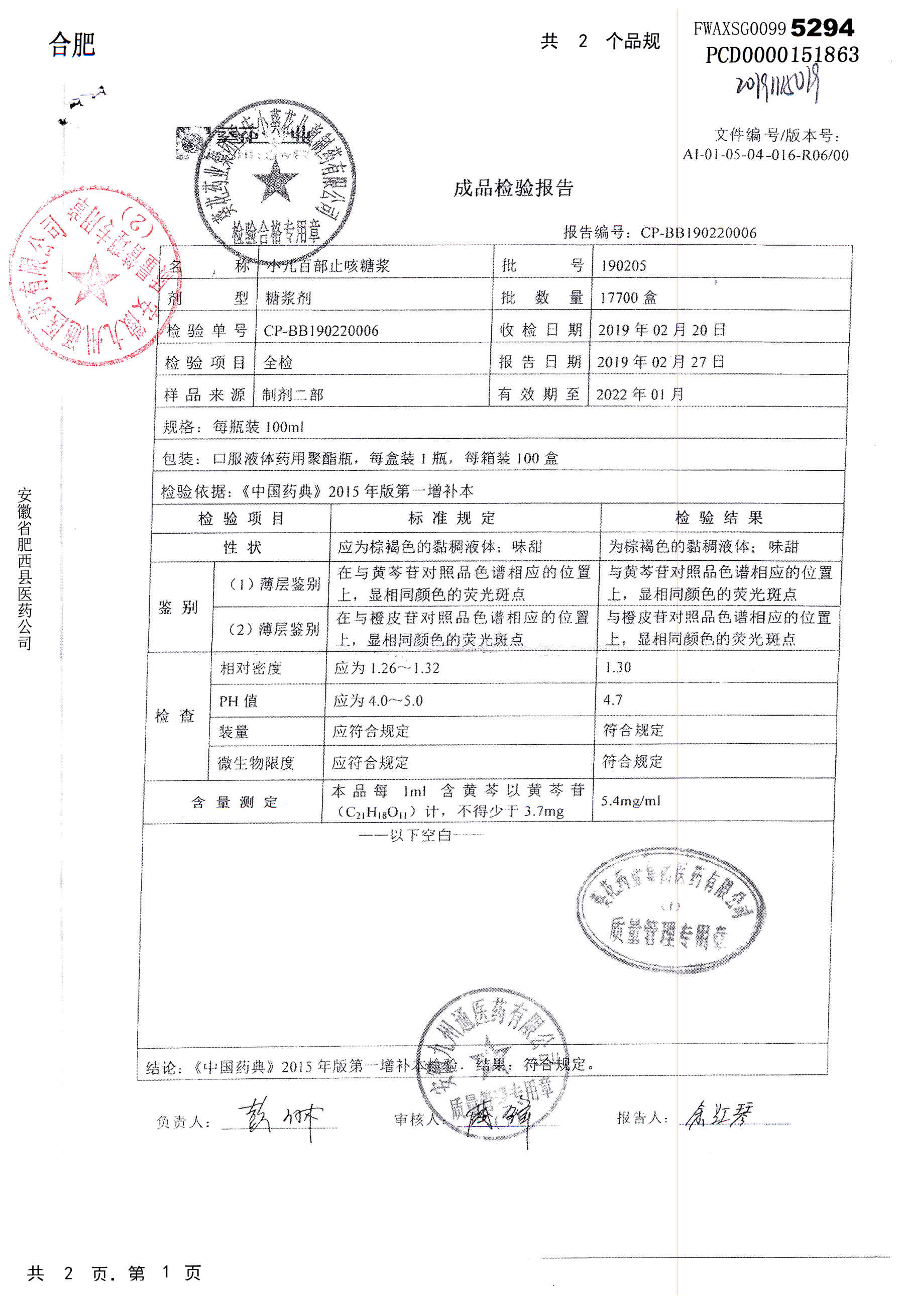 小儿百部止咳糖浆 | 100ml | 210105 | 查看详情 |