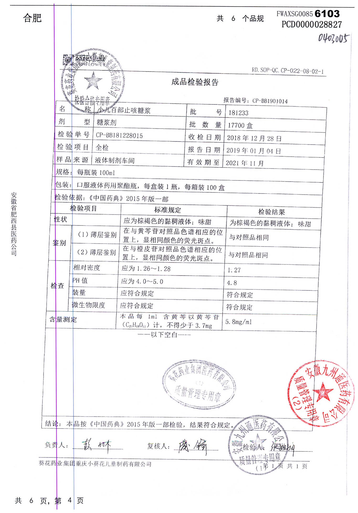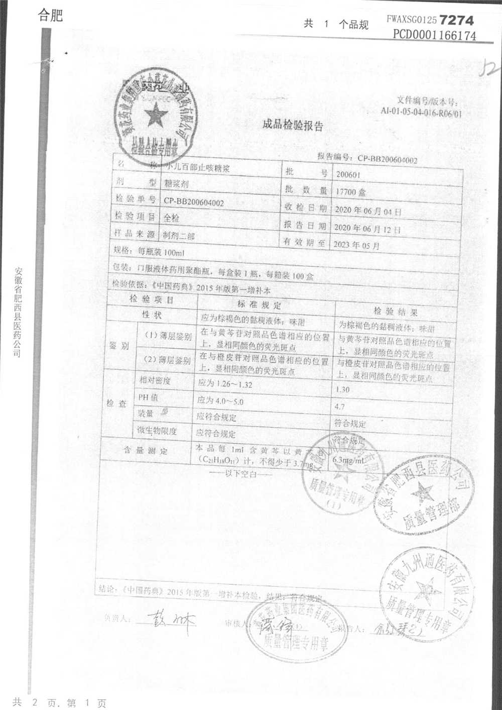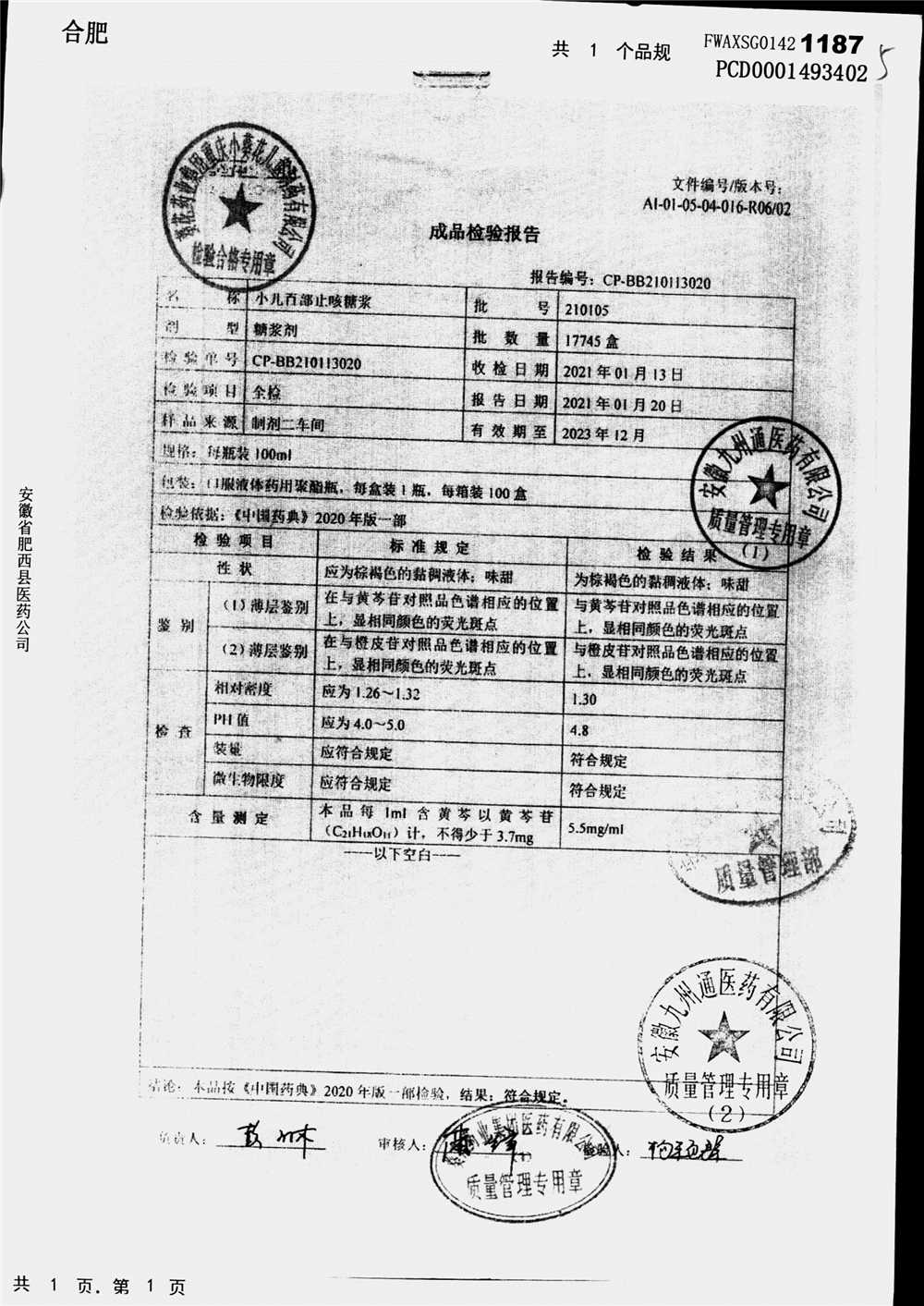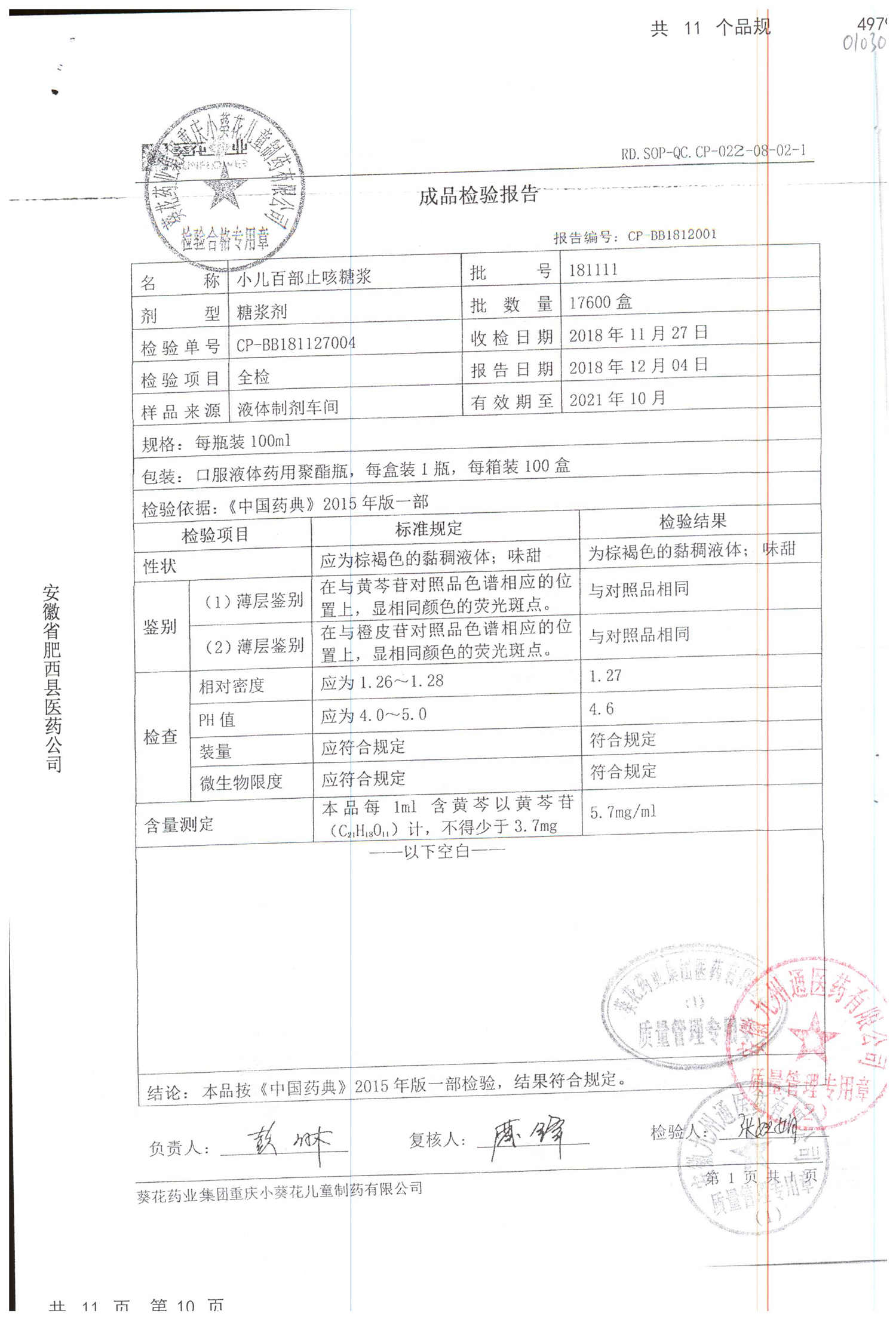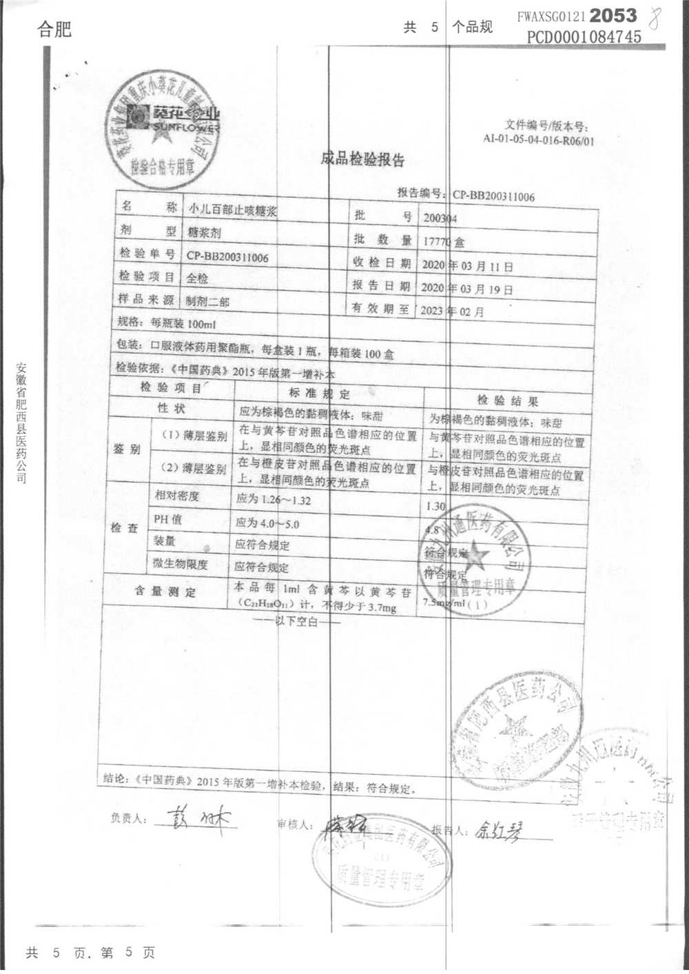 小儿百部止咳糖浆 | 100ml | 210105 | 查看详情 |