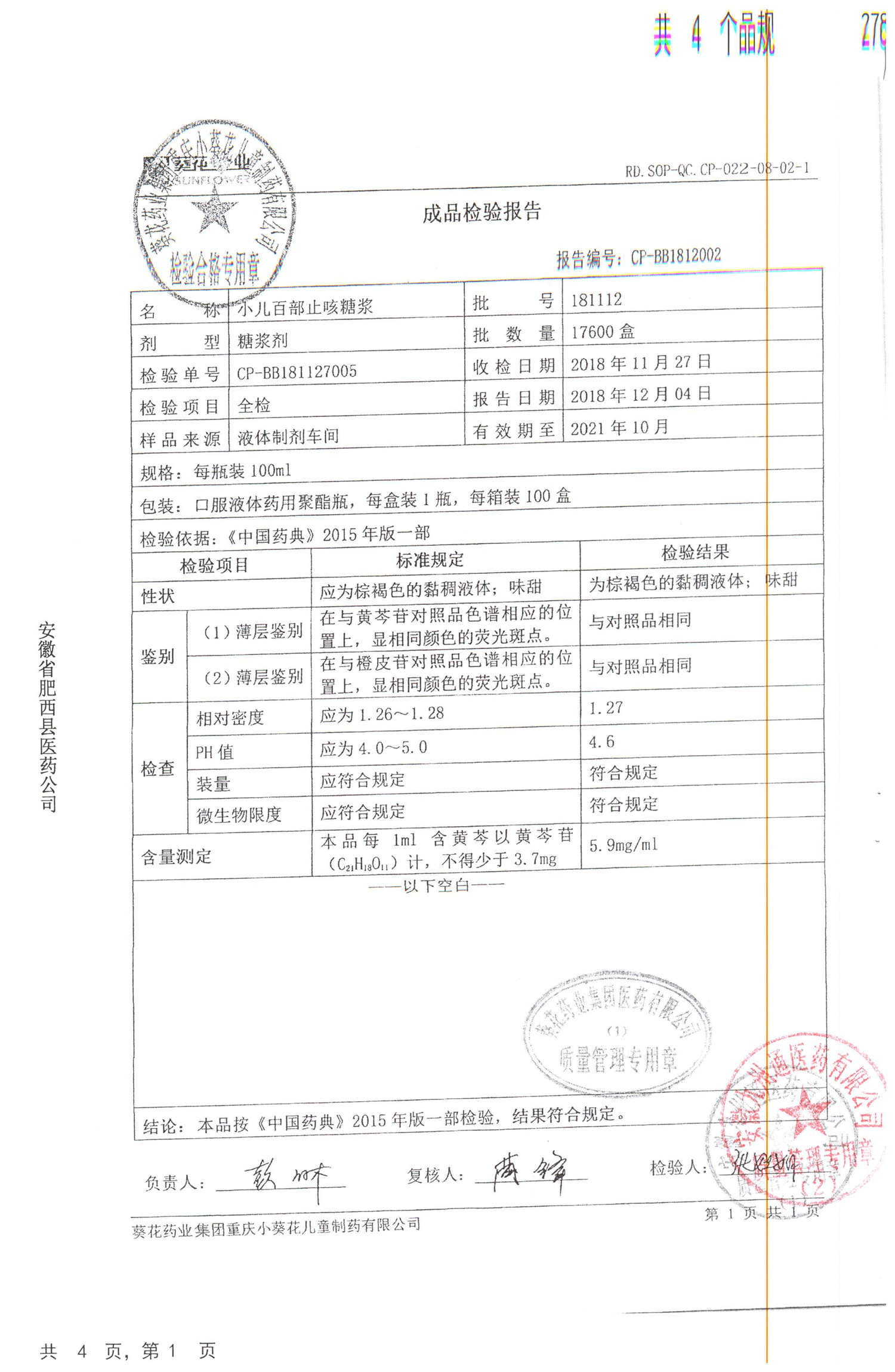 小儿百部止咳糖浆 | 100ml | 181234 | 查看详情 |