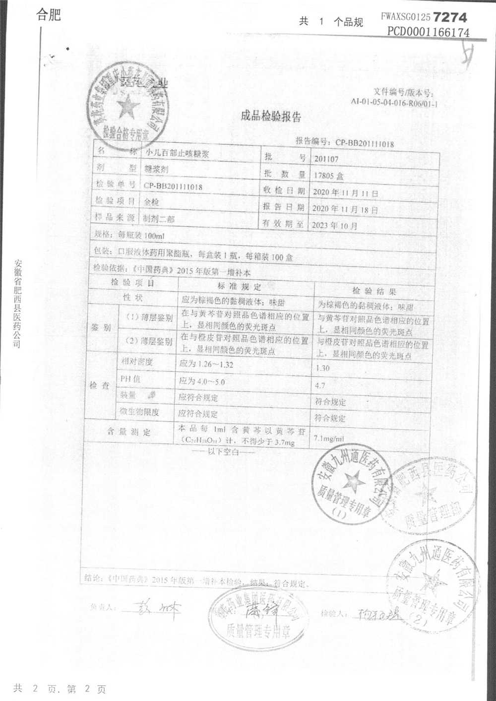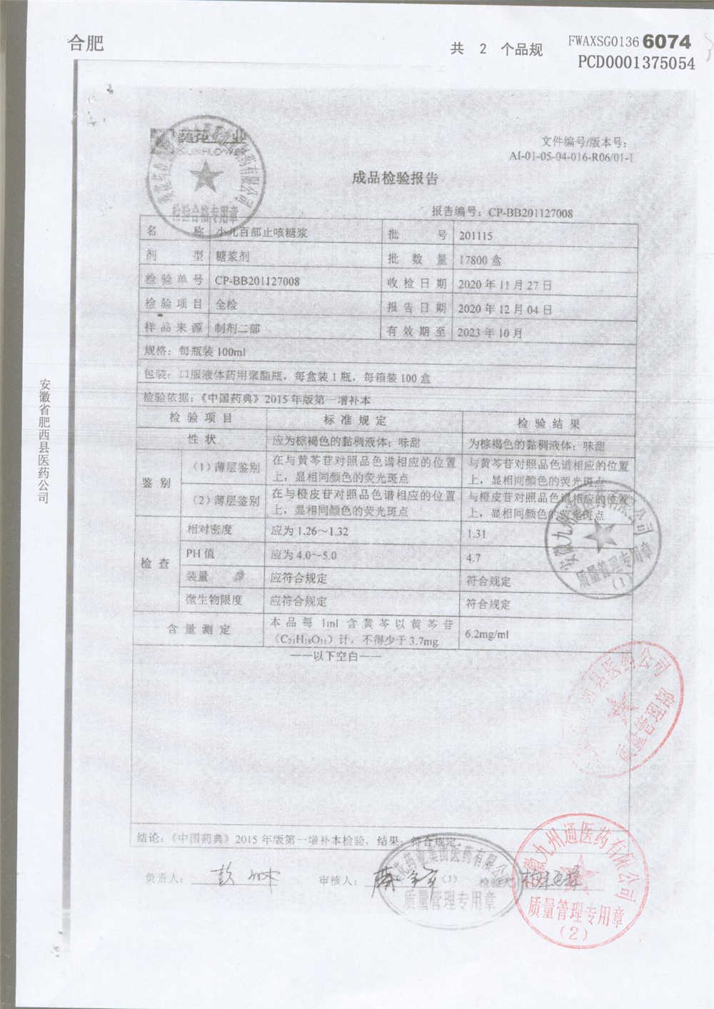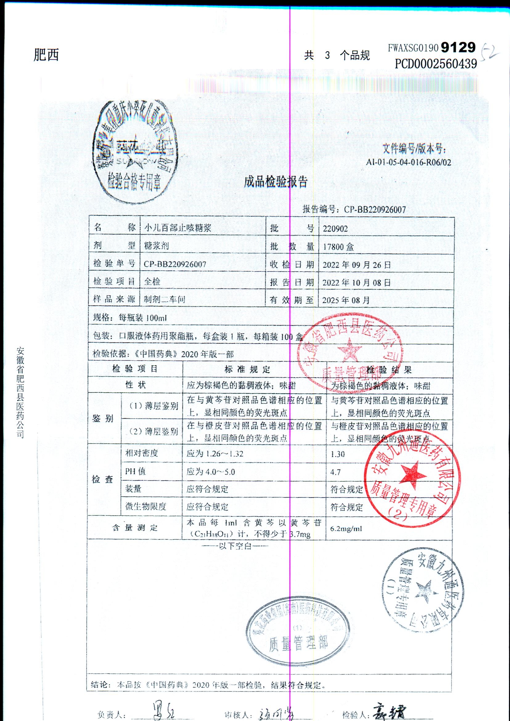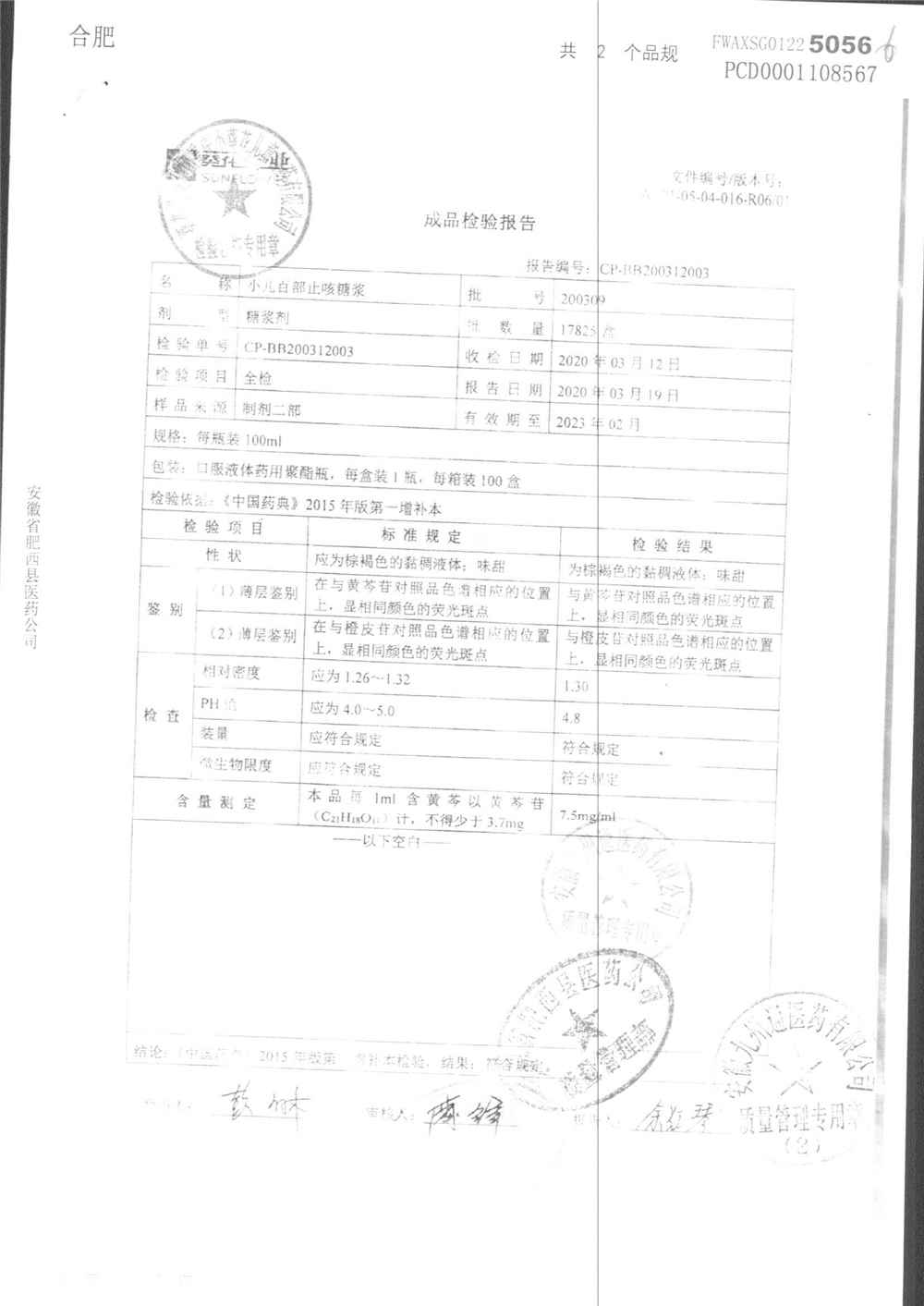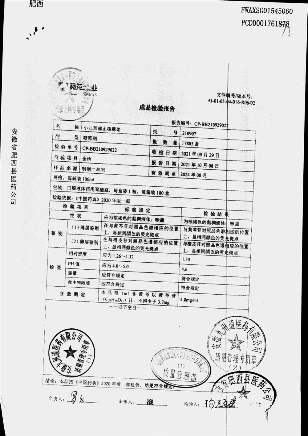 小儿百部止咳糖浆 | 100ml | 210907 | 查看详情 |