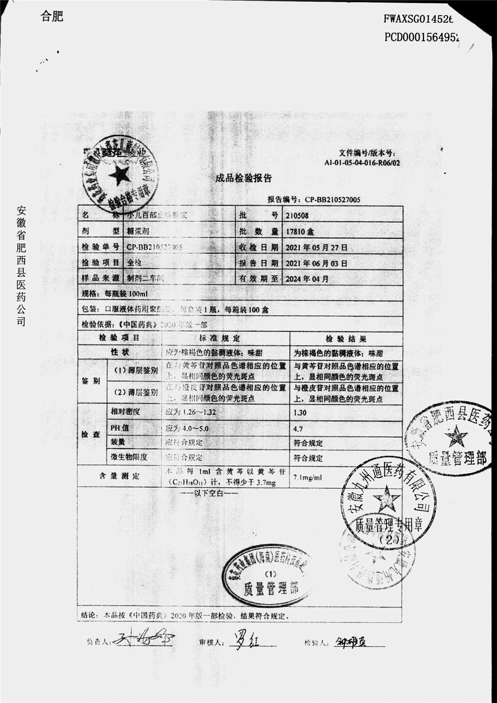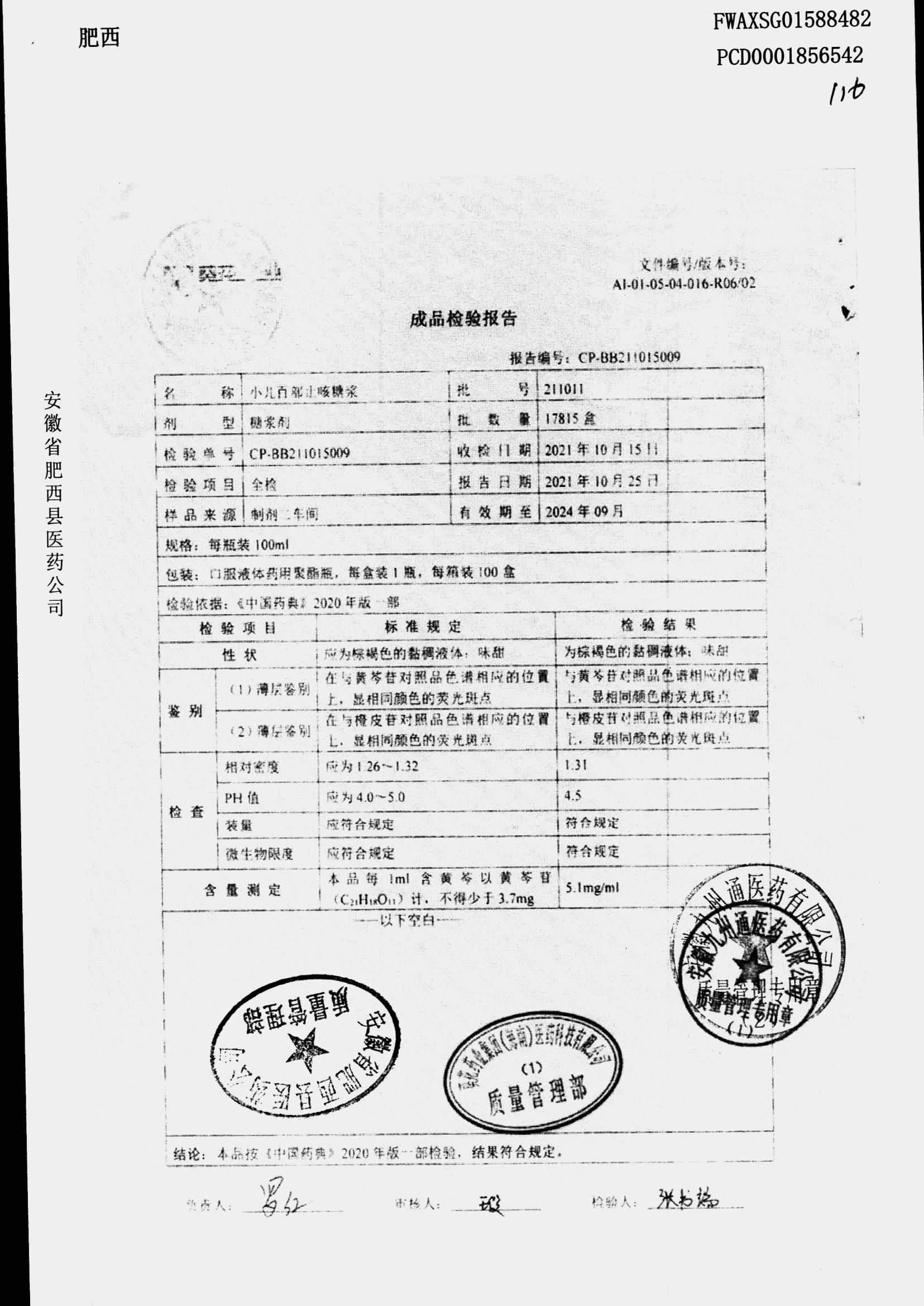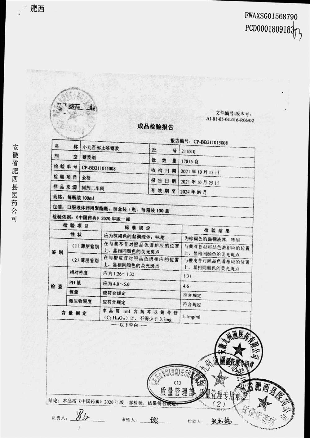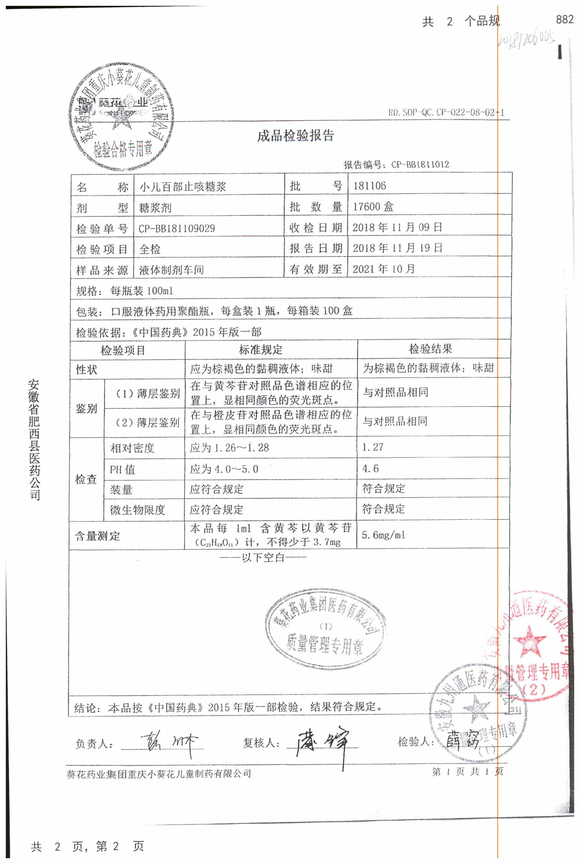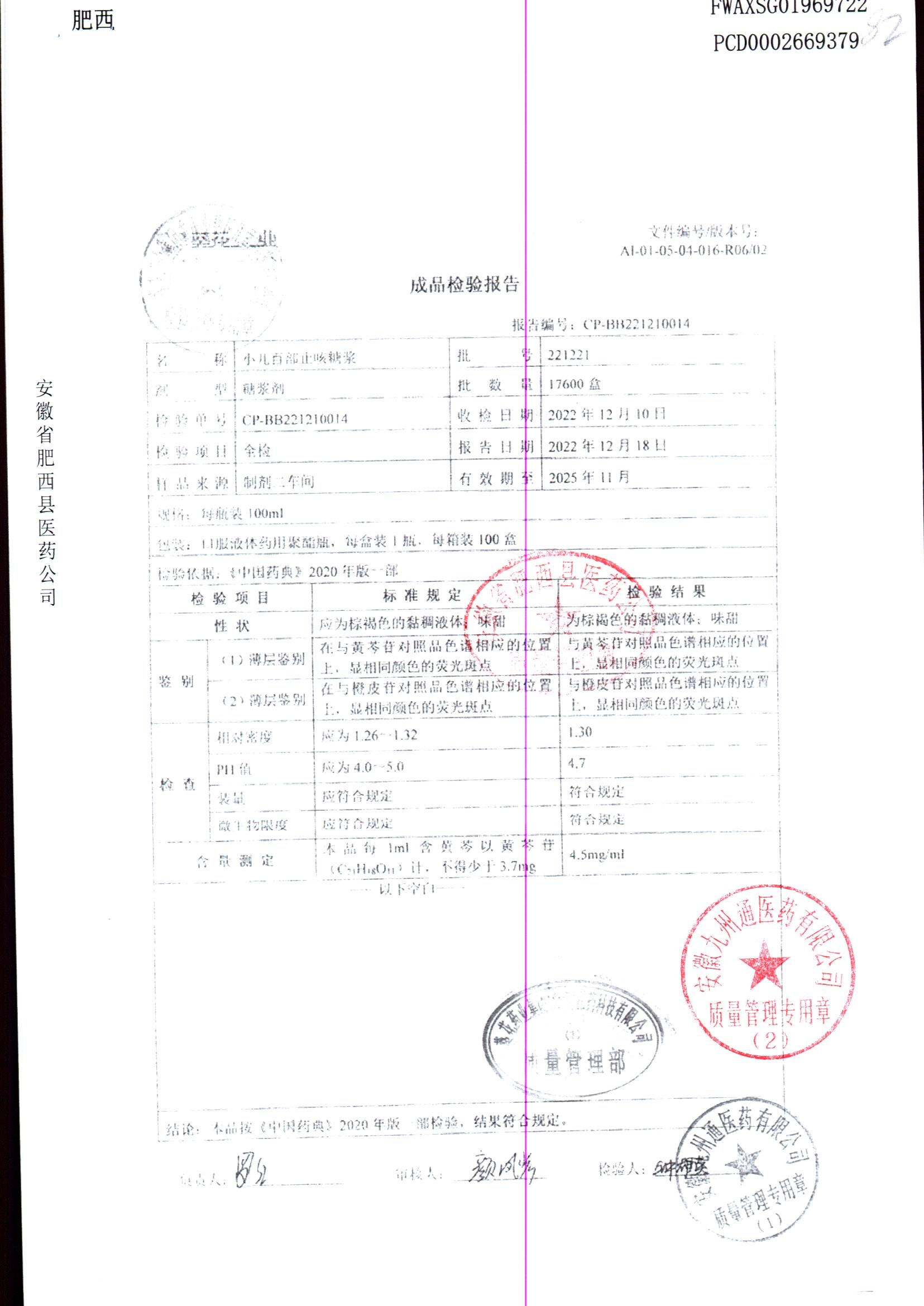 小儿百部止咳糖浆 | 100ml | 210907 | 查看详情 |