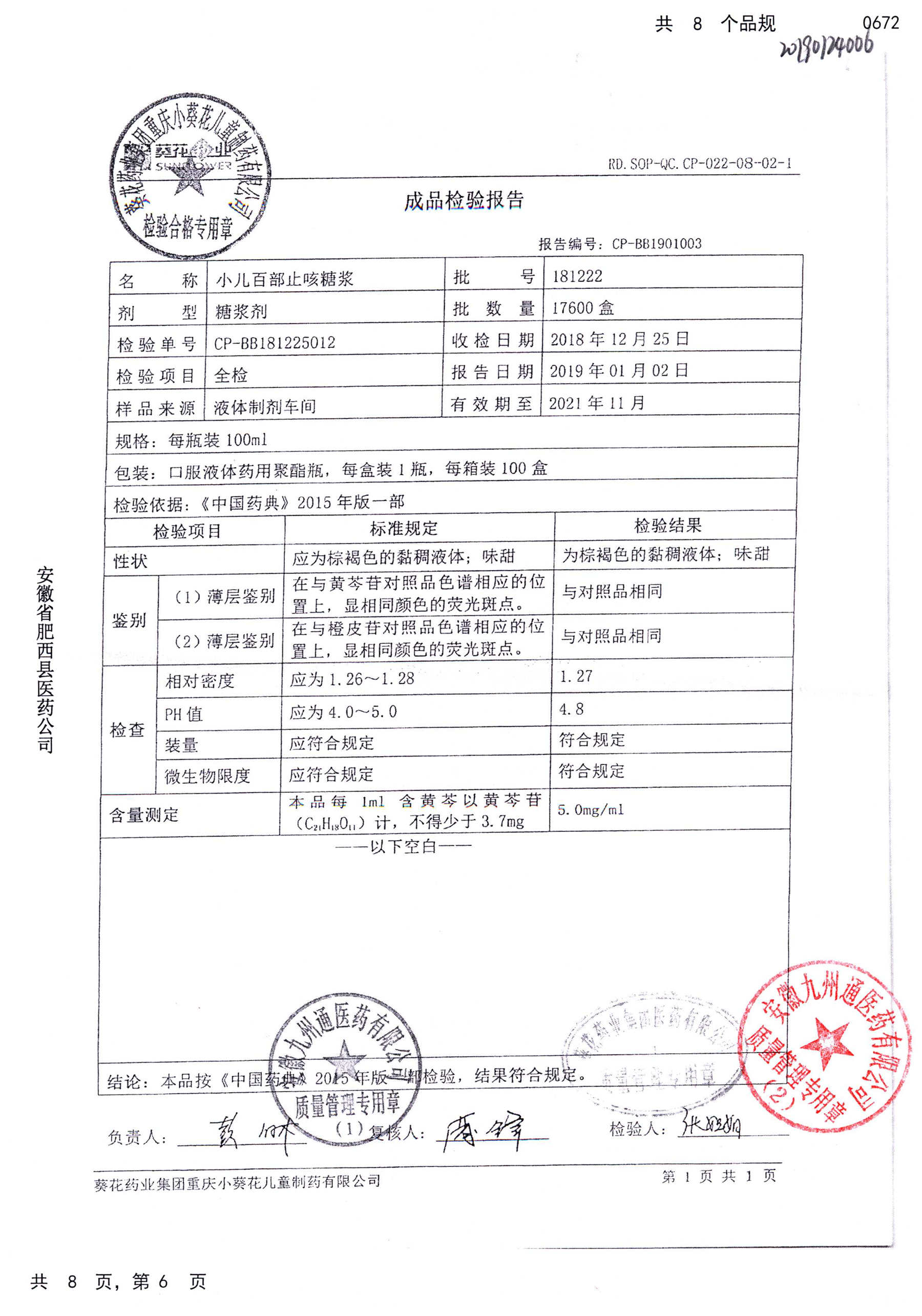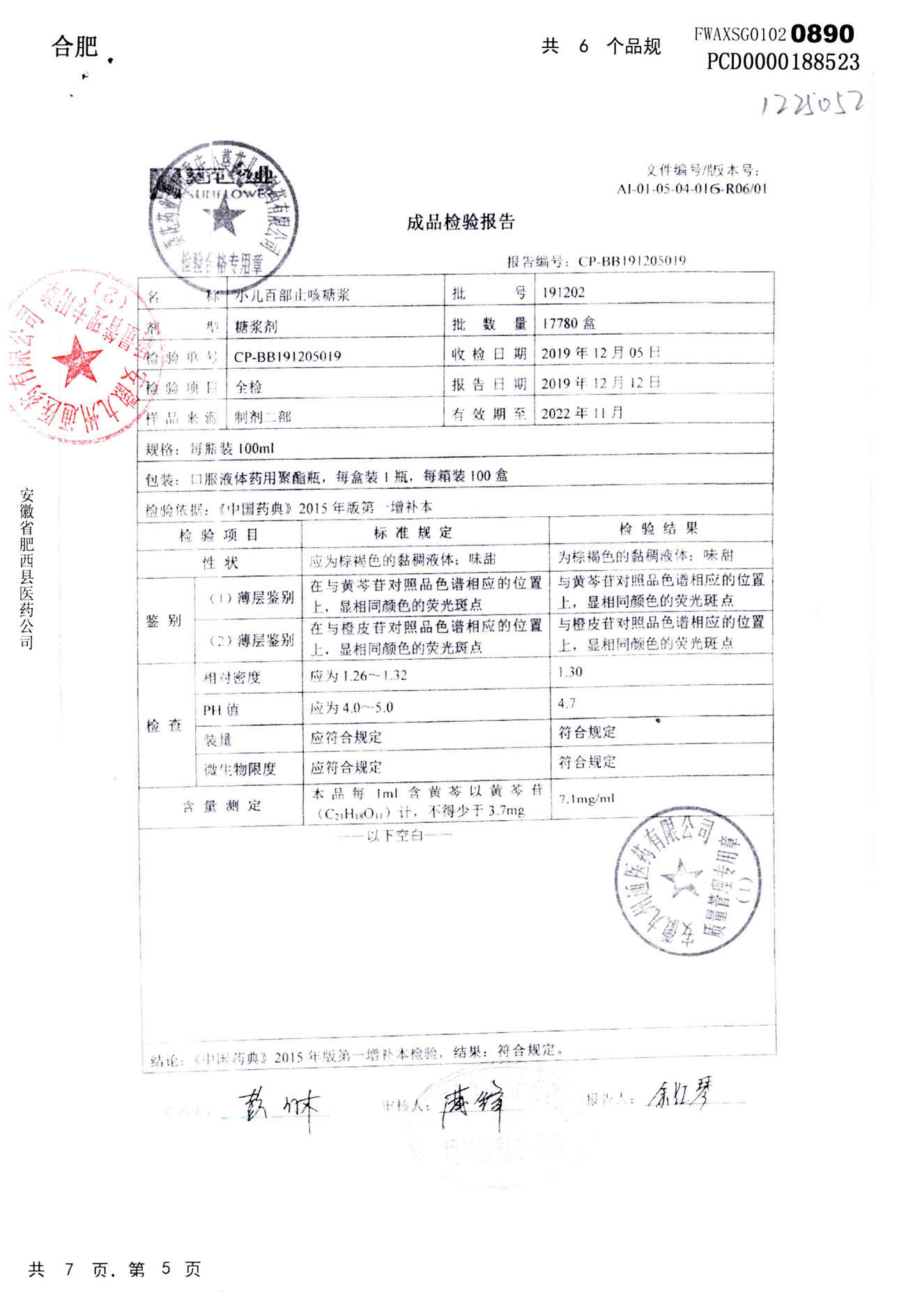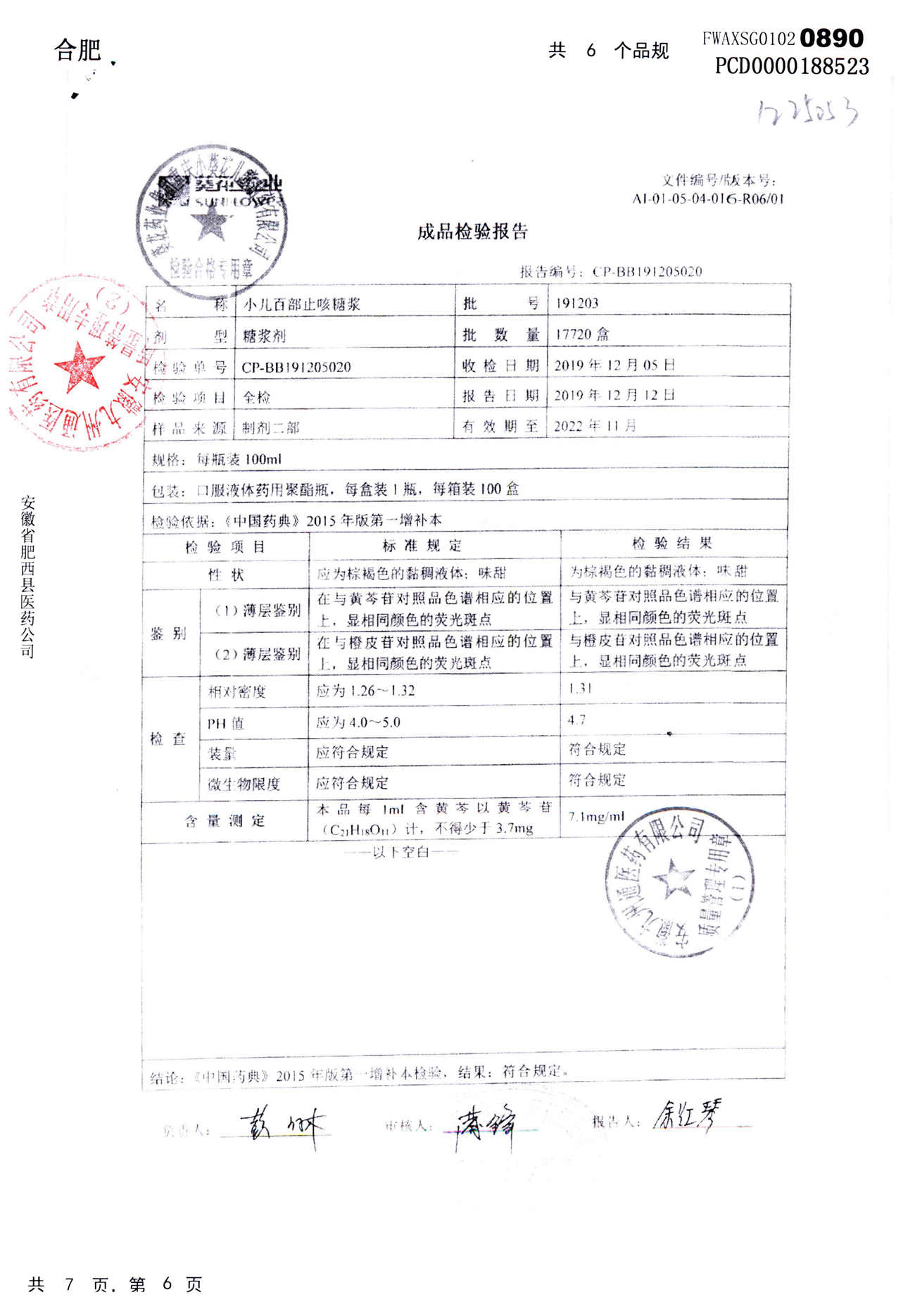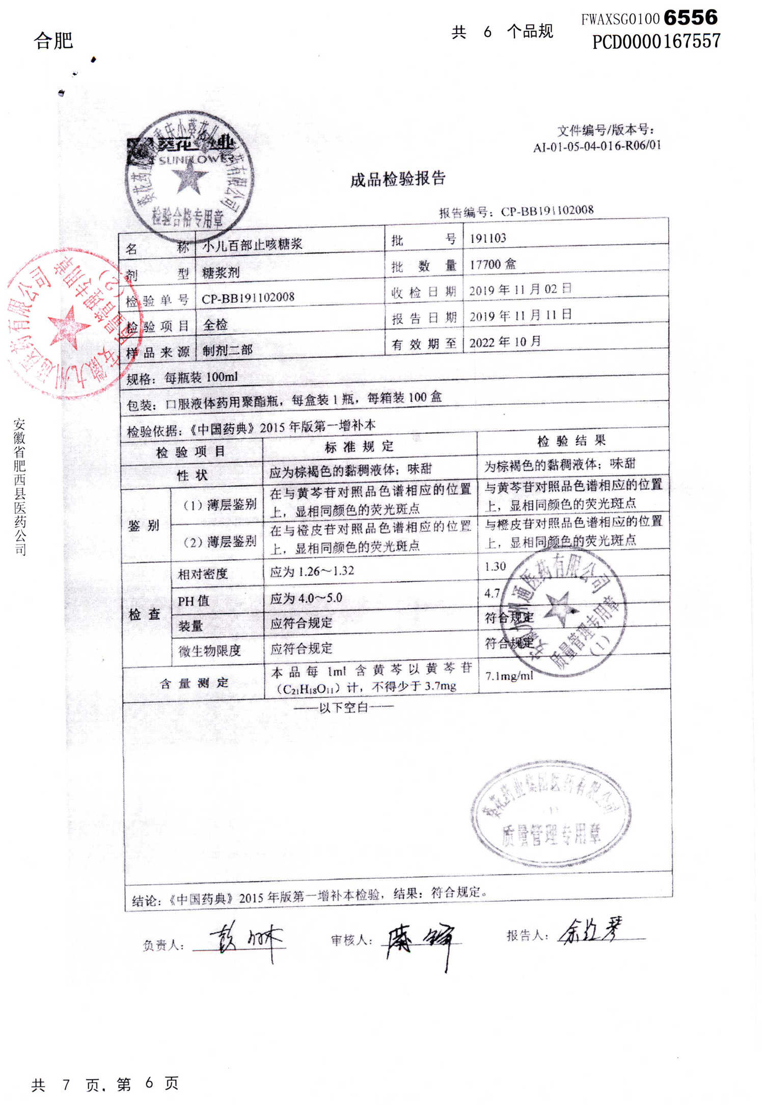 小儿百部止咳糖浆 | 100ml | 191203 | 查看详情 |