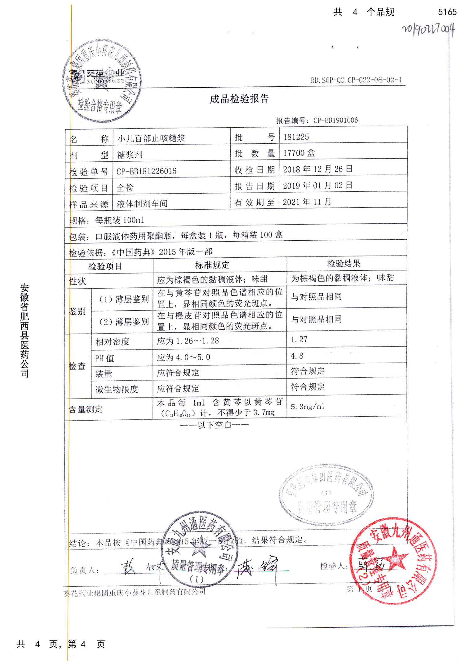 小儿百部止咳糖浆 | 100ml | 191202 | 查看详情 |