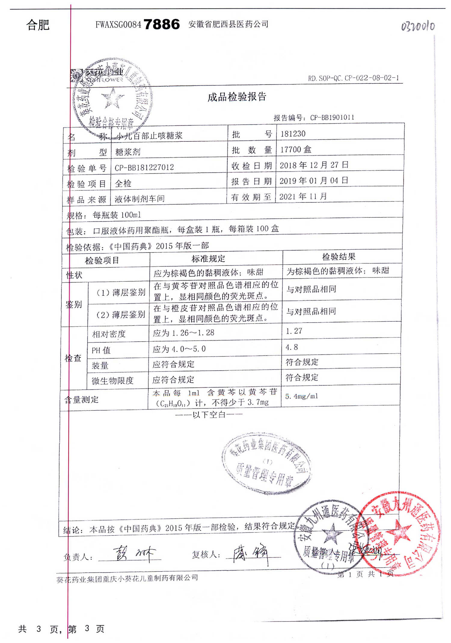 小儿百部止咳糖浆 | 100ml | 181230 | 查看详情 |