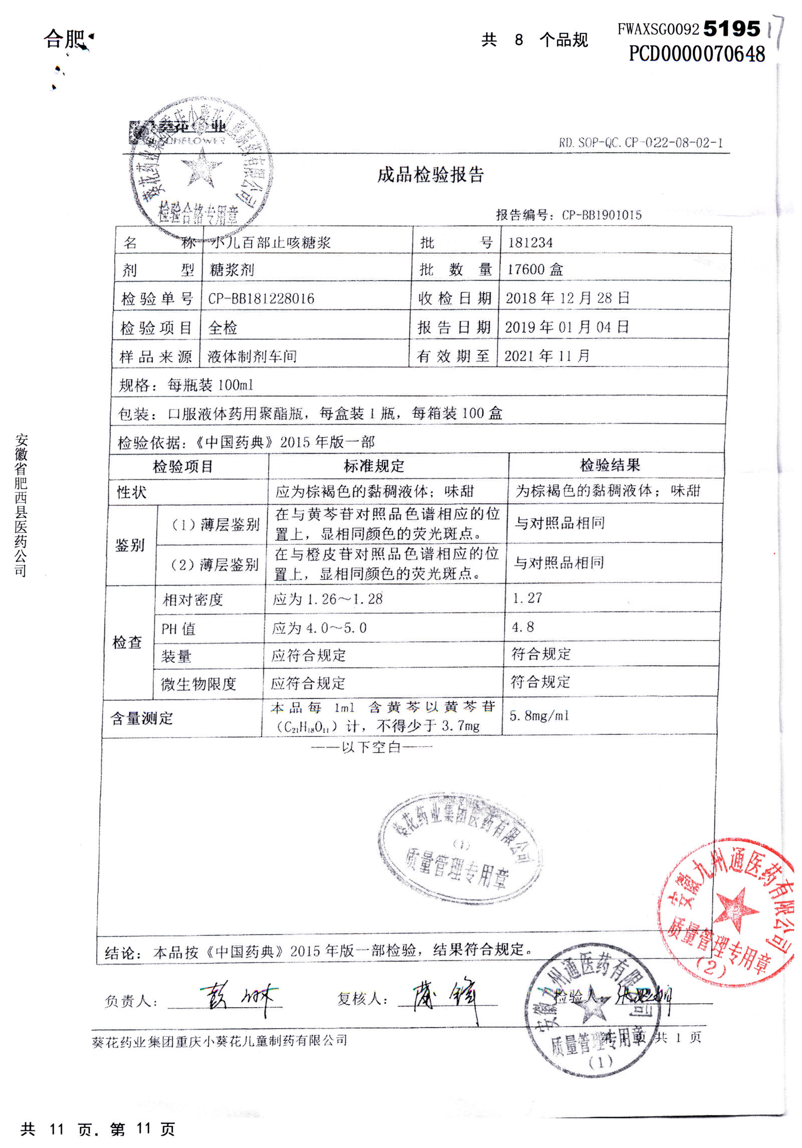 小儿百部止咳糖浆 | 100ml | 210709 | 查看详情 |