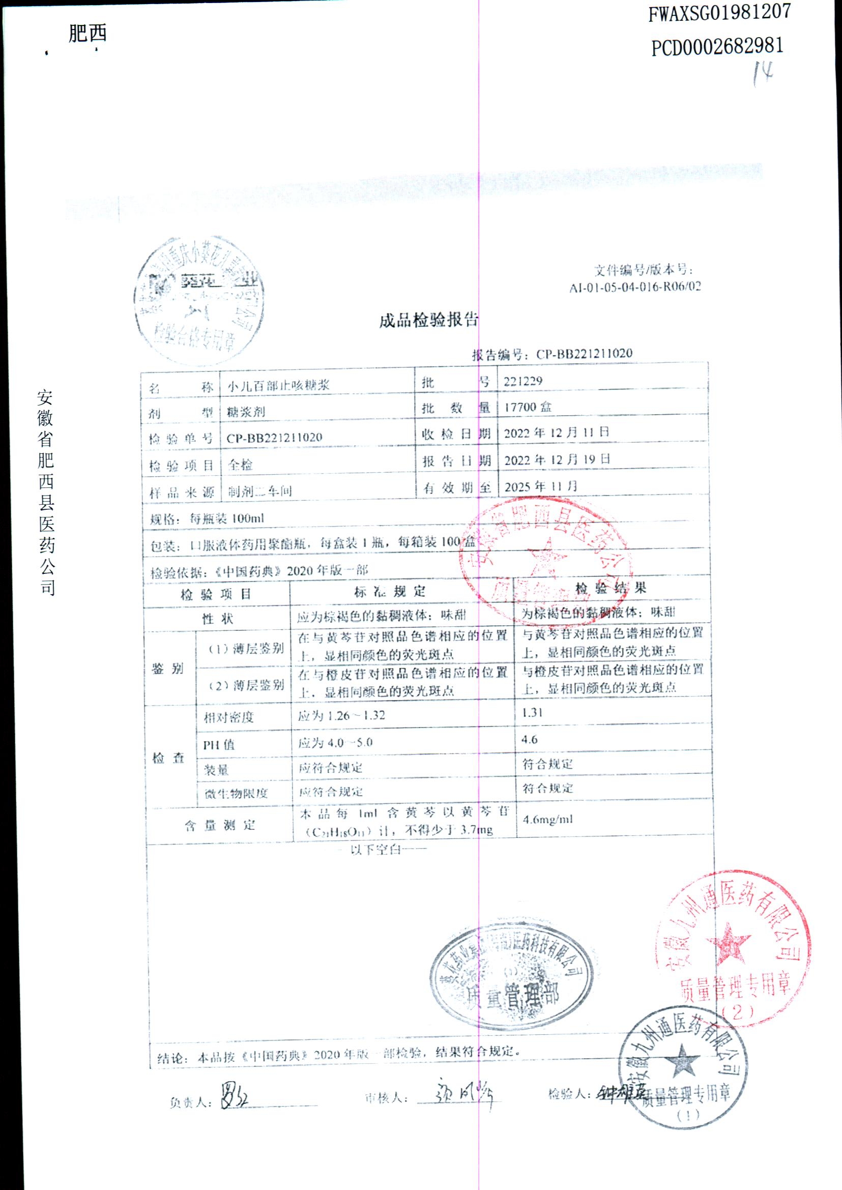 小儿百部止咳糖浆 | 100ml | 221229 | 查看详情 |