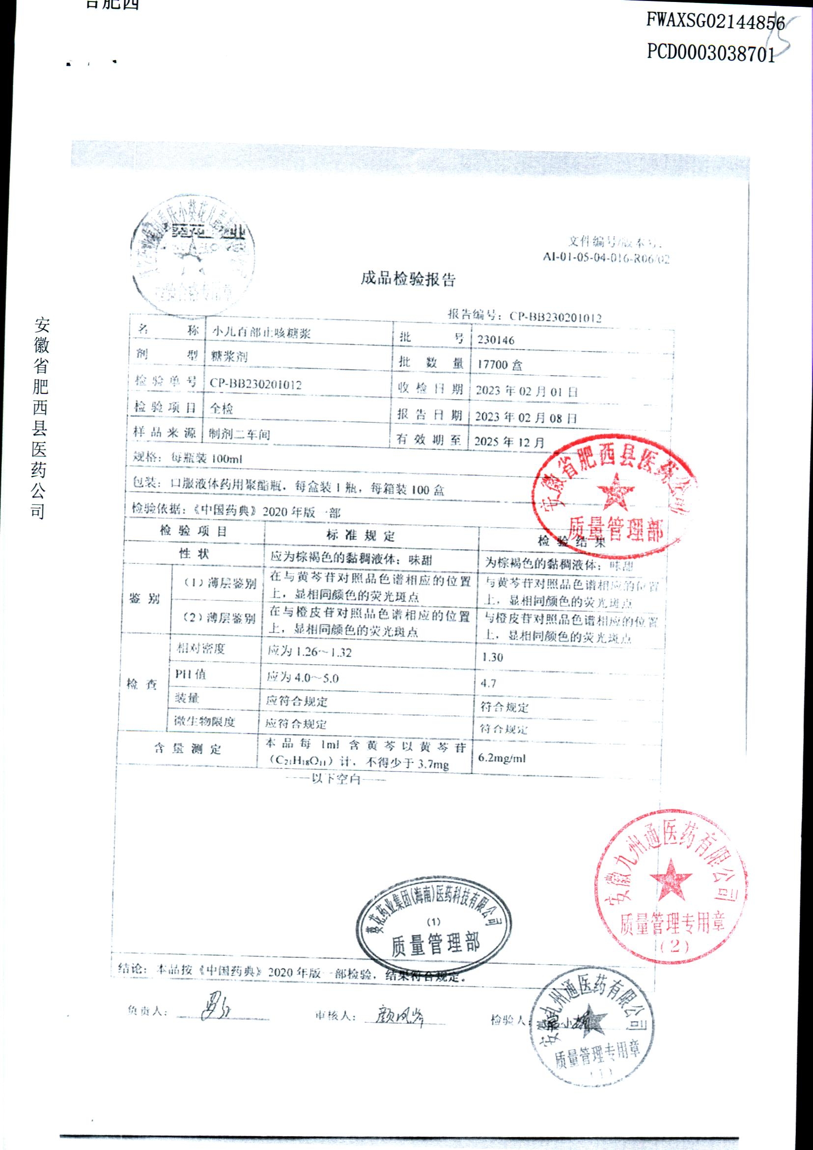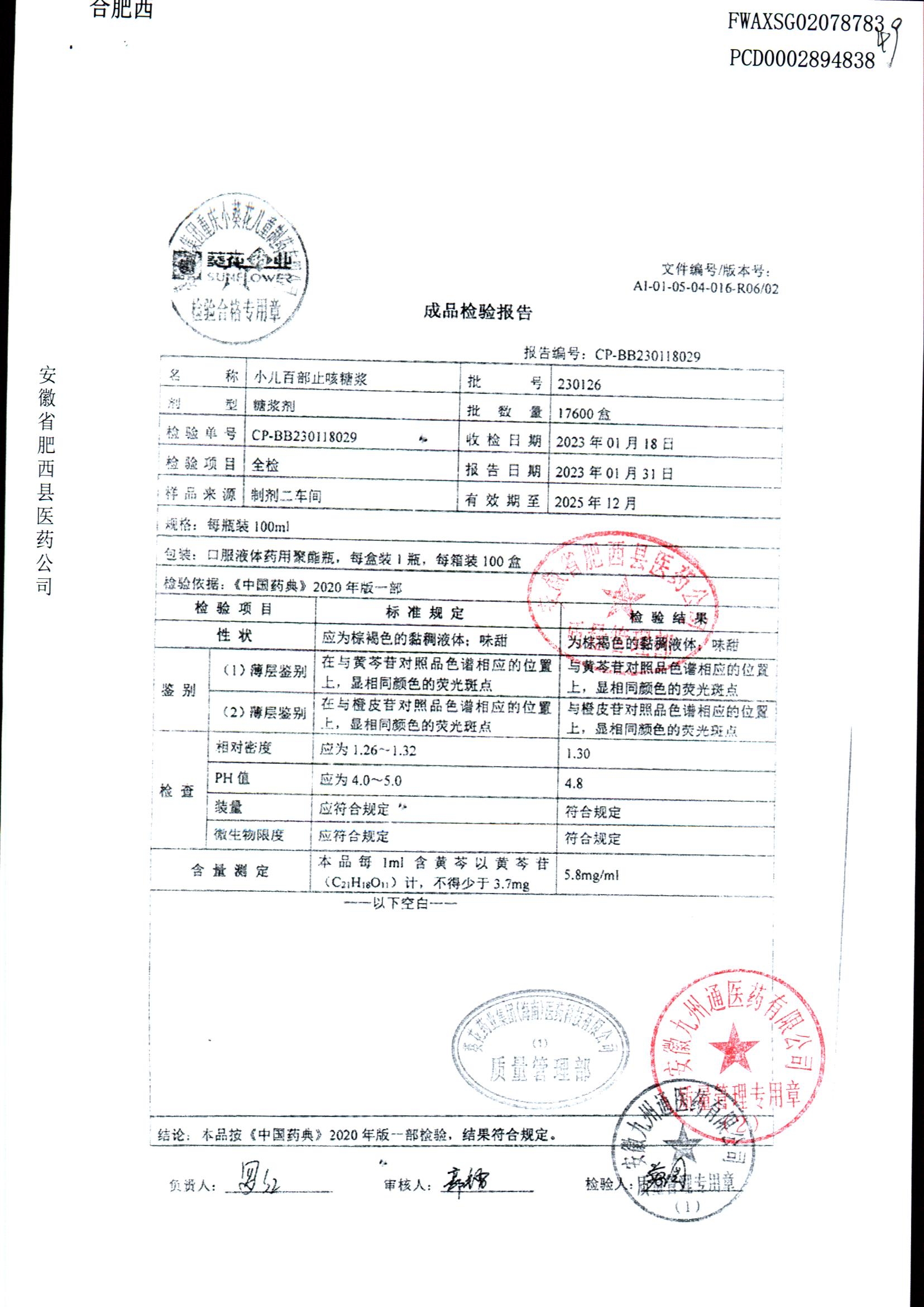 小儿百部止咳糖浆 | 100ml | 230216 | 查看详情 |