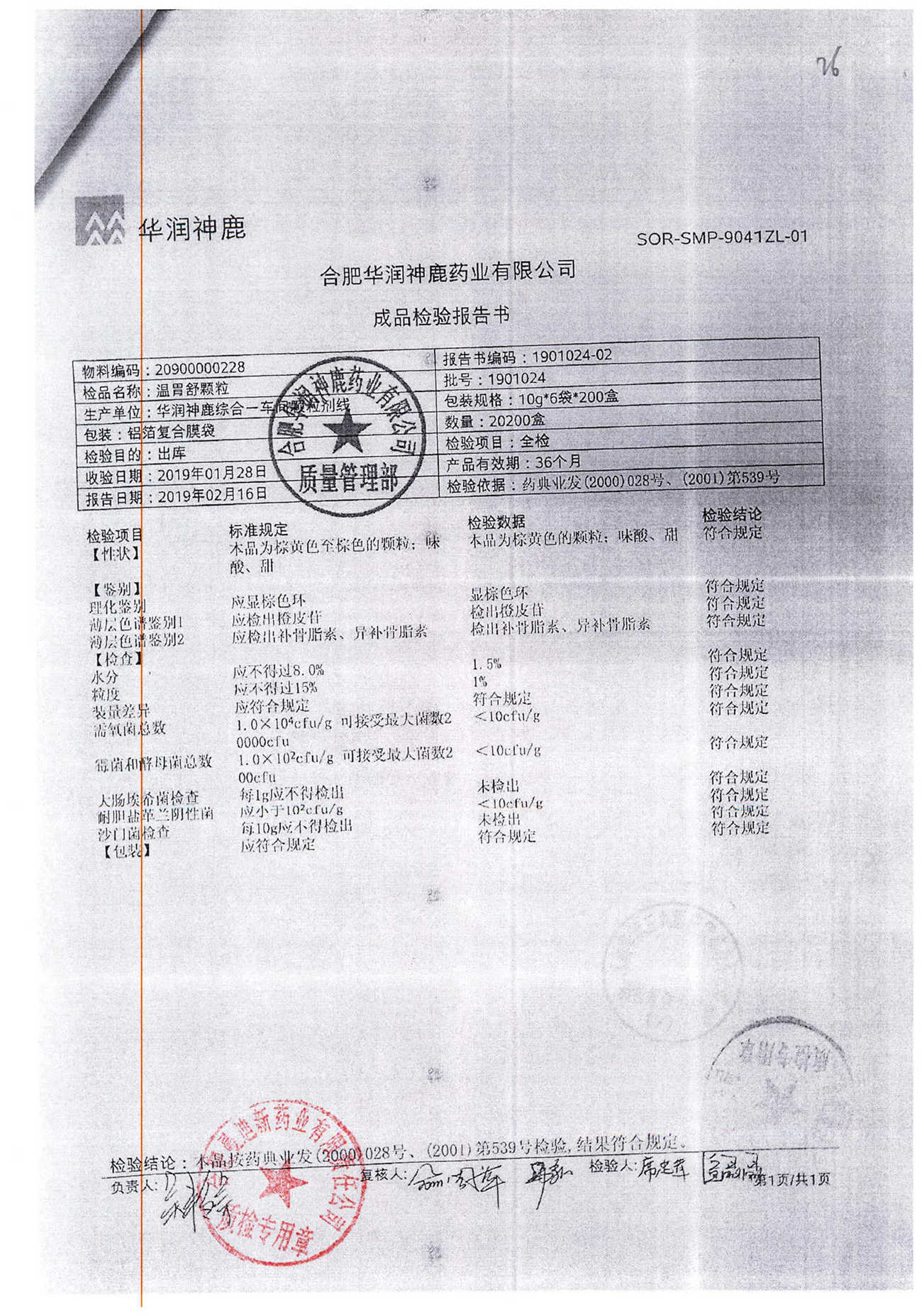 温胃舒颗粒 | 10g*6袋 | 1910020 | 查看详情 |