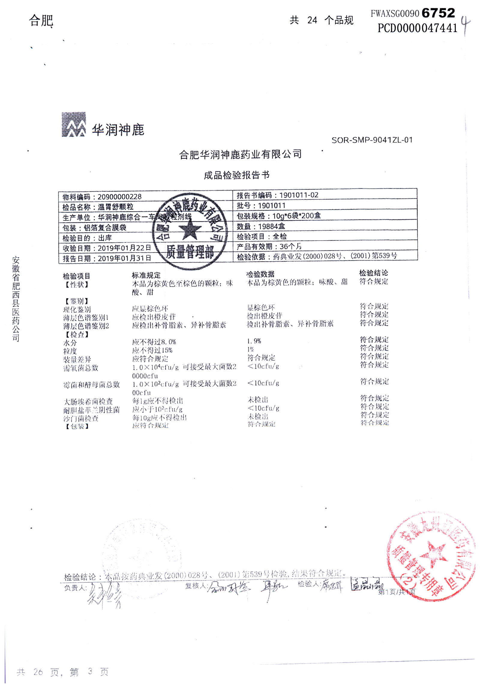 温胃舒颗粒 | 10g*6袋 | 1906017 | 查看详情 |