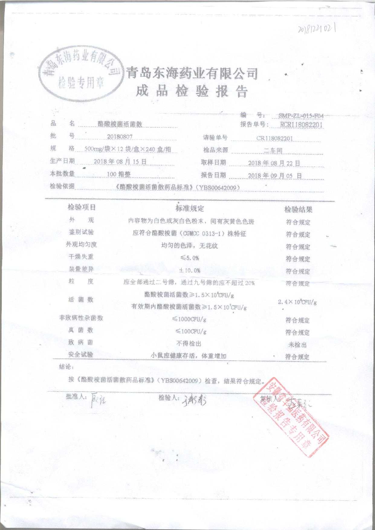 酪酸梭菌活菌散 | 500mg*12袋 | 20180807 | 查看详情 |