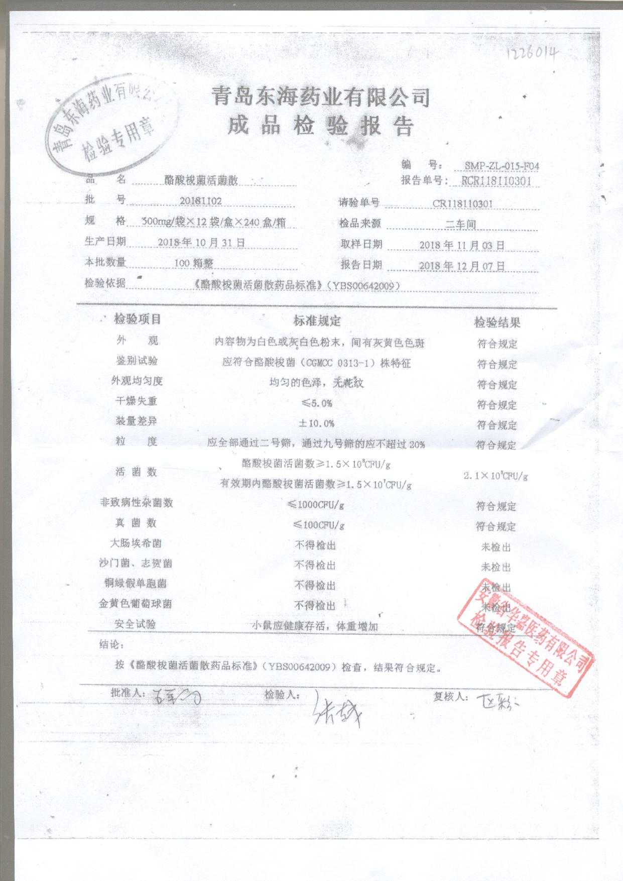 酪酸梭菌活菌散 | 500mg*12袋 | 20181102 | 查看详情 |