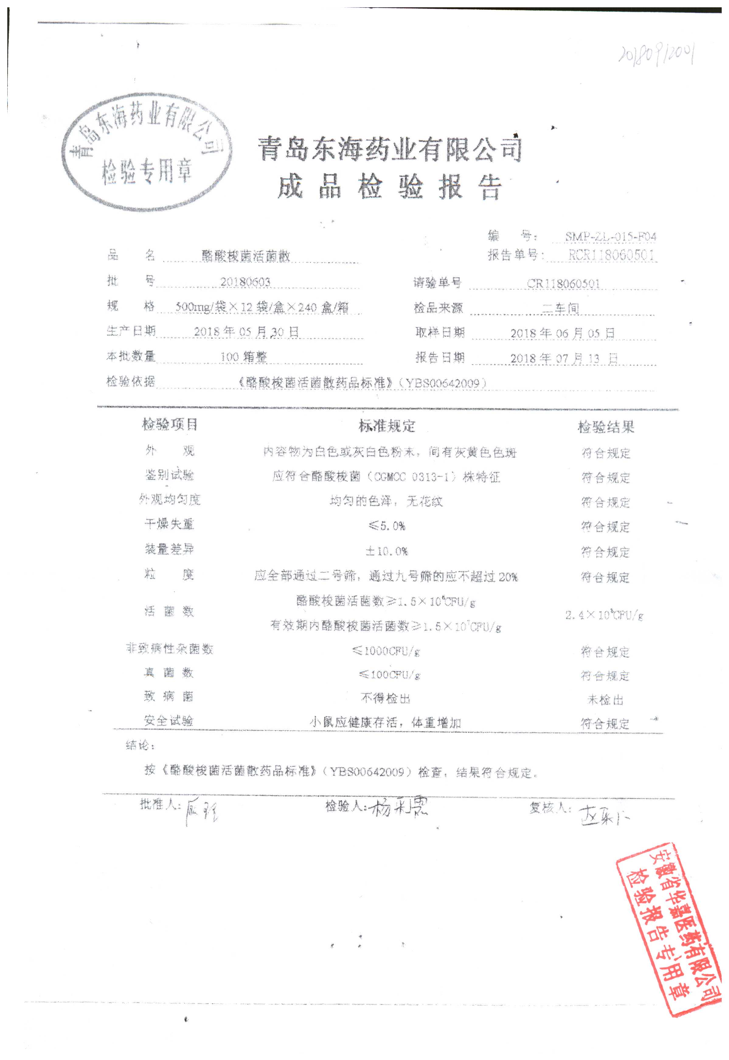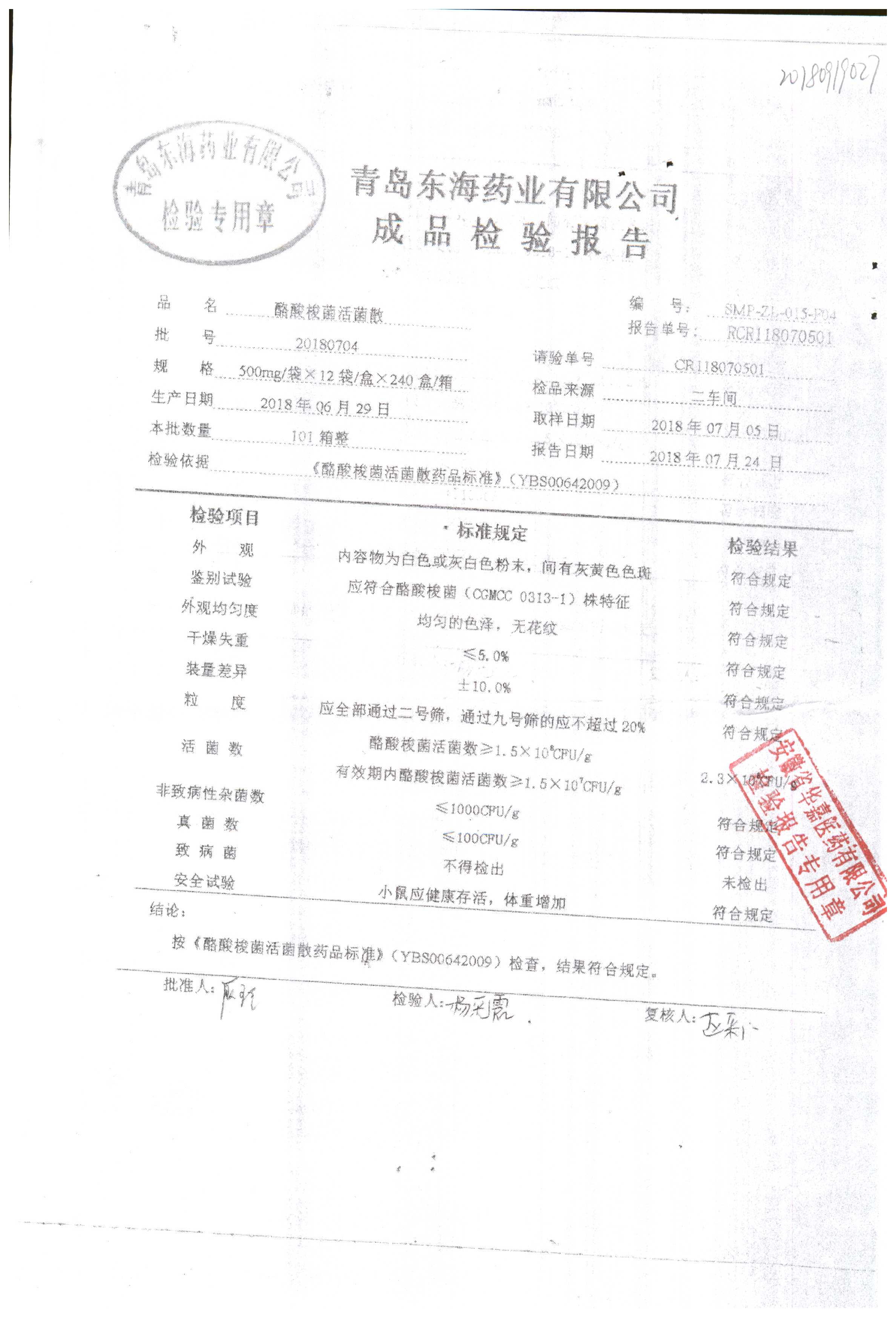 酪酸梭菌活菌散 | 500mg*12袋 | 20180704 | 查看详情 |
