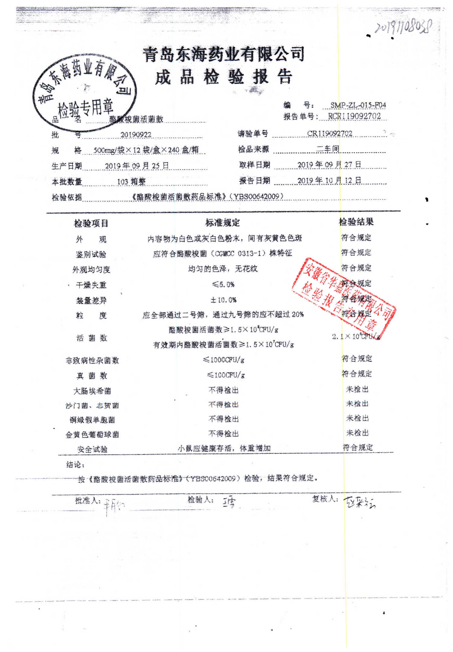 酪酸梭菌活菌散 | 500mg*12袋 | 20190922 | 查看详情 |