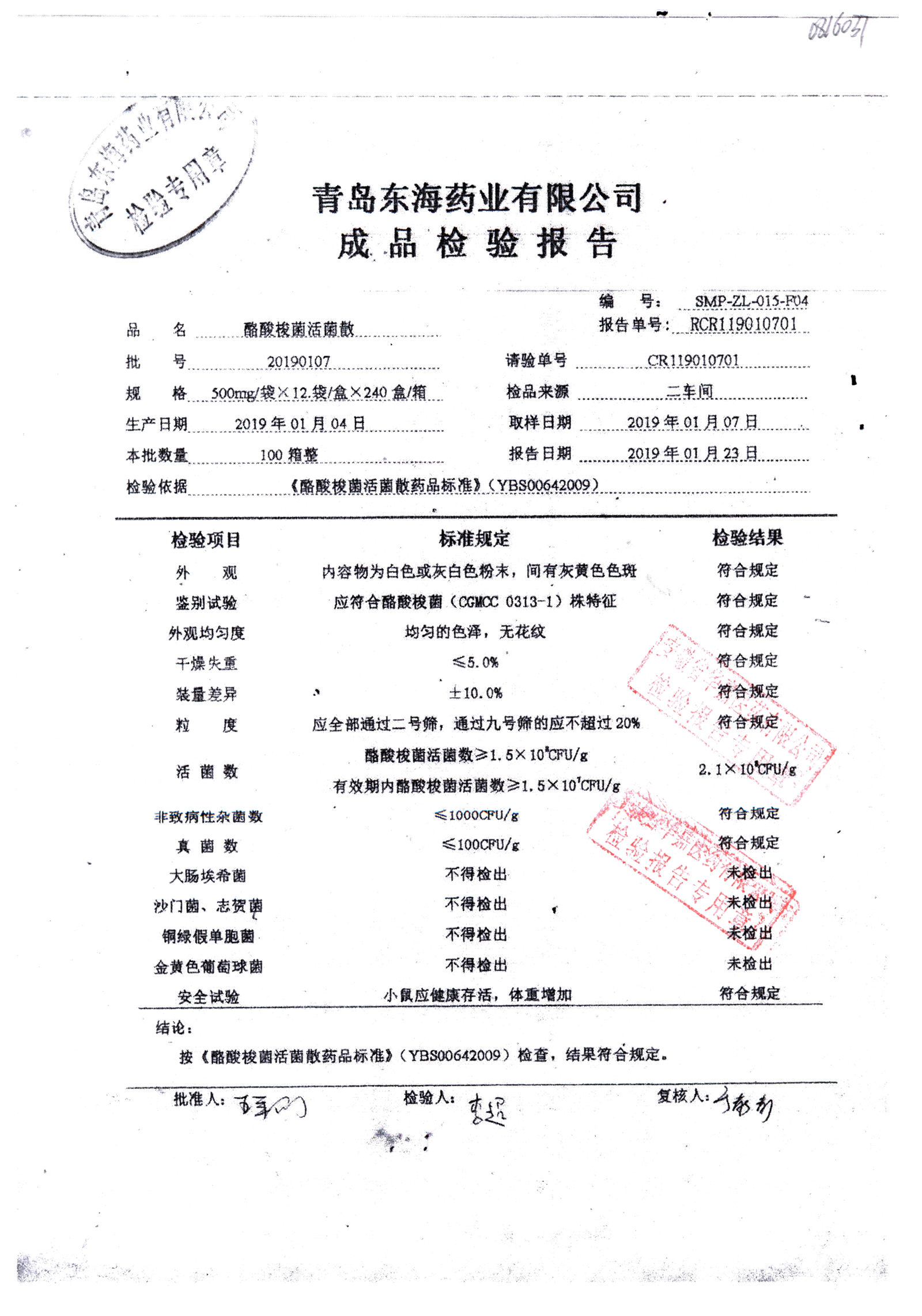 酪酸梭菌活菌散 | 500mg*12袋 | 20190107 | 查看详情 |