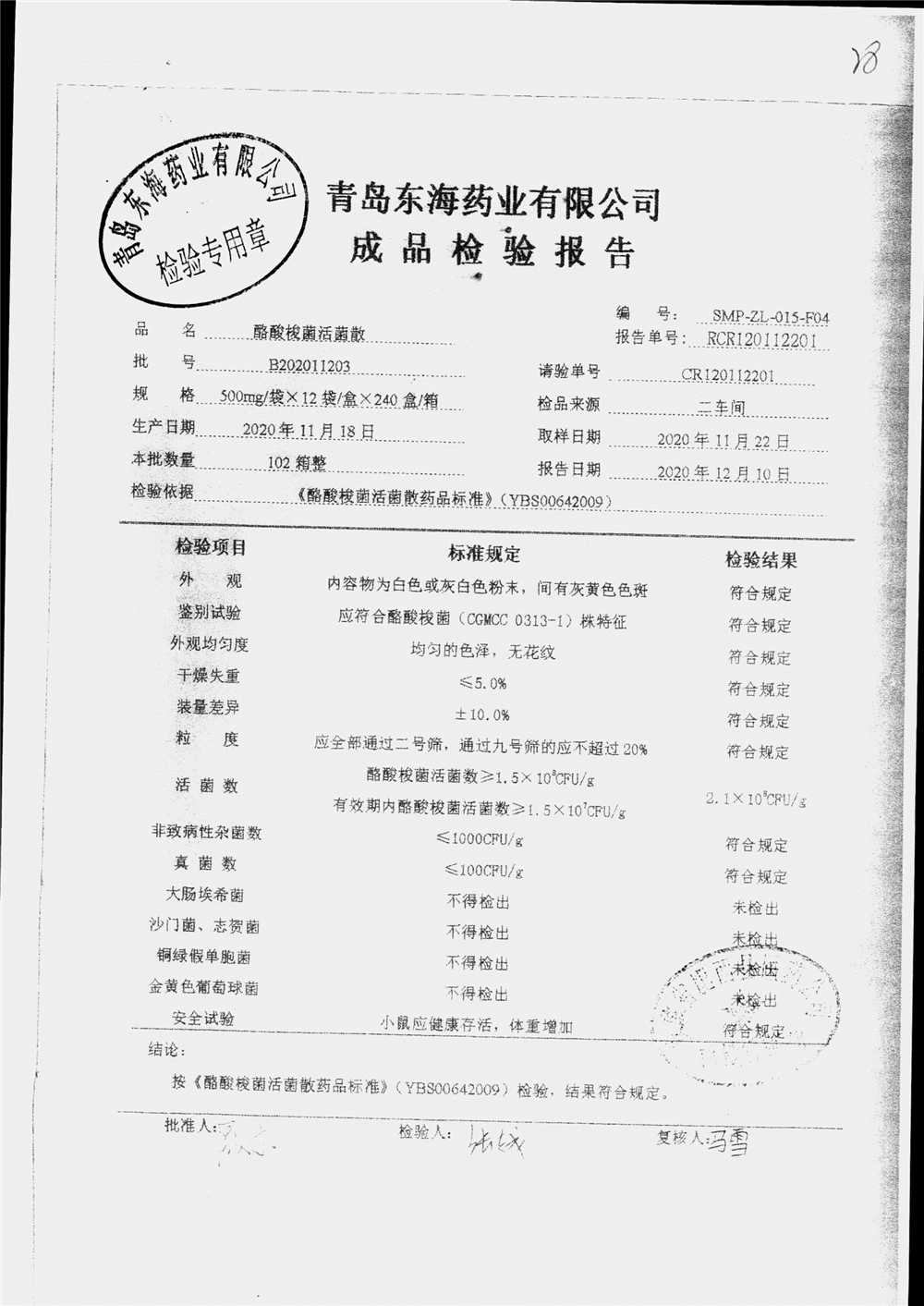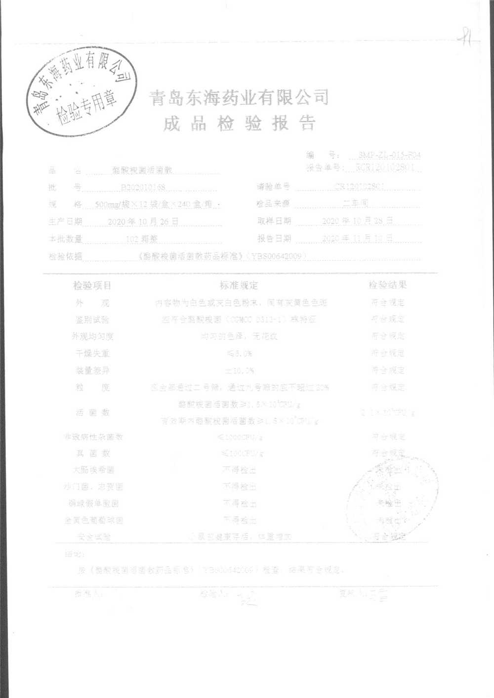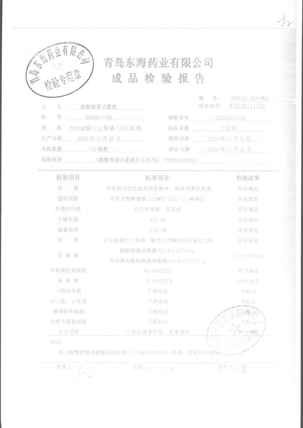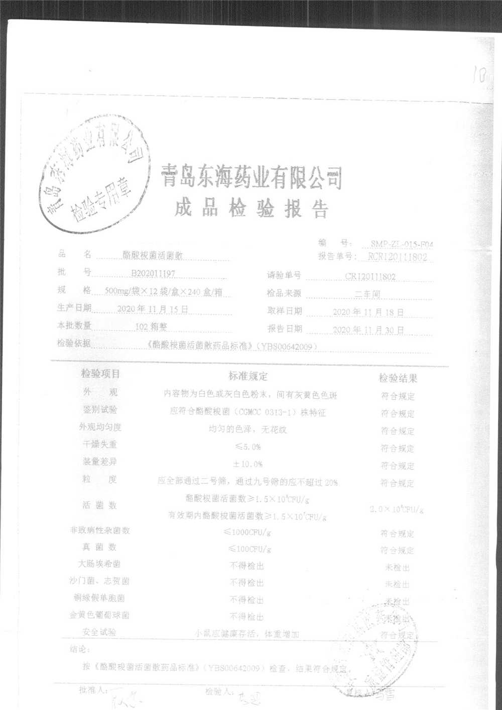 酪酸梭菌活菌散 | 500mg*12袋 | B202011203 | 查看详情 |