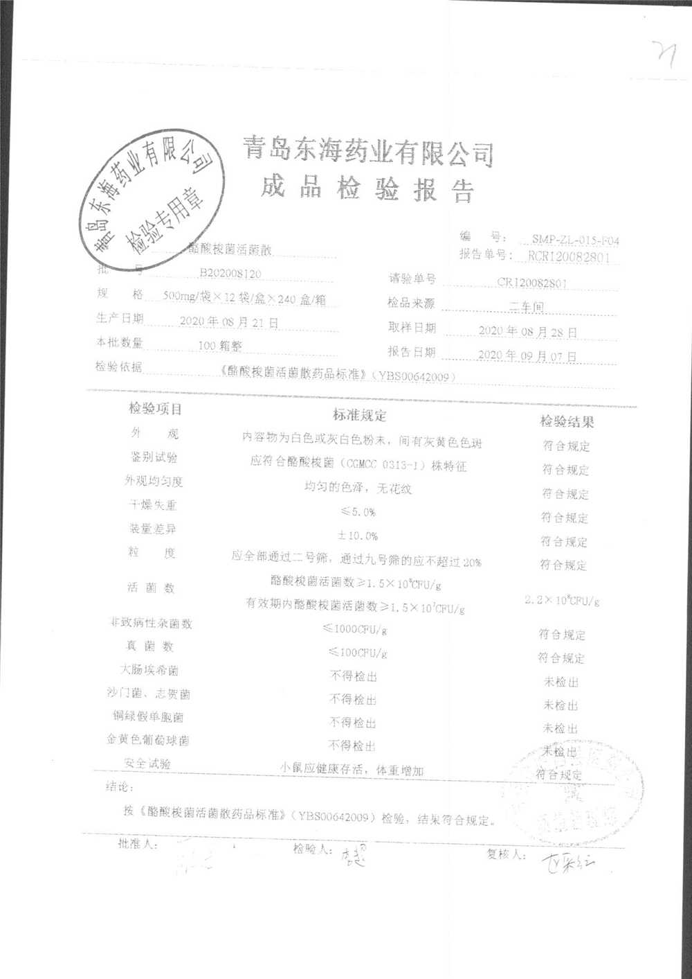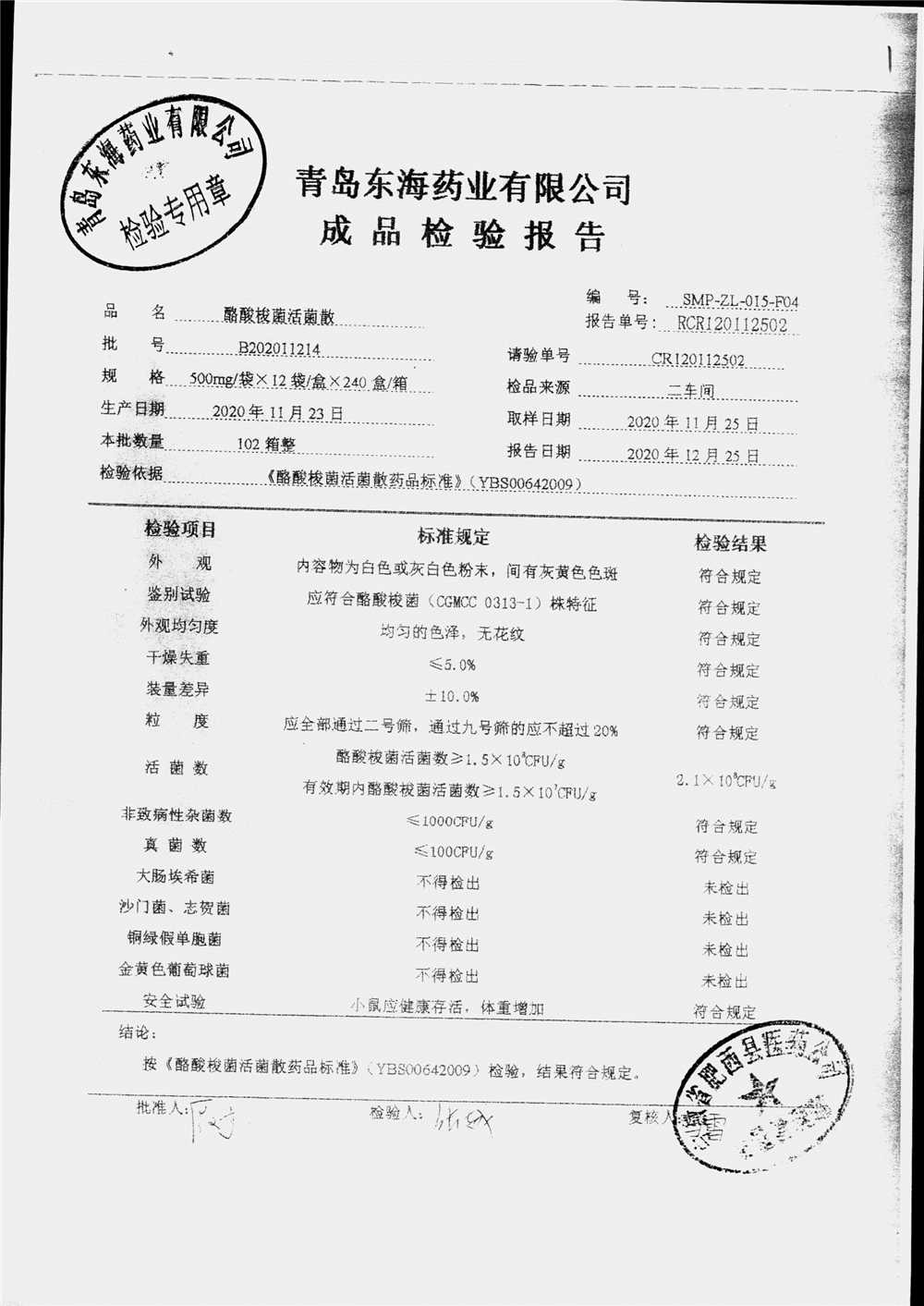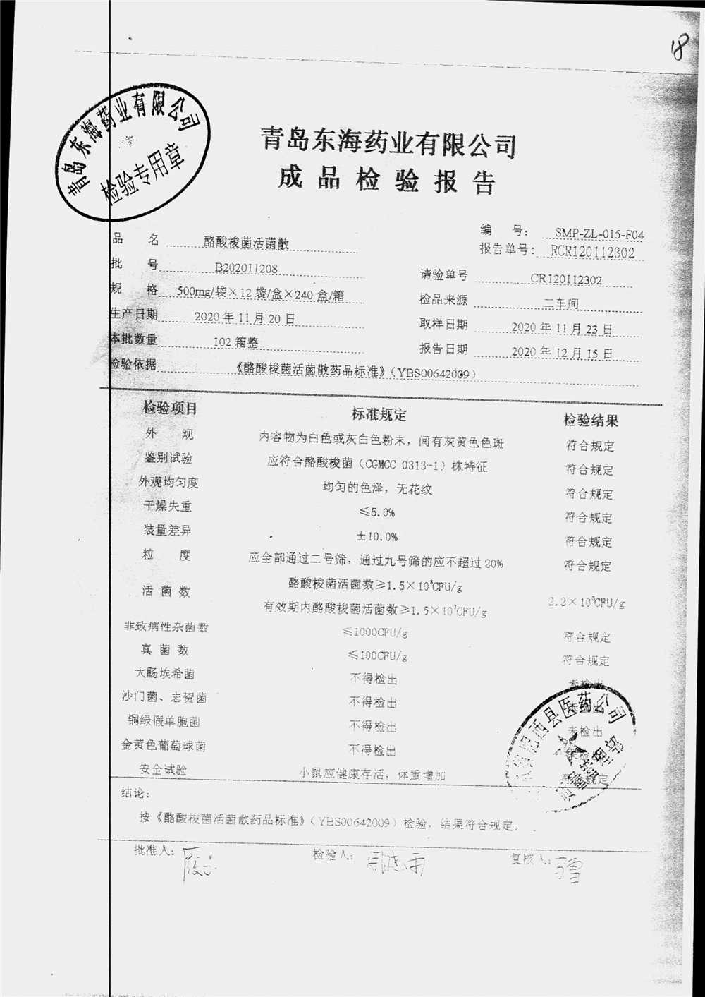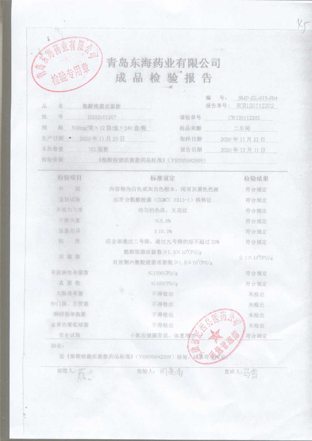 酪酸梭菌活菌散 | 500mg*12袋 | B202011203 | 查看详情 |