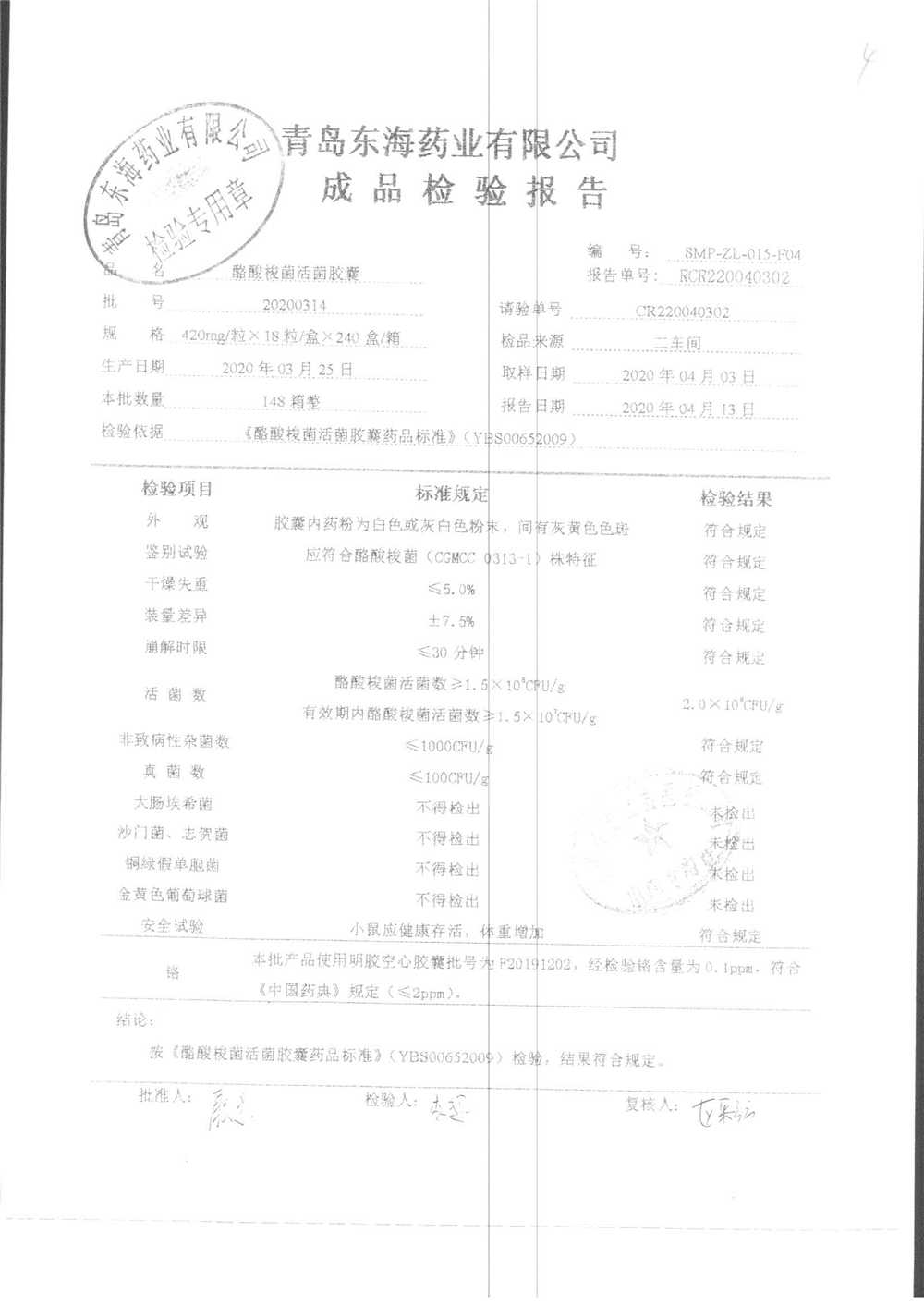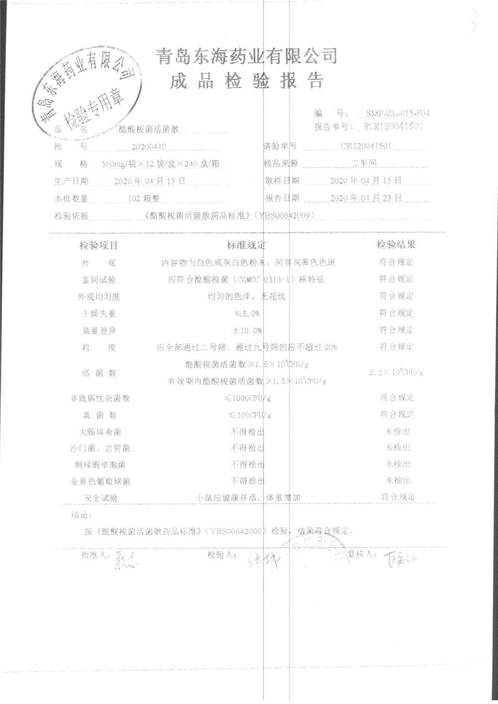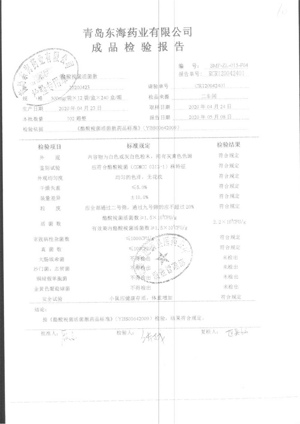酪酸梭菌活菌散 | 500mg*12袋 | 20200410 | 查看详情 |