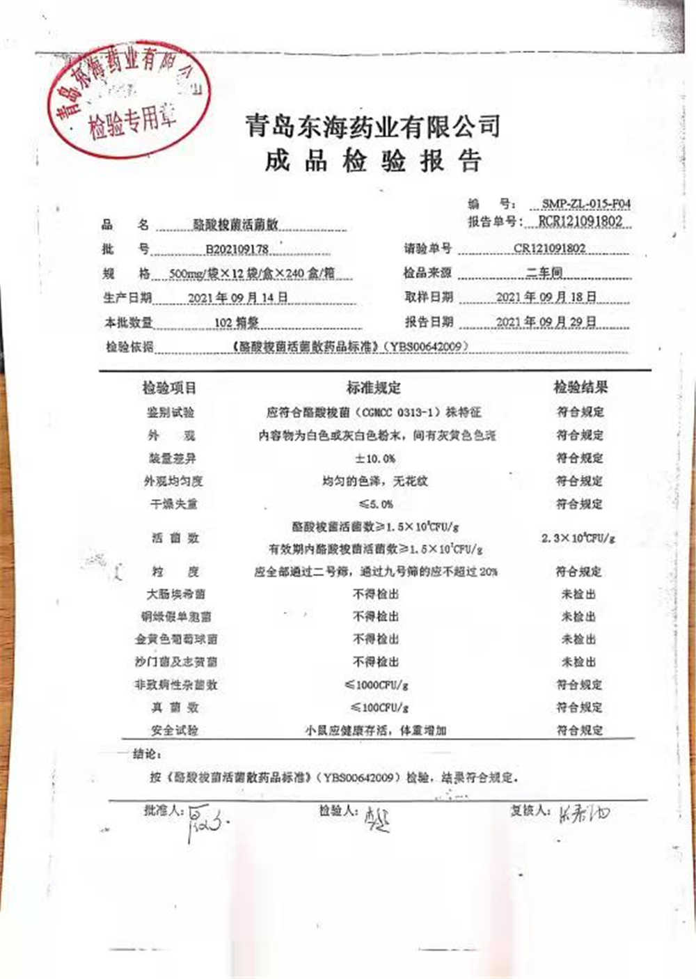 酪酸梭菌活菌散 | 500mg*12袋 | B202109178 | 查看详情 |