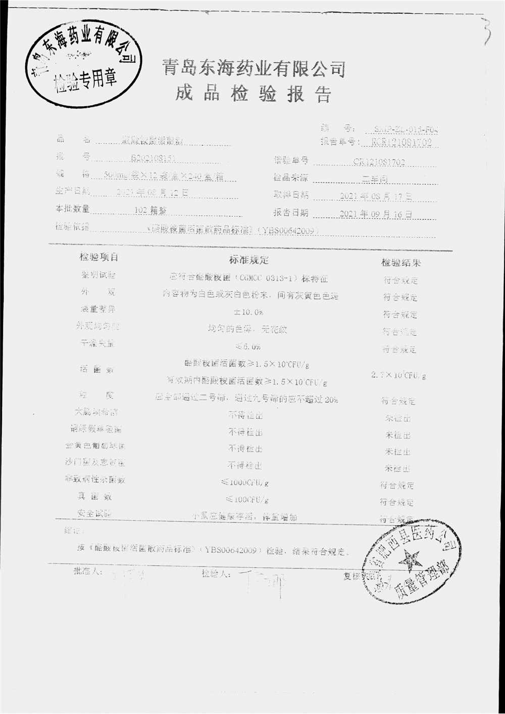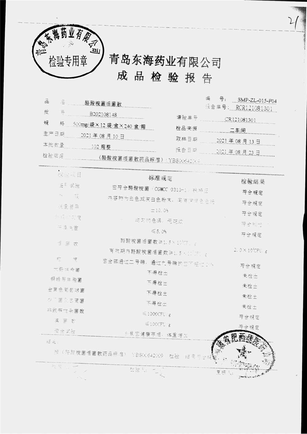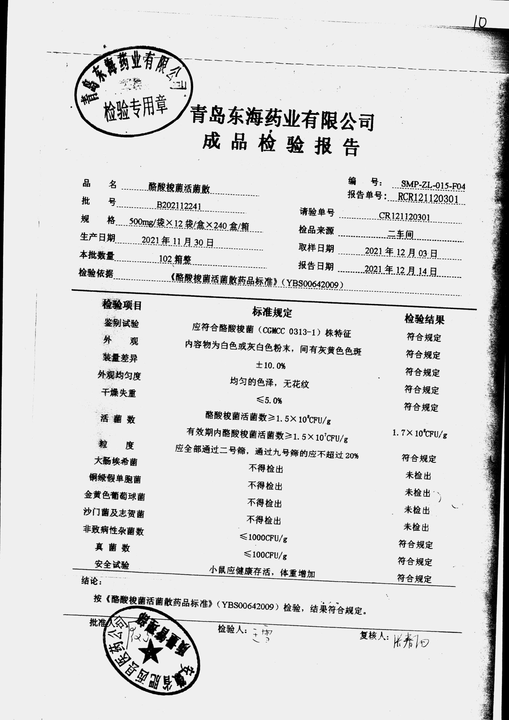 酪酸梭菌活菌散 | 500mg*12袋 | B202108151 | 查看详情 |