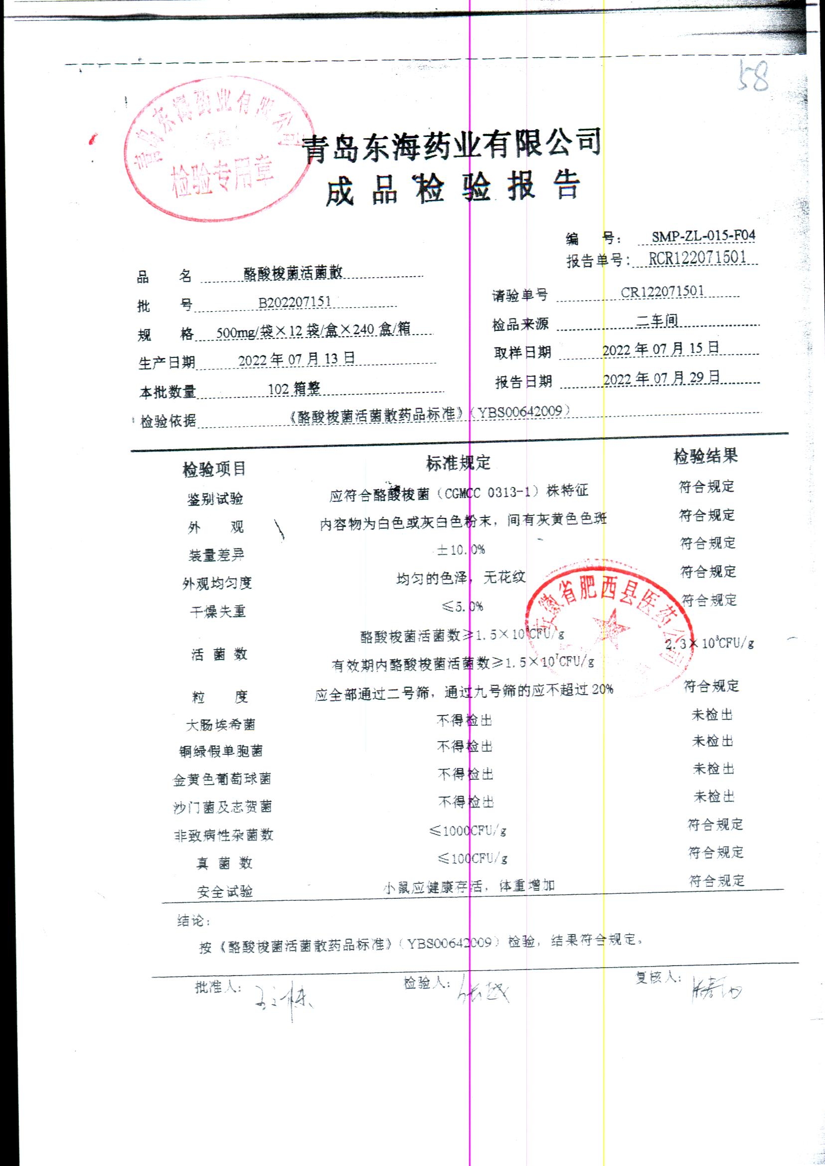 酪酸梭菌活菌散 | 500mg*12袋 | B202207151 | 查看详情 |