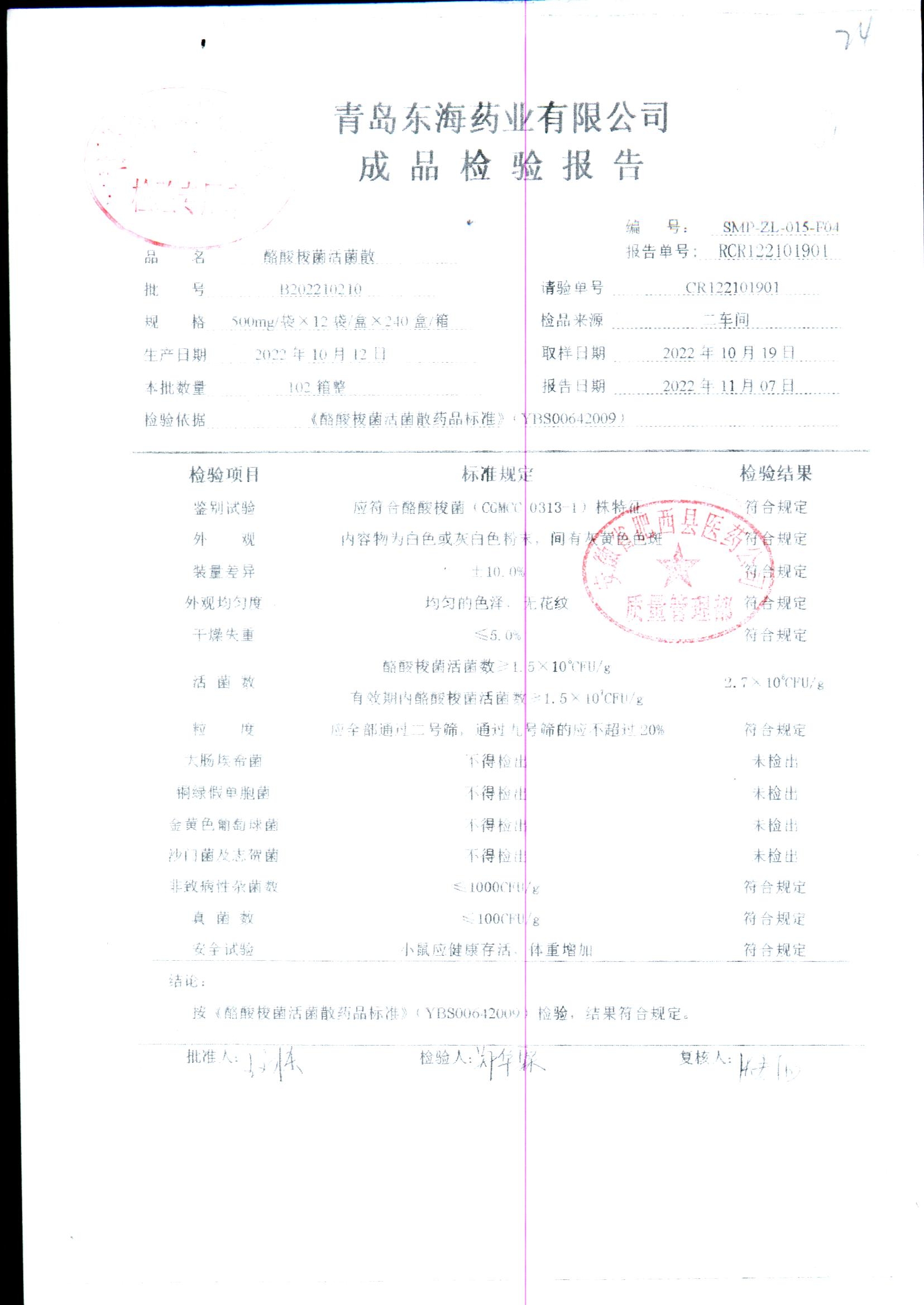 酪酸梭菌活菌散 | 500mg*12袋 | B202210210 | 查看详情 |