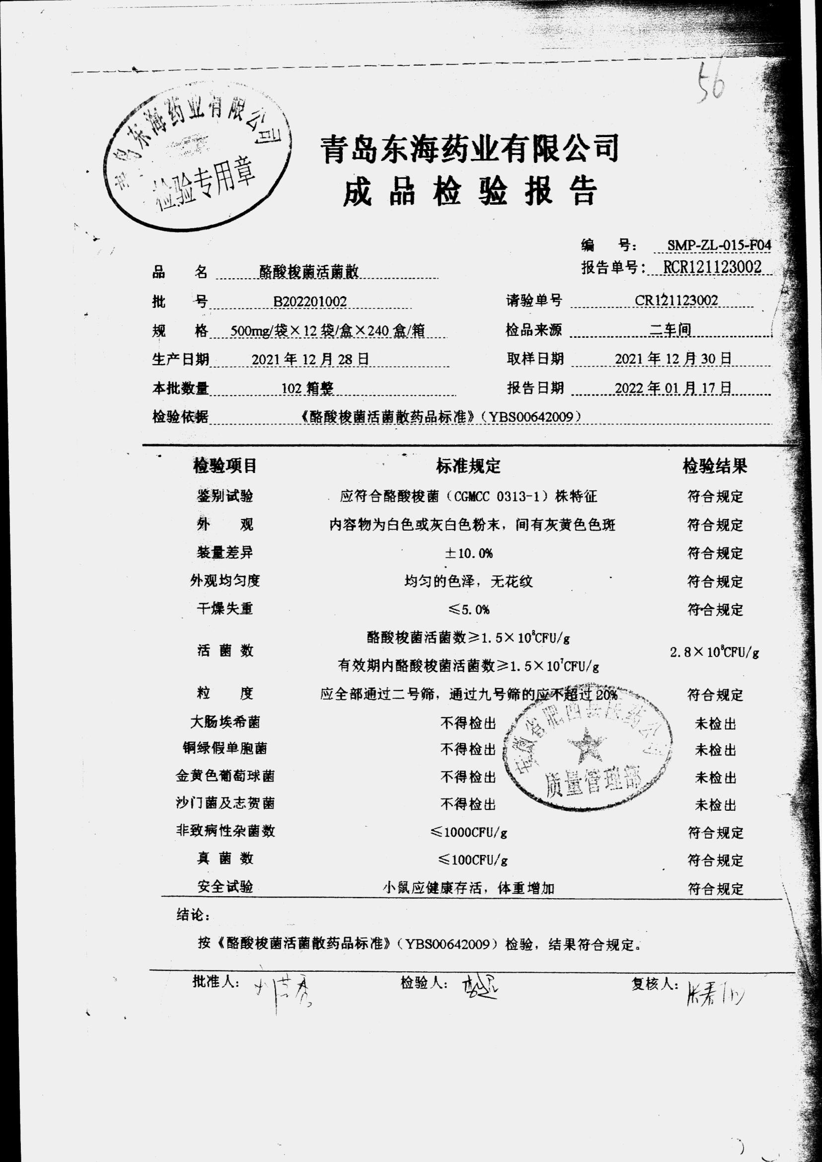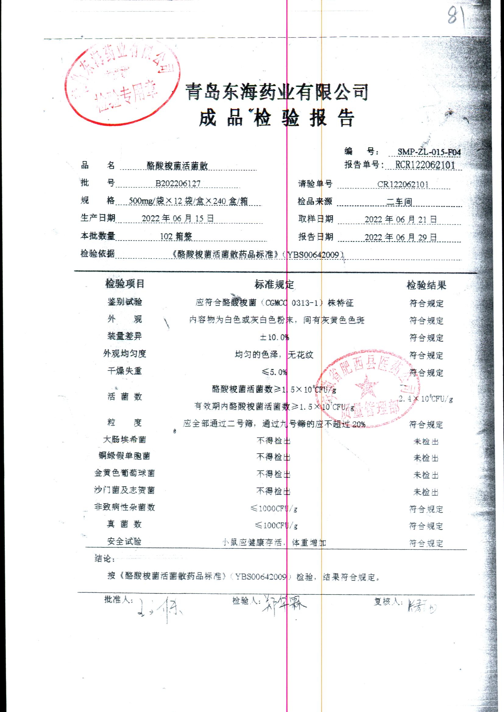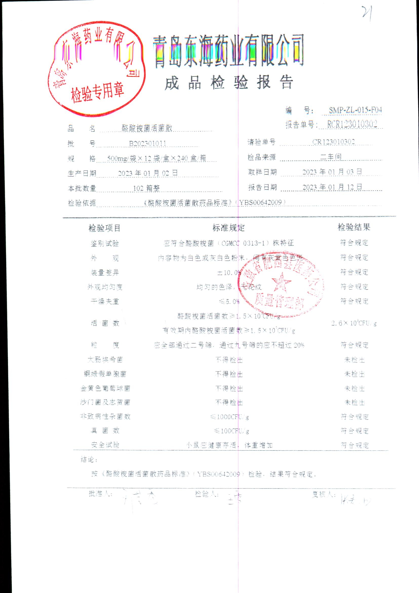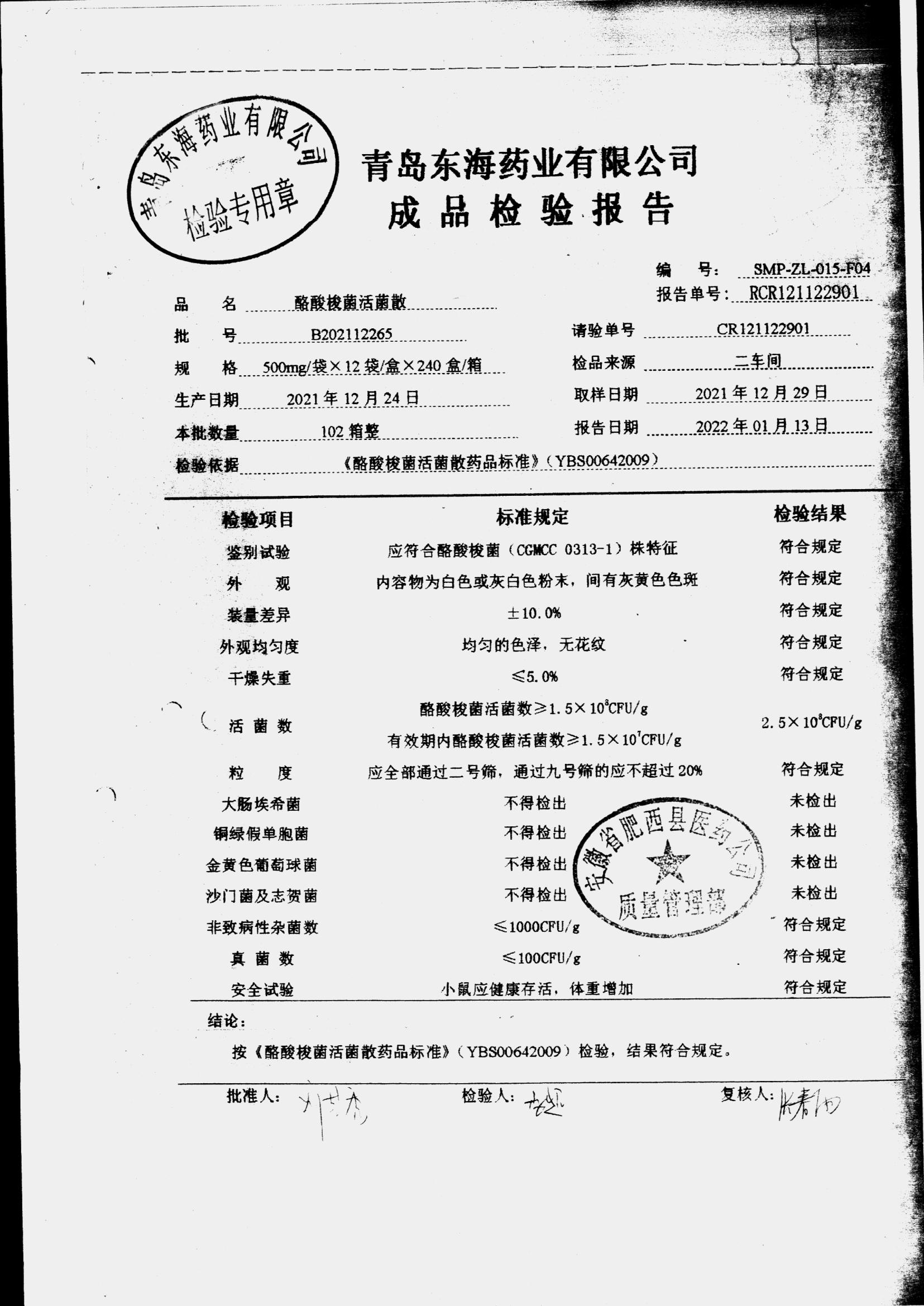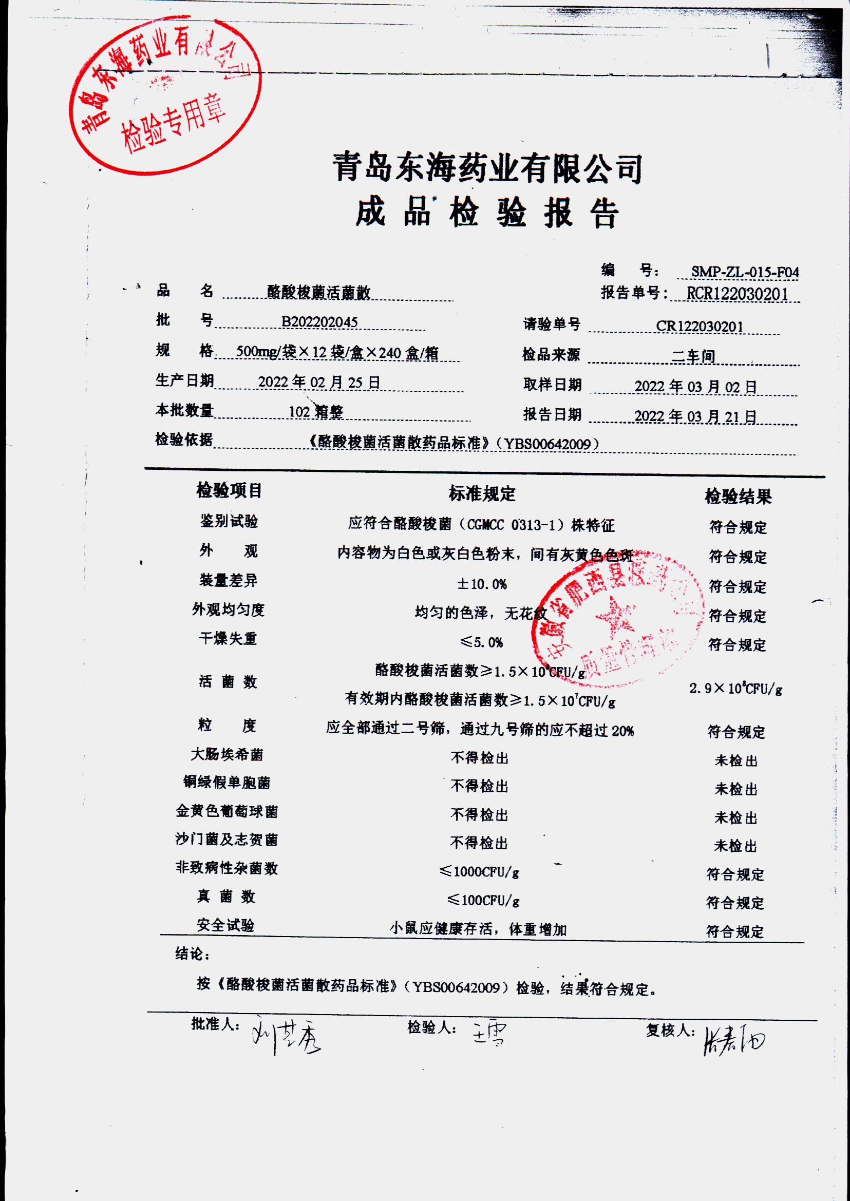 酪酸梭菌活菌散 | 500mg*12袋 | B202201002 | 查看详情 |