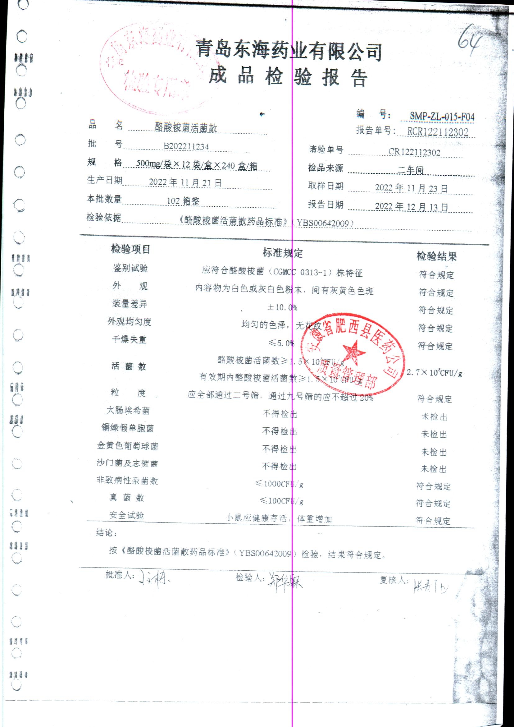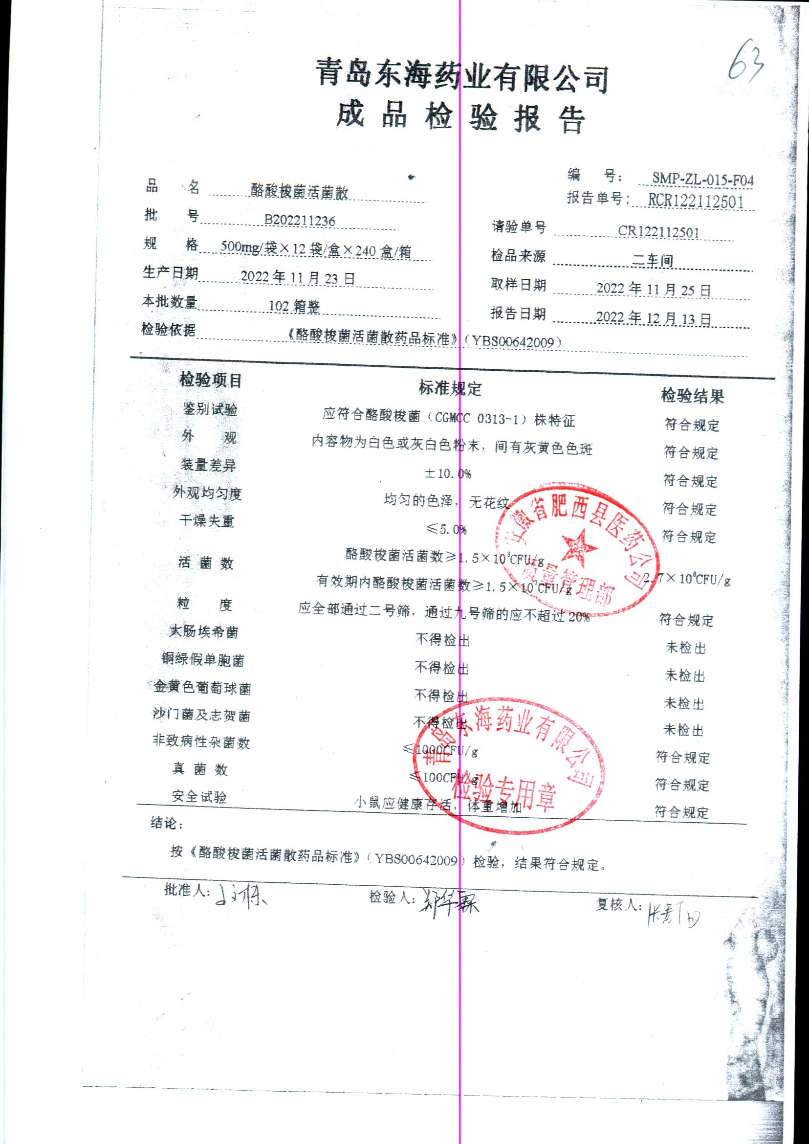 酪酸梭菌活菌散 | 500mg*12袋 | B202211234 | 查看详情 |