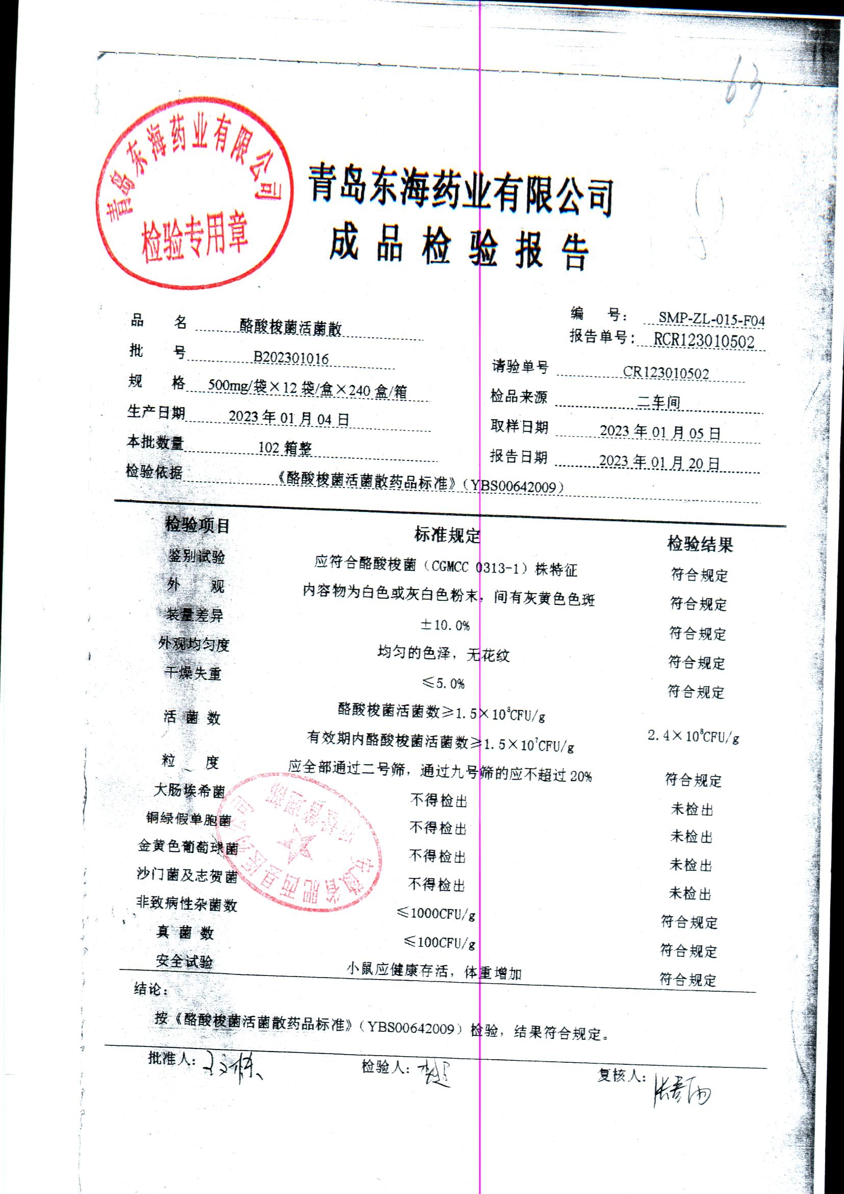 酪酸梭菌活菌散 | 500mg*12袋 | B202301016 | 查看详情 |