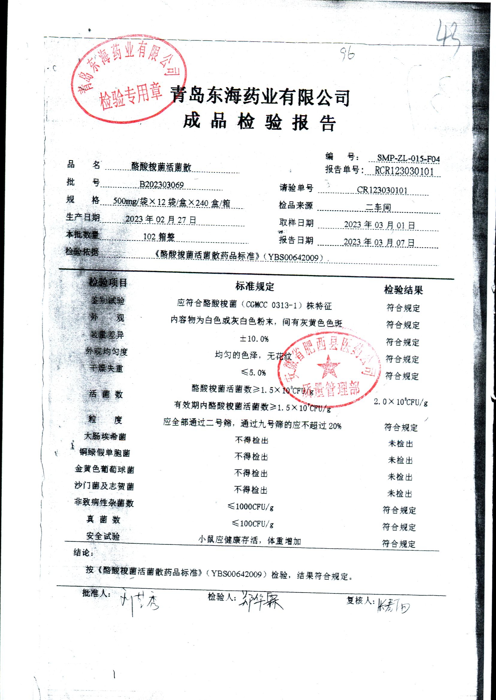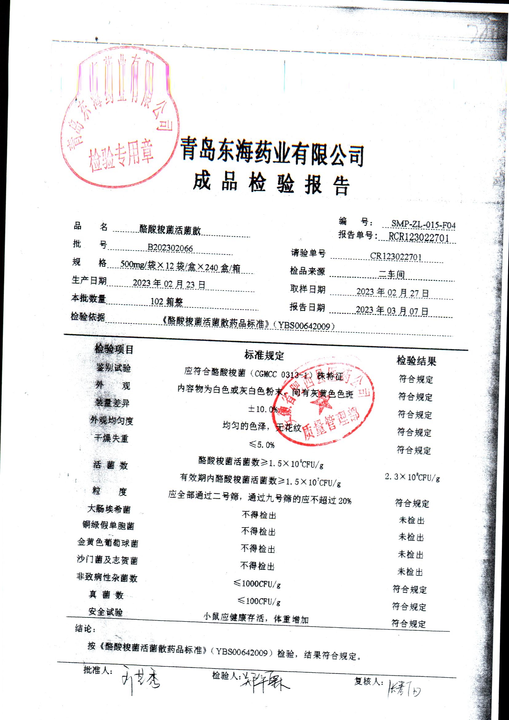 酪酸梭菌活菌散 | 500mg*12袋 | B202303069 | 查看详情 |