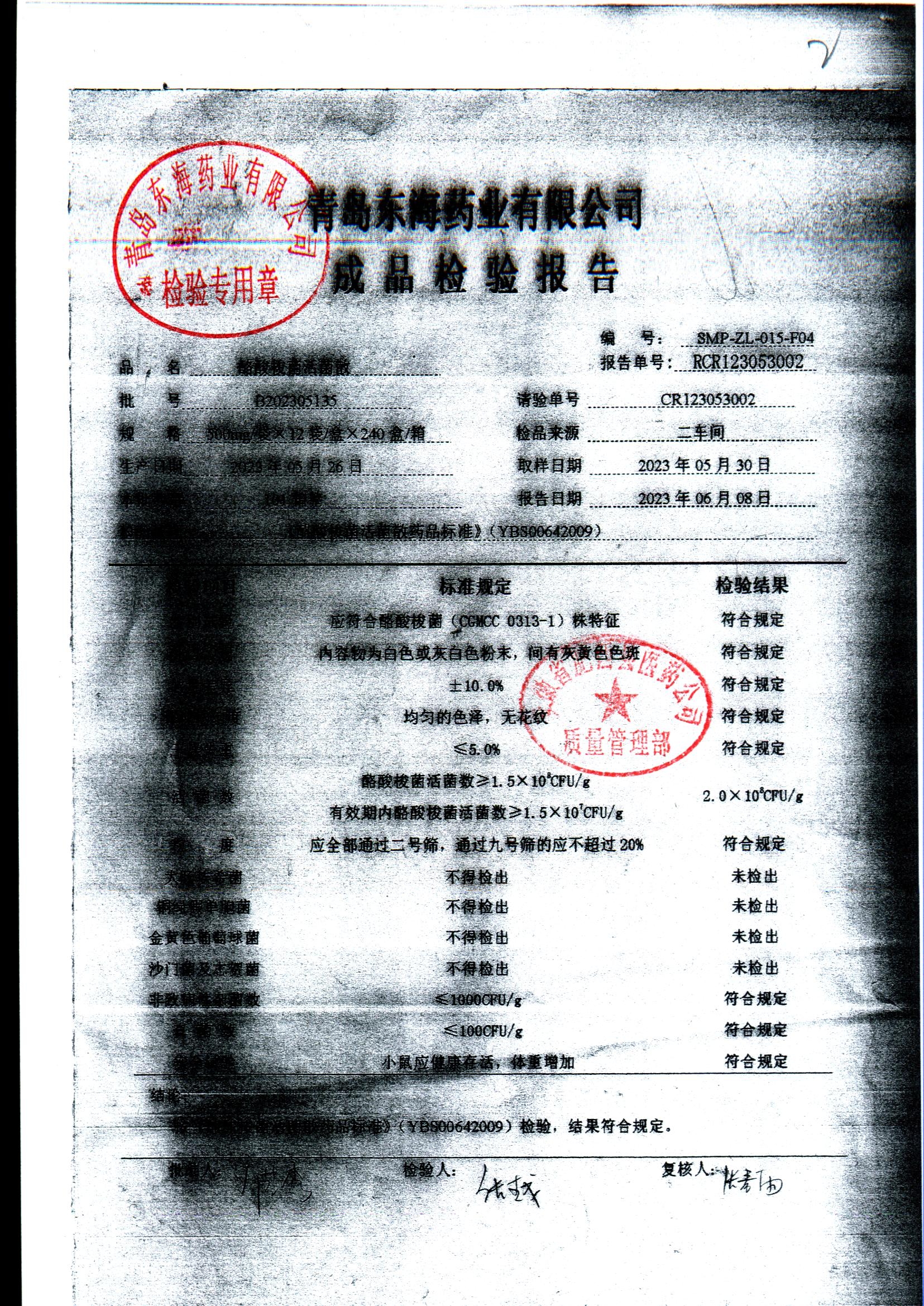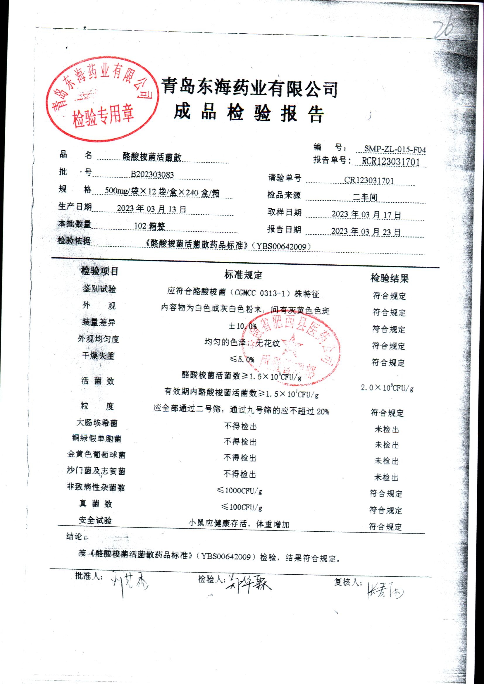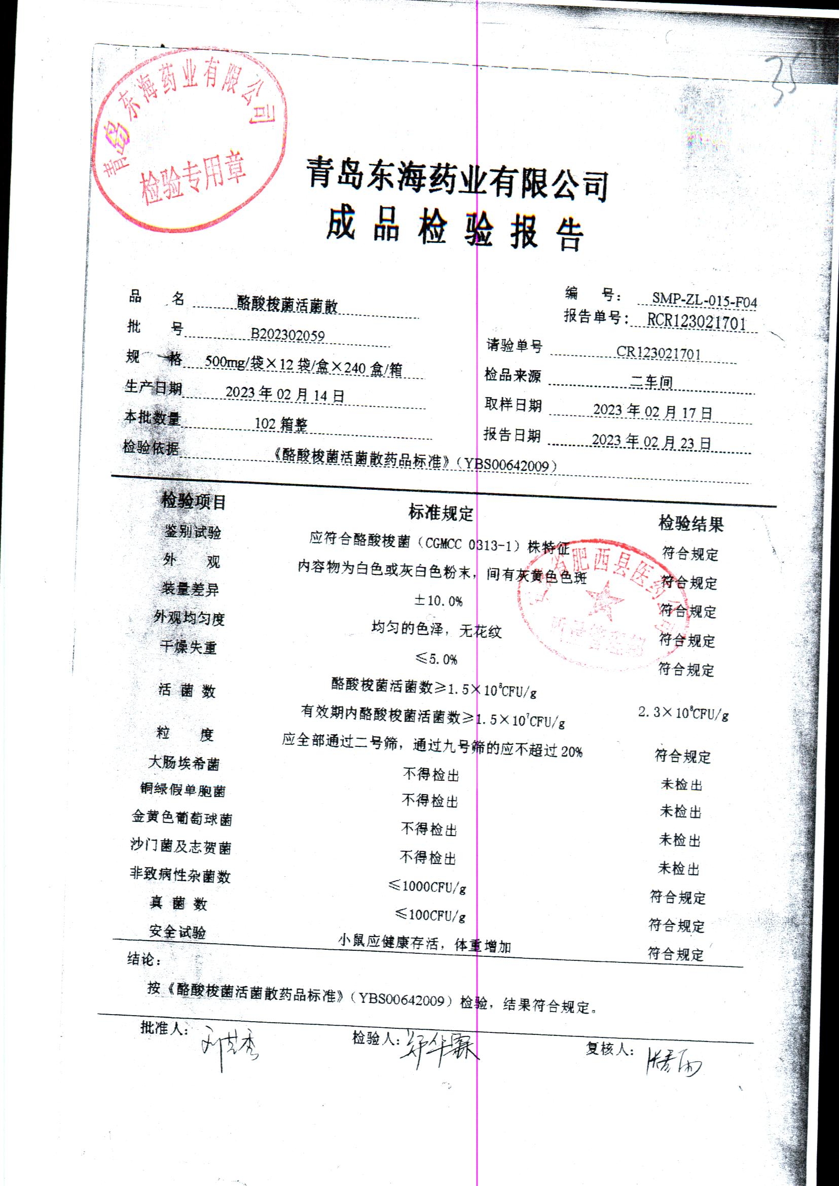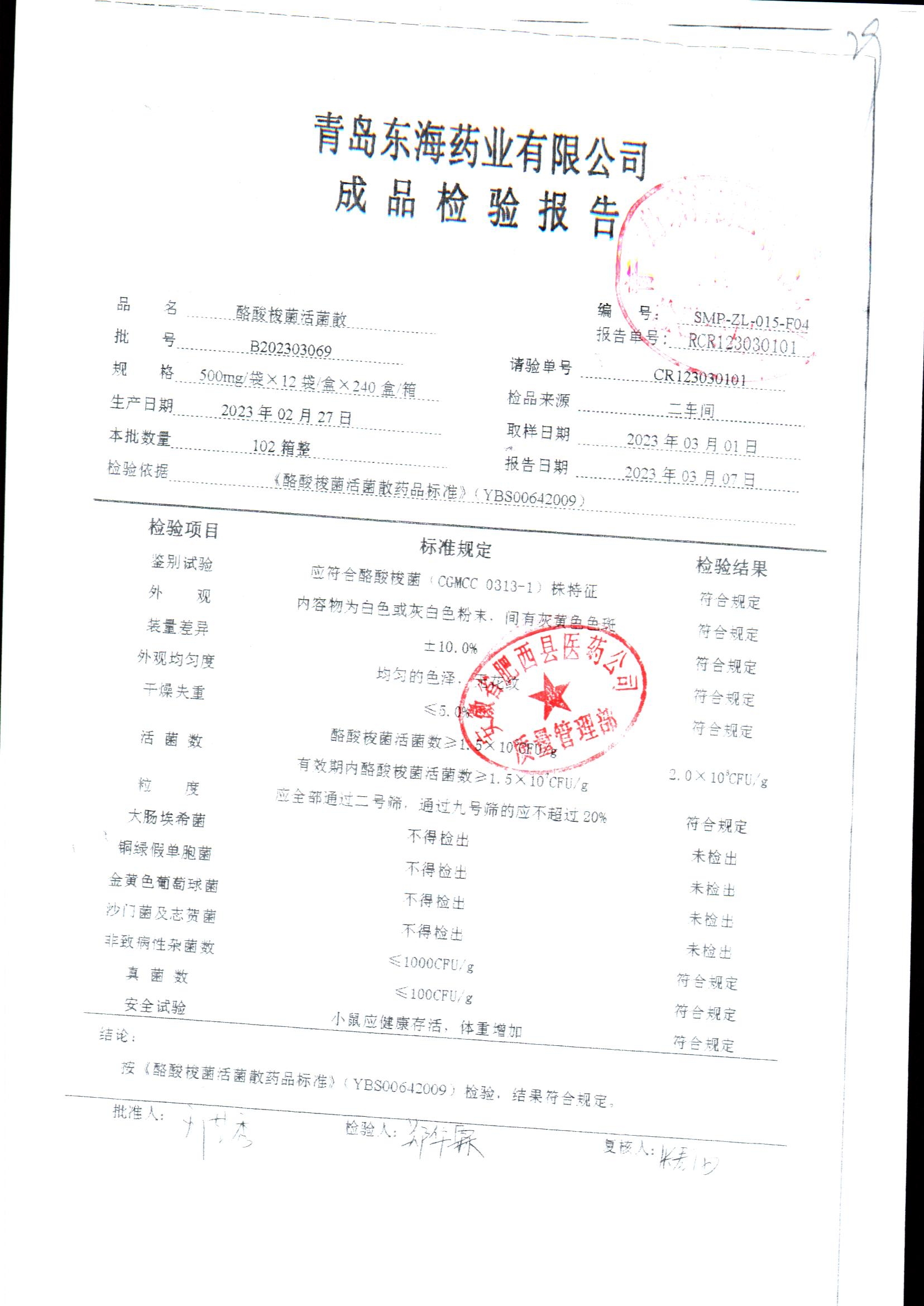 酪酸梭菌活菌散 | 500mg*12袋 | B202303083 | 查看详情 |
