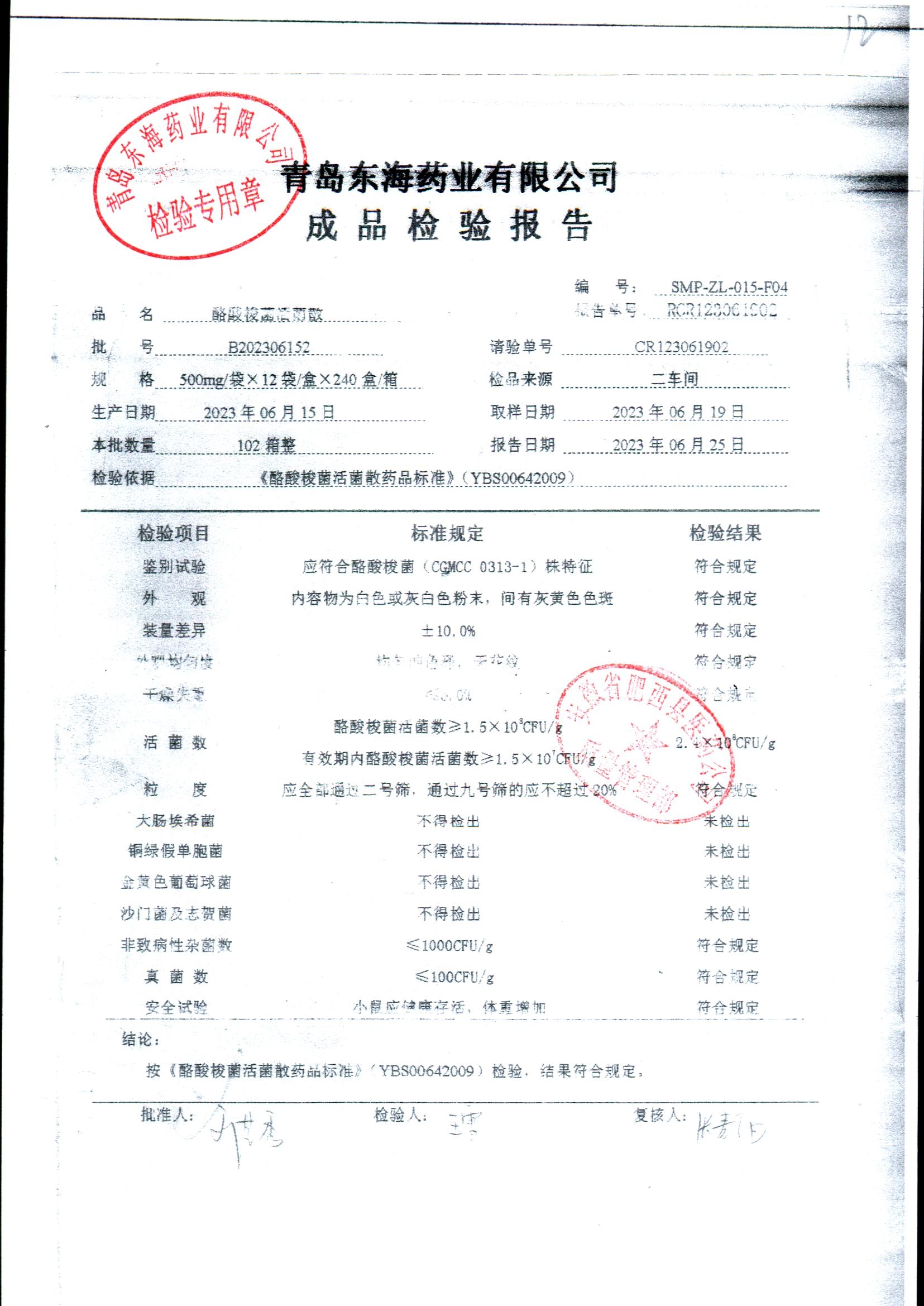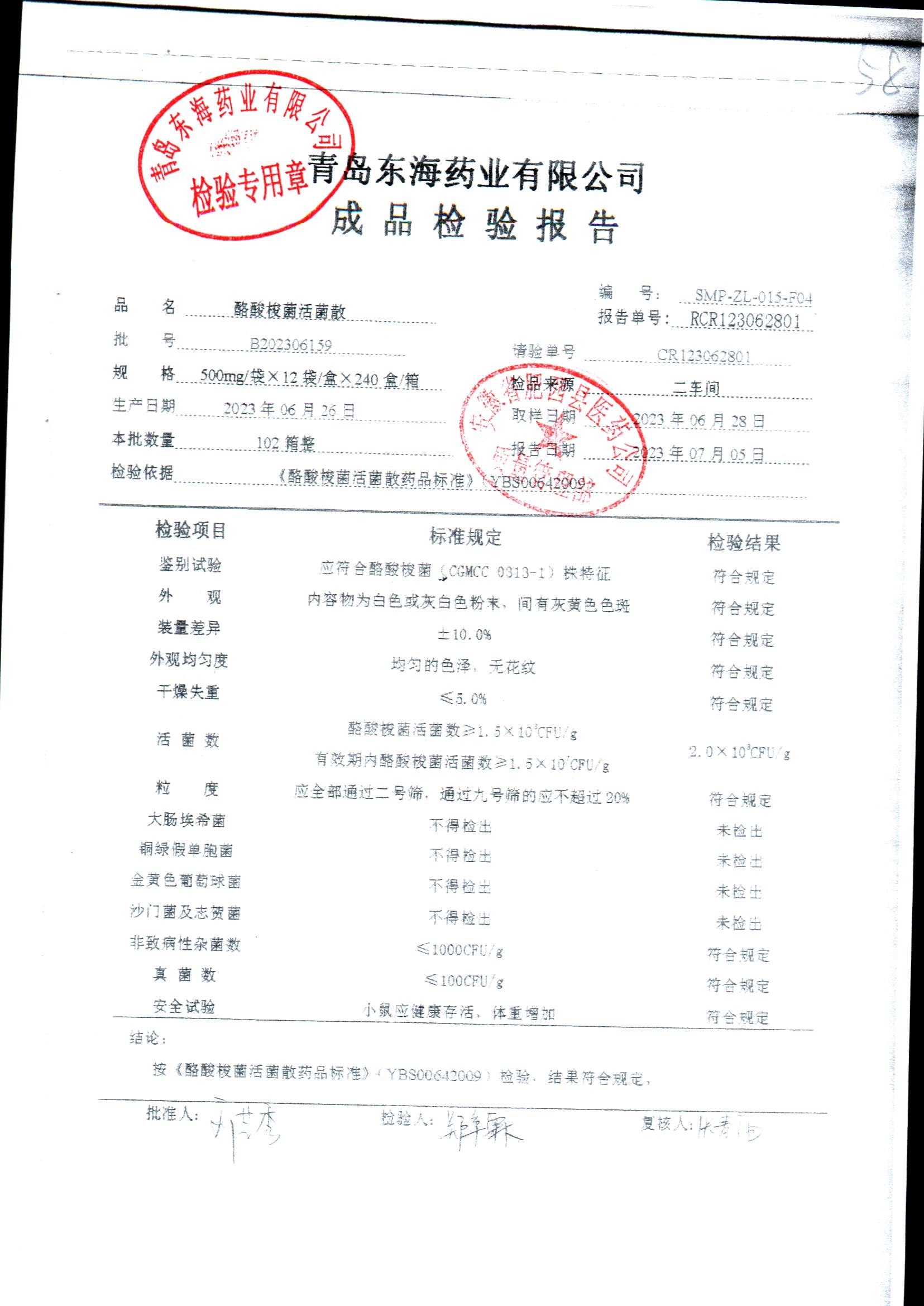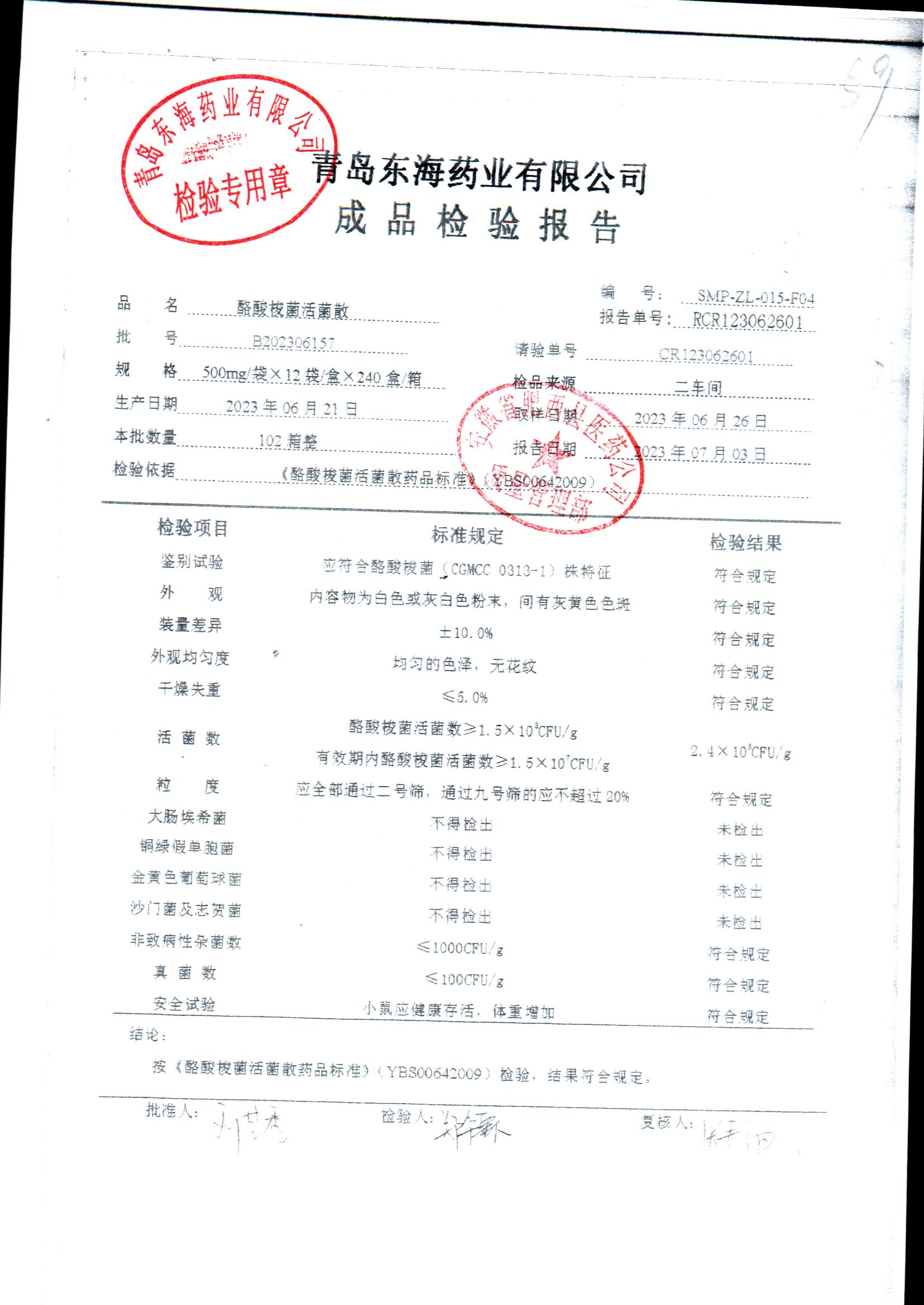 酪酸梭菌活菌散 | 500mg*12袋 | B202306159 | 查看详情 |