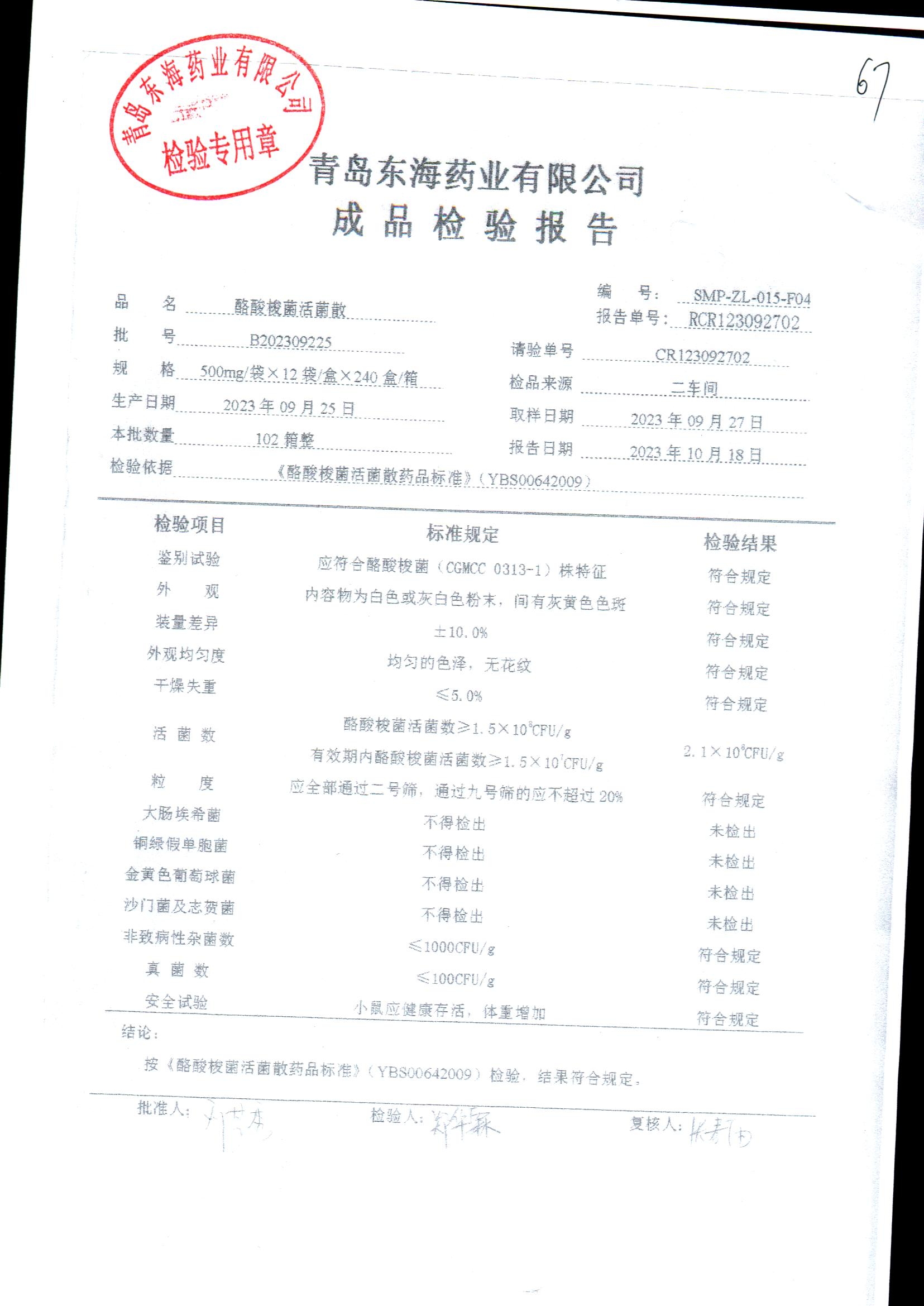 酪酸梭菌活菌散 | 500mg*12袋 | B202309225 | 查看详情 |