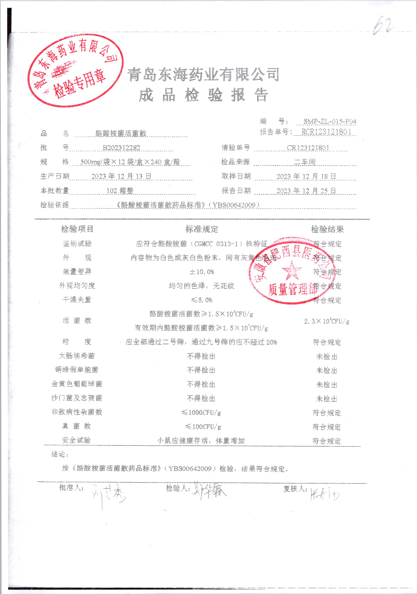 酪酸梭菌活菌散 | 500mg*12袋 | B202312282 | 查看详情 |