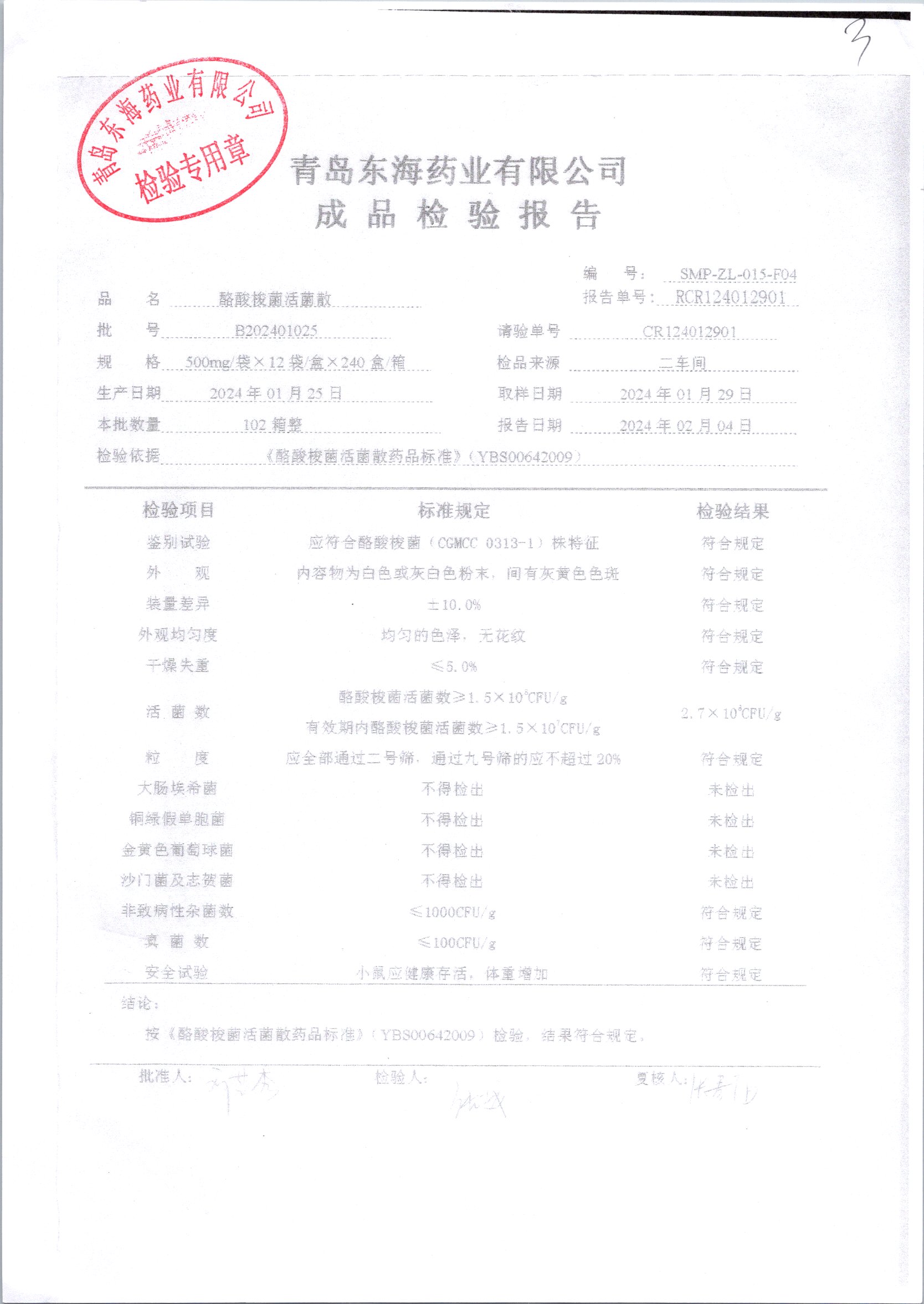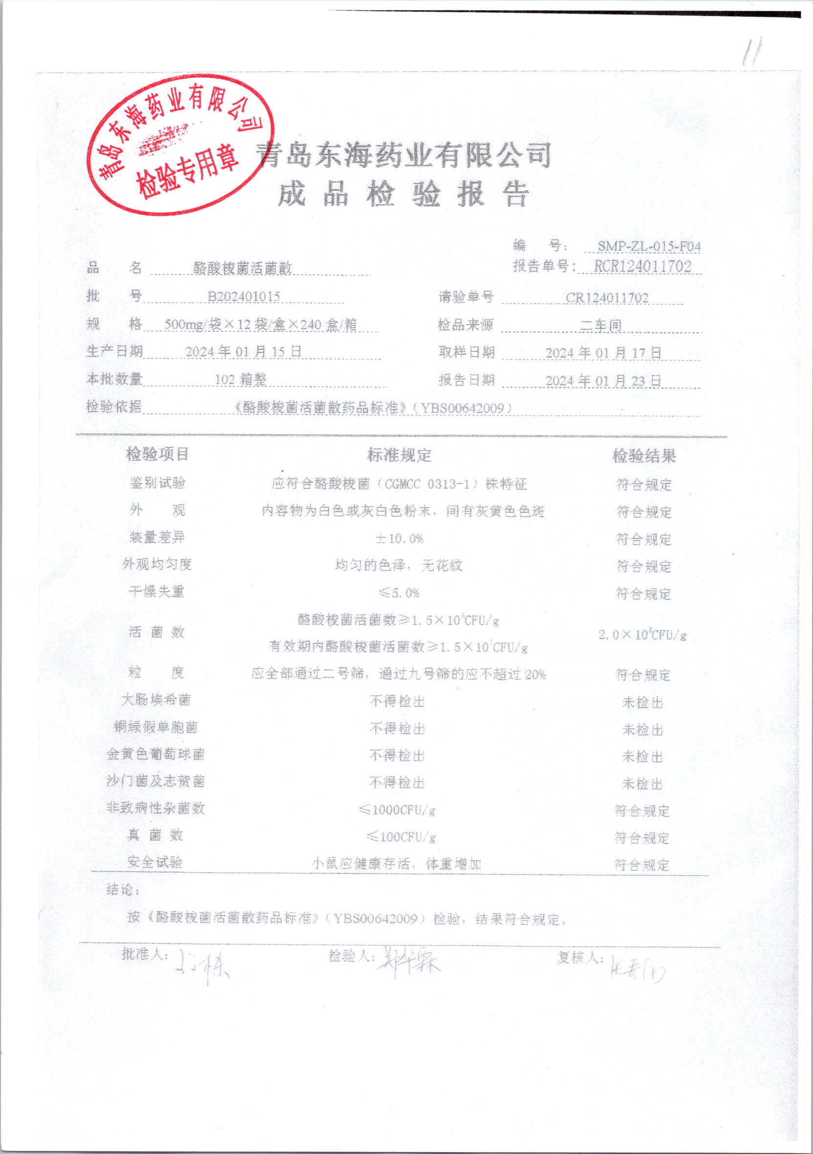 酪酸梭菌活菌散 | 500mg*12袋 | B202401015 | 查看详情 |