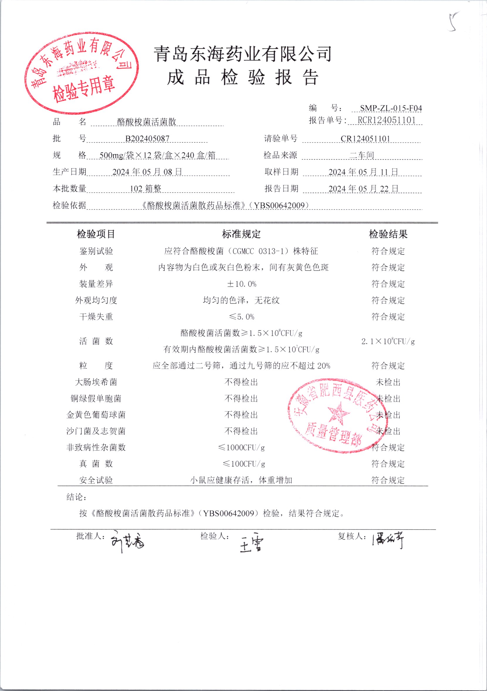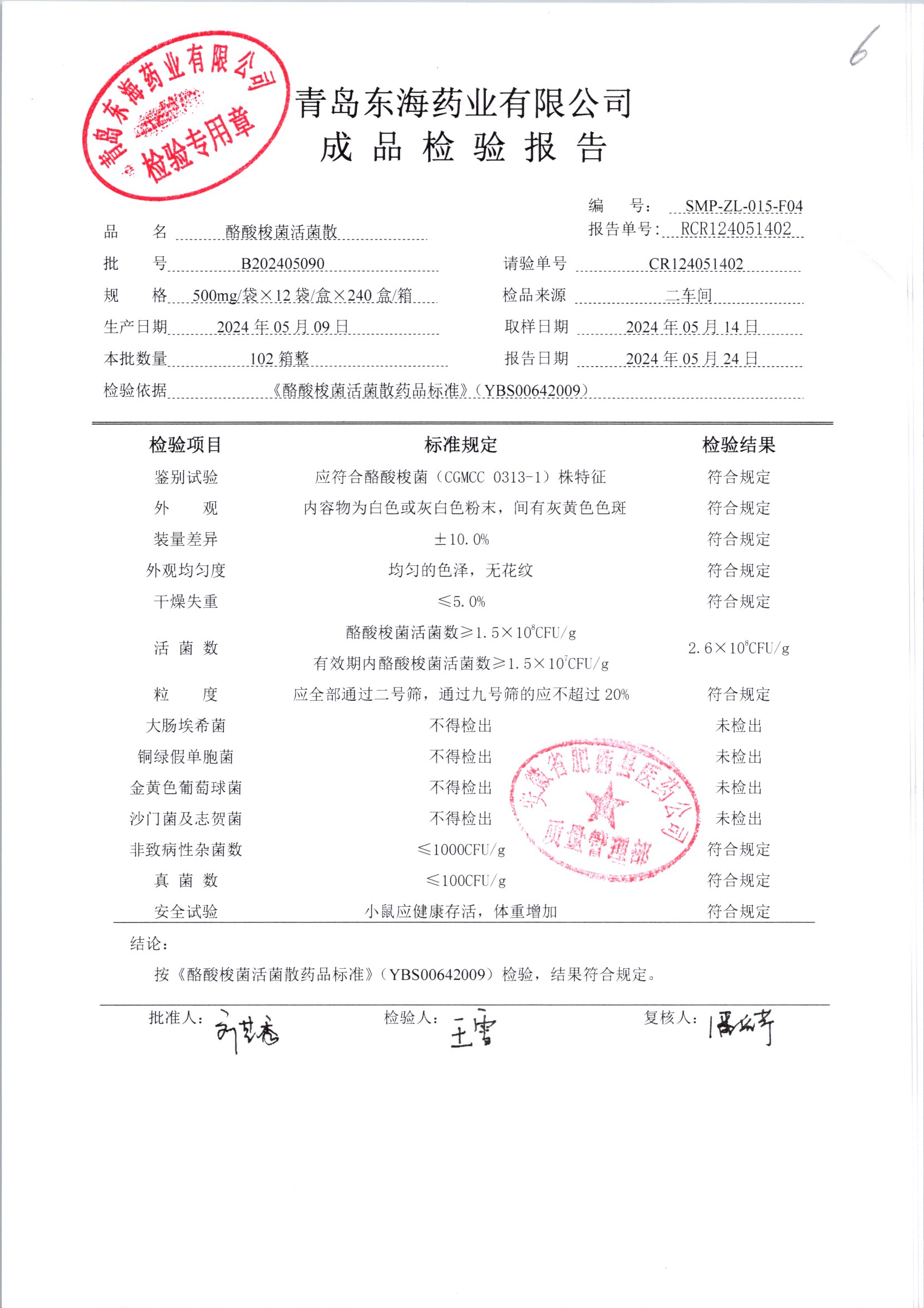 酪酸梭菌活菌散 | 500mg*12袋 | B202405090 | 查看详情 |