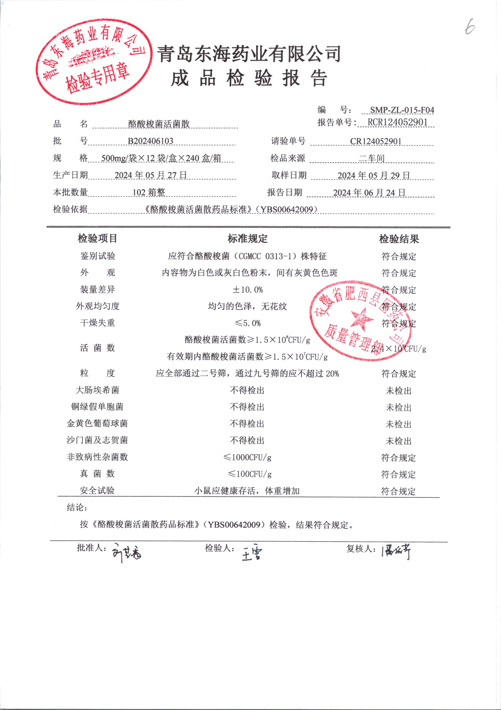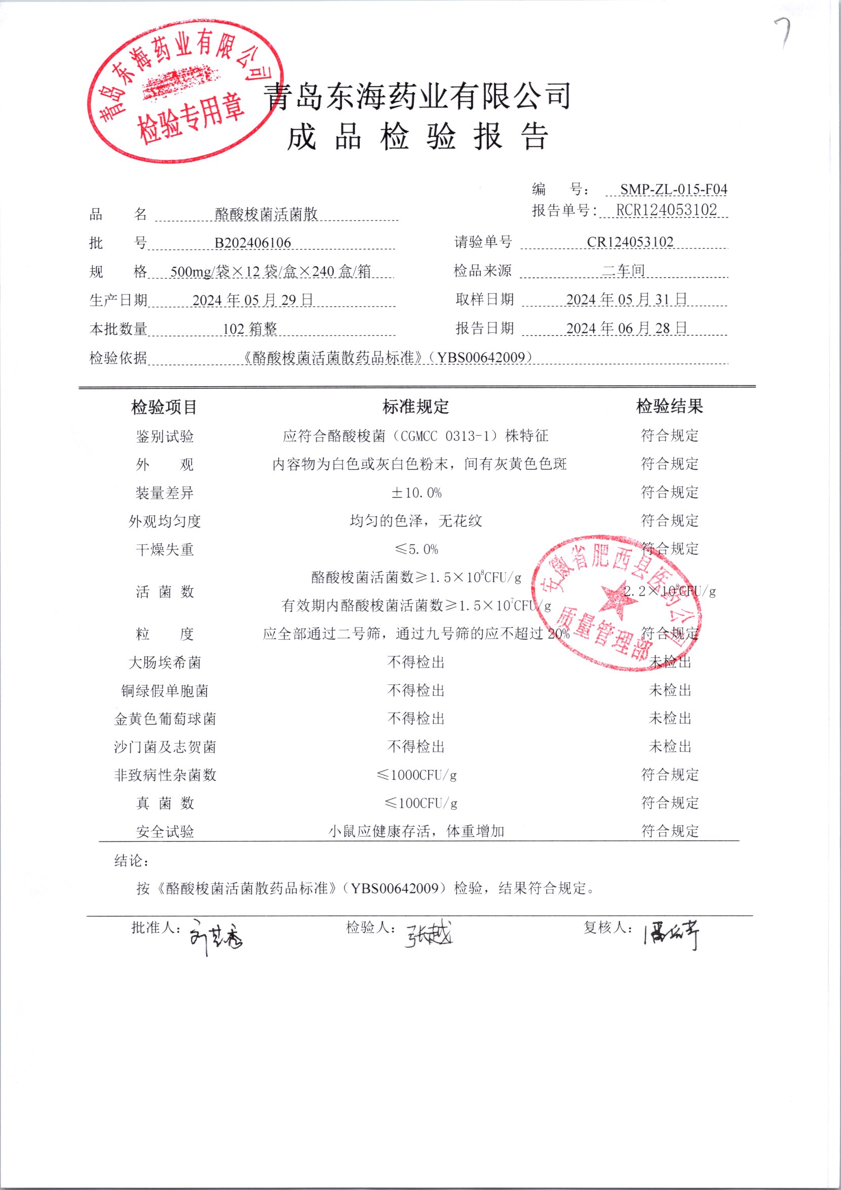 酪酸梭菌活菌散 | 500mg*12袋 | B202406103 | 查看详情 |
