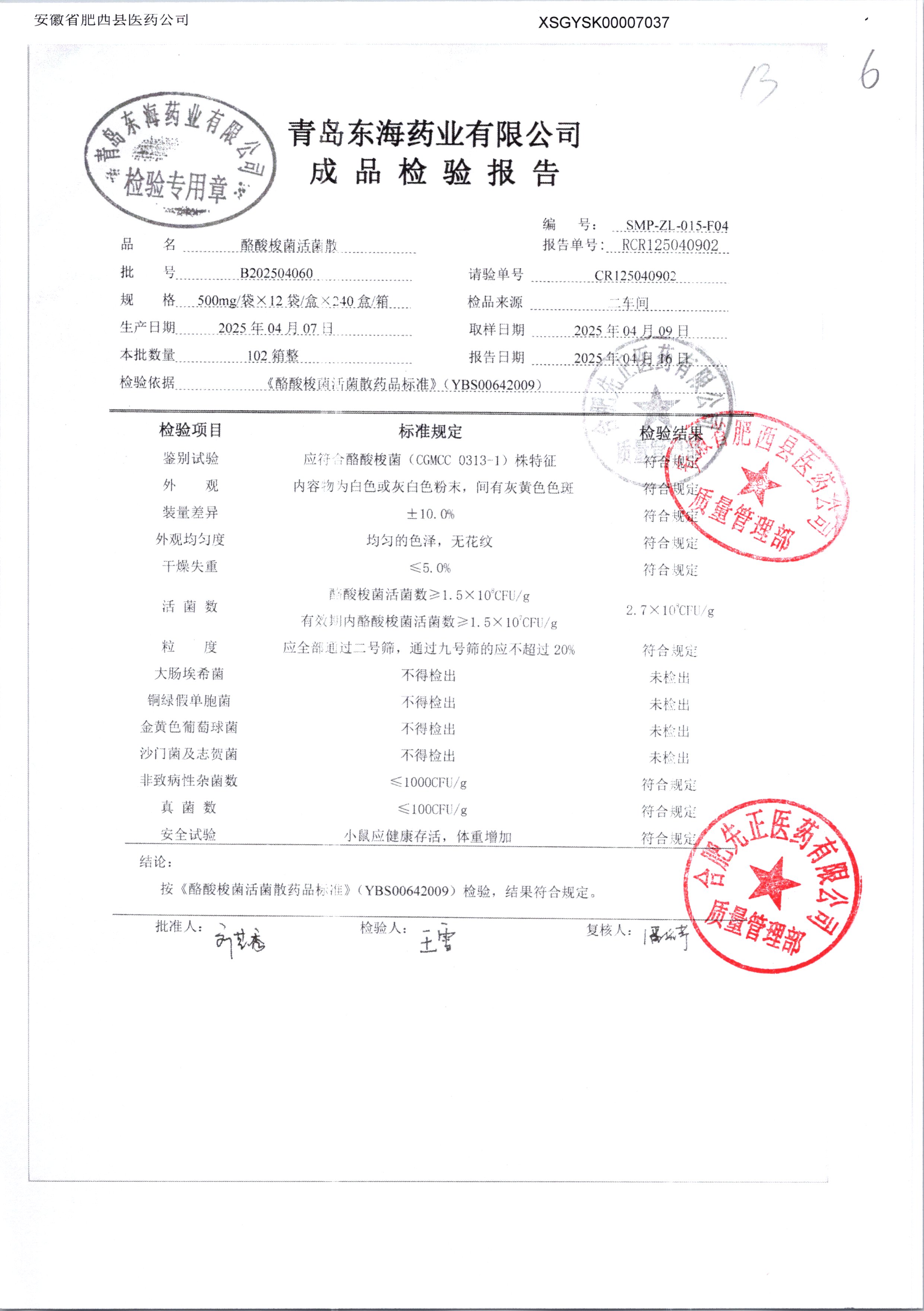 酪酸梭菌活菌散 | 500mg*12袋 | B202504060 | 查看详情 |