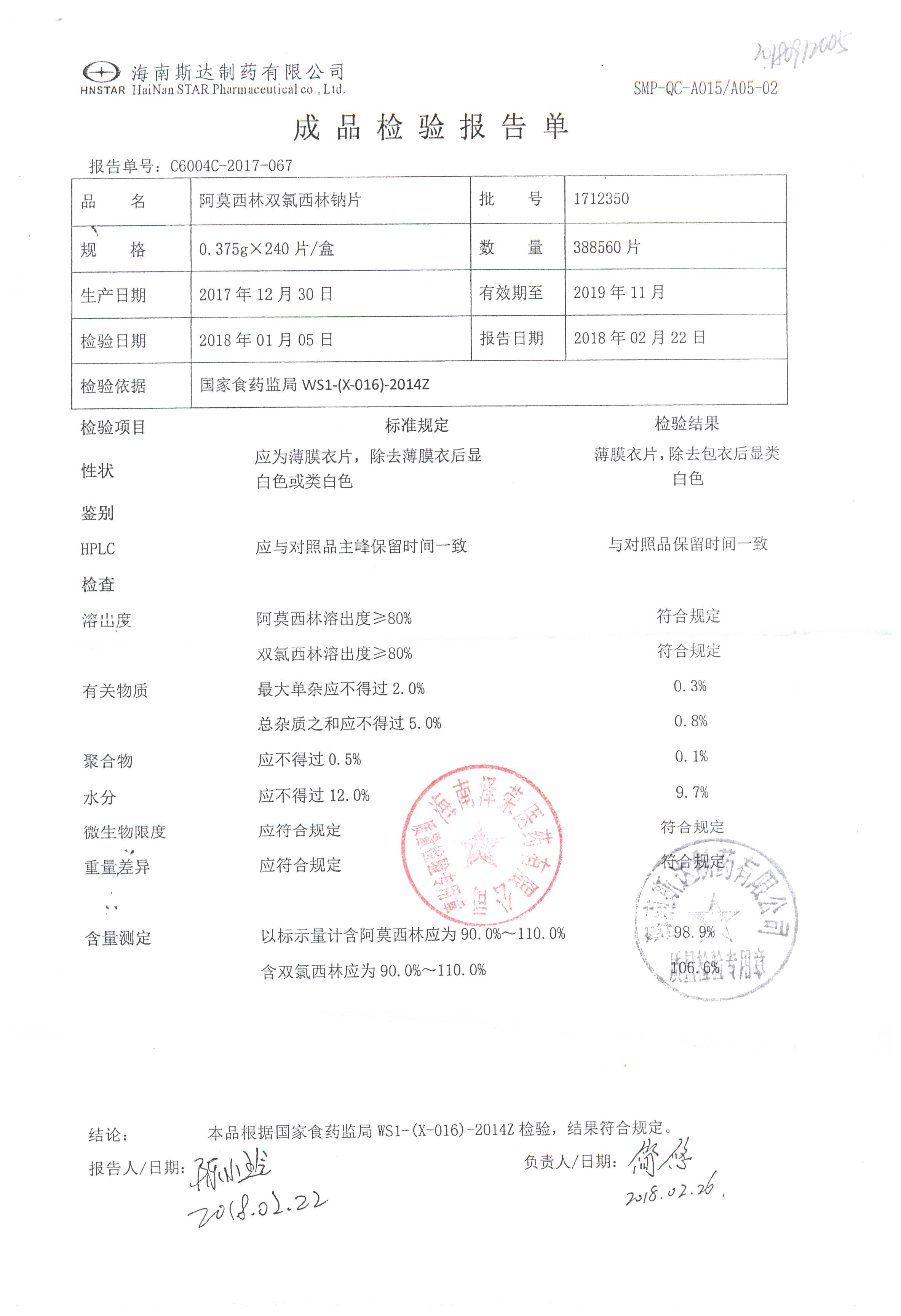 药检报告