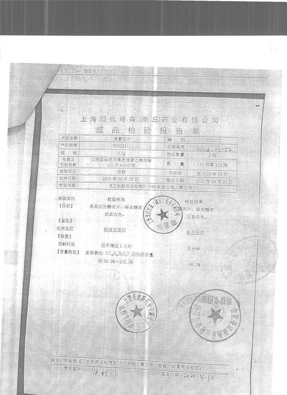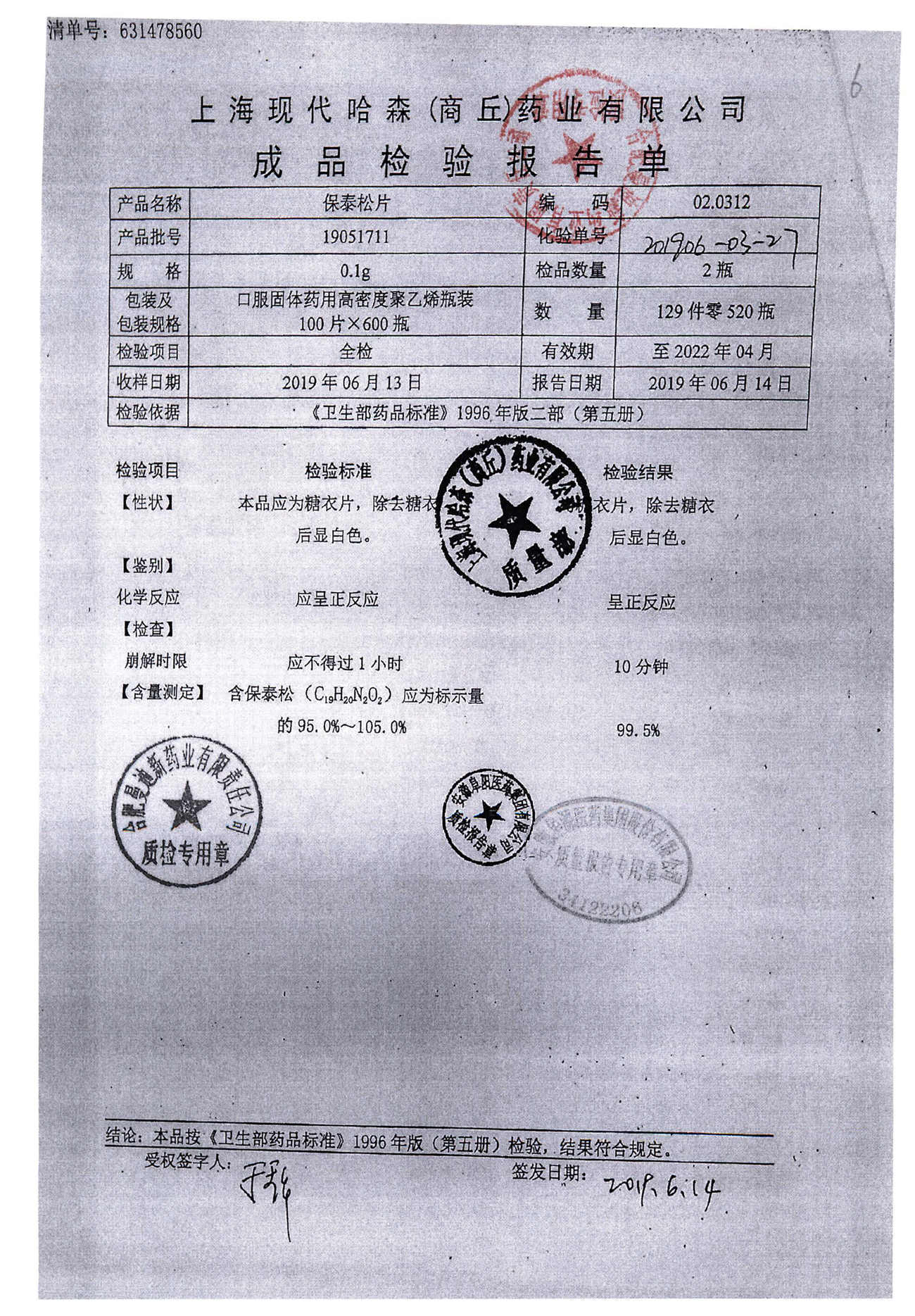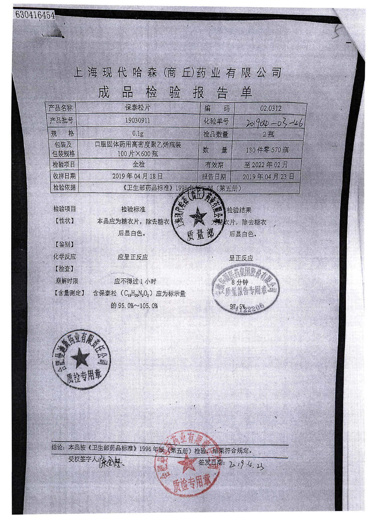 保泰松片 | 0.1g*100片 | 20121011 | 查看详情 |