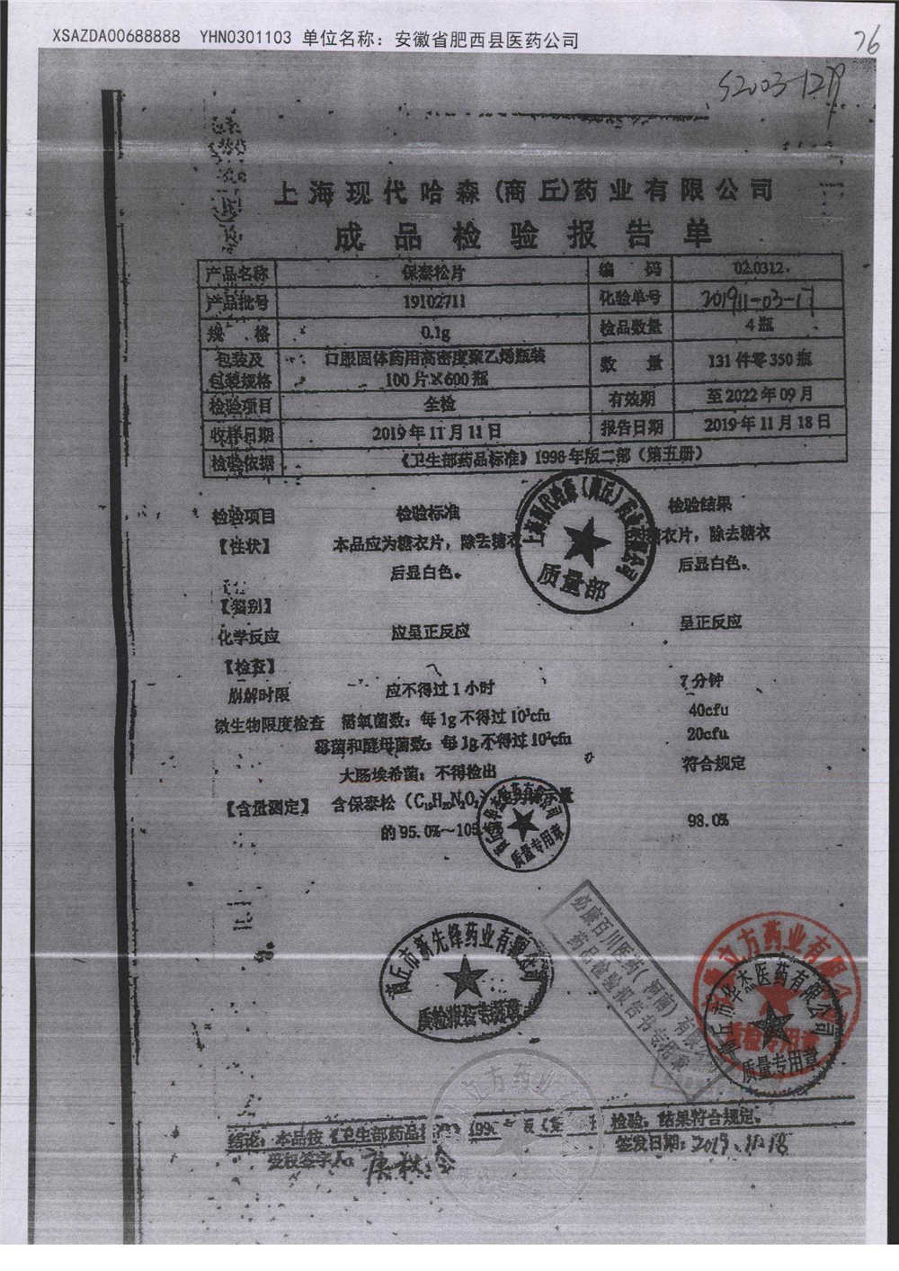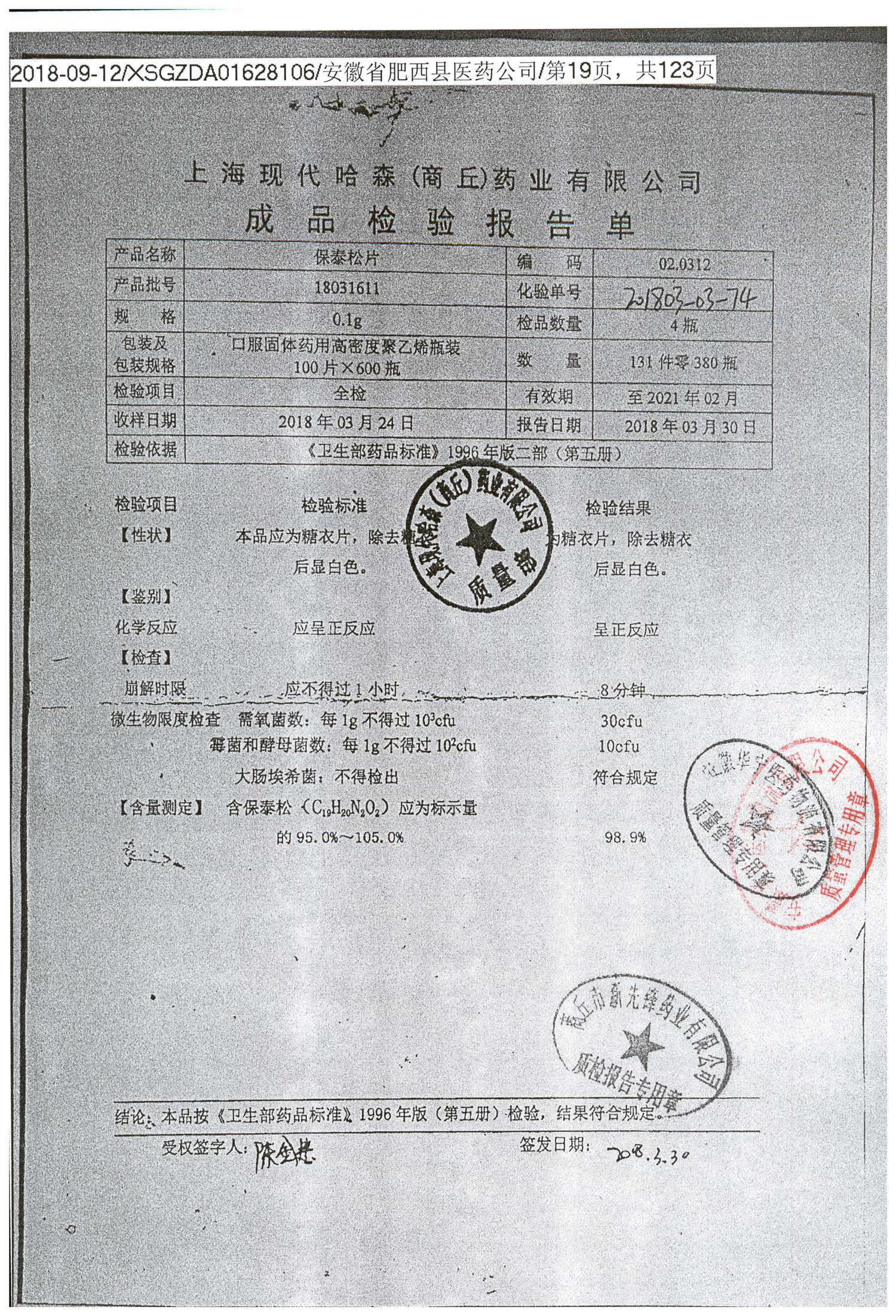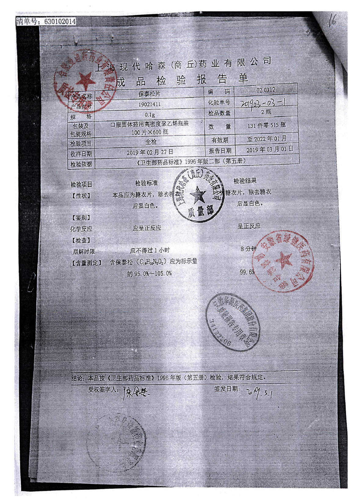 保泰松片 | 0.1g*100片 | 20121011 | 查看详情 |